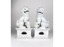 Pair of contemporary white ceramic sitting foo dogs.