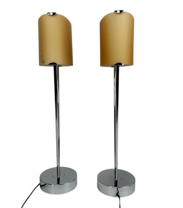 Glass Shade and Chrome base table lamp.