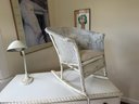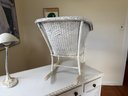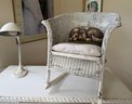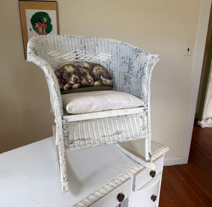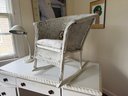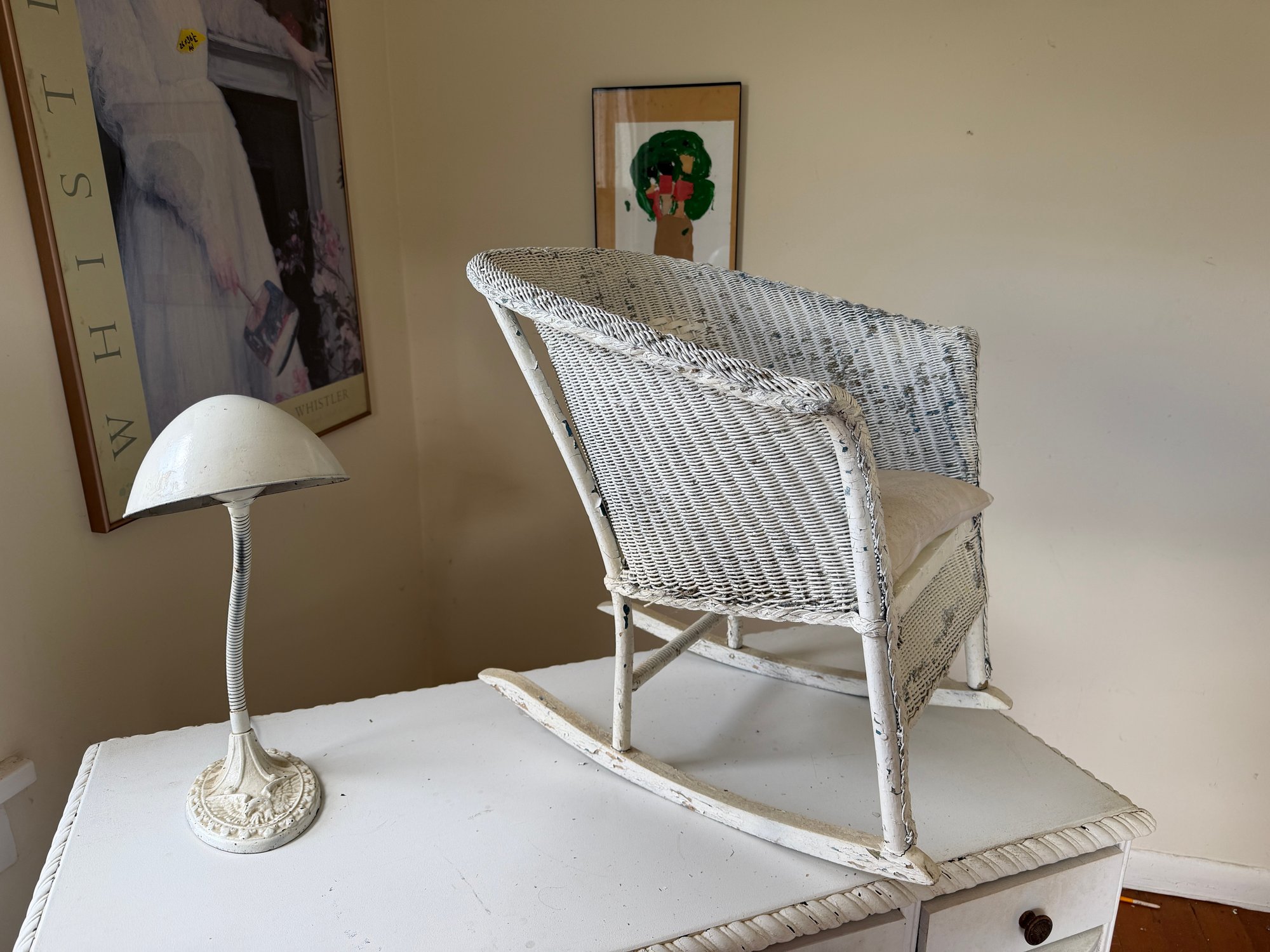 ANTIQUE DIMINUTIVE WICKER ROCKING CHAIR In DISTRESSED WHITE PAINT
