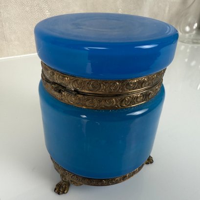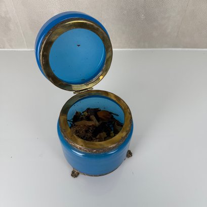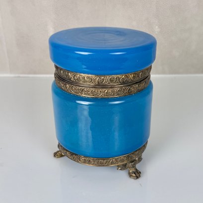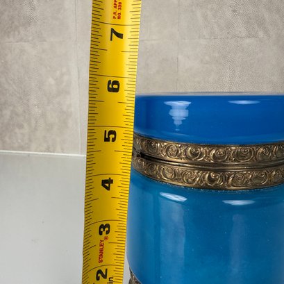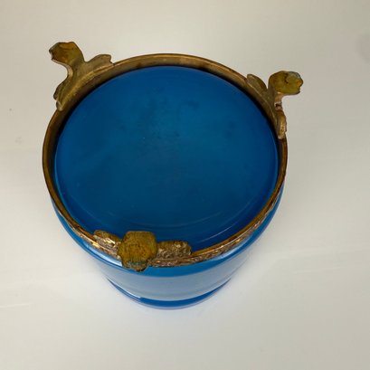 Antique French Blue Opaline Casket Or Vanity Box With Ormolu Trim