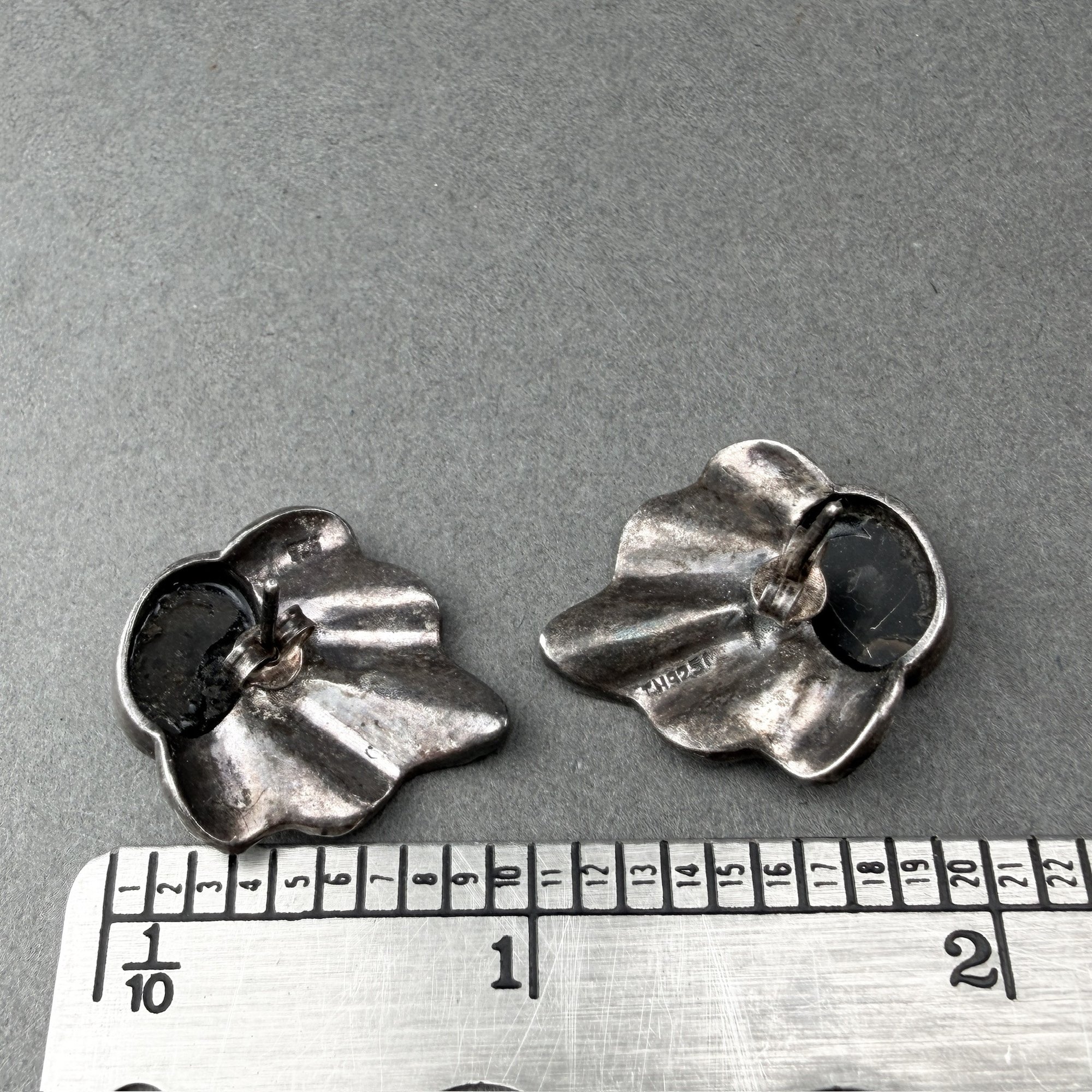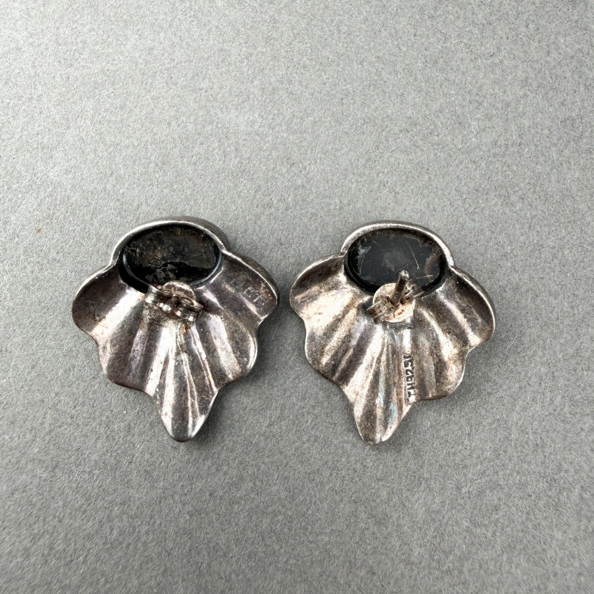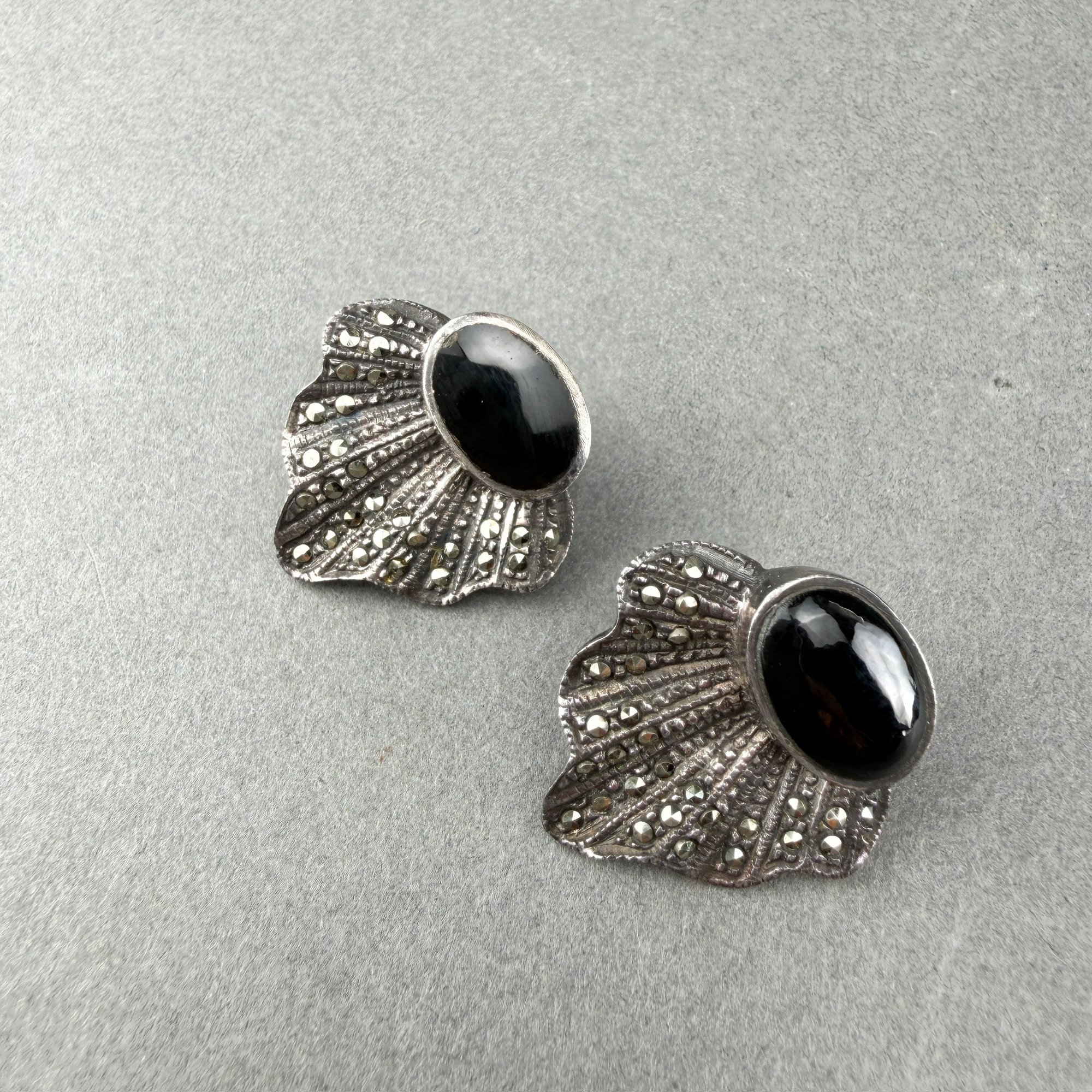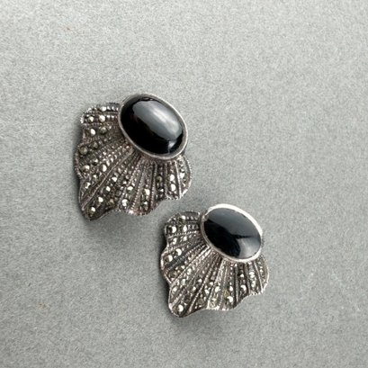 Art Deco Style Sterling Silver Marcasite And Cabochon Onyx Earrings