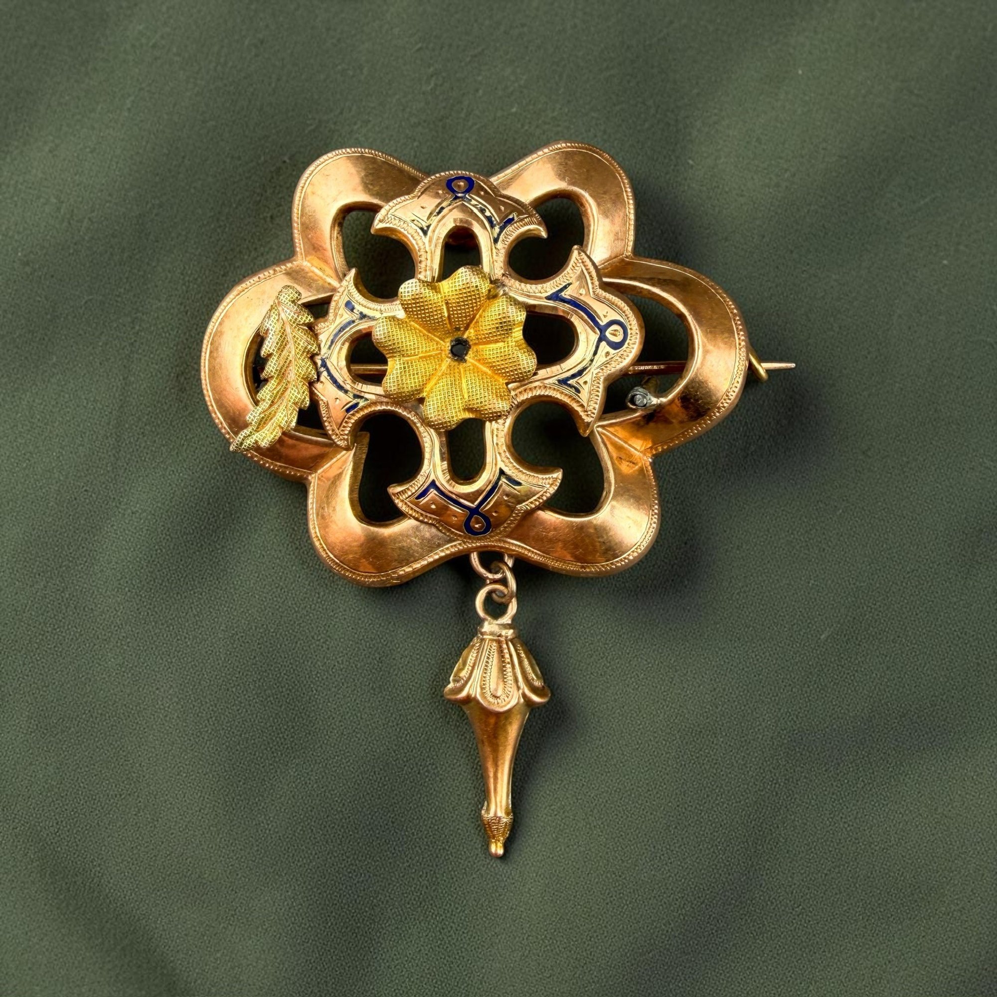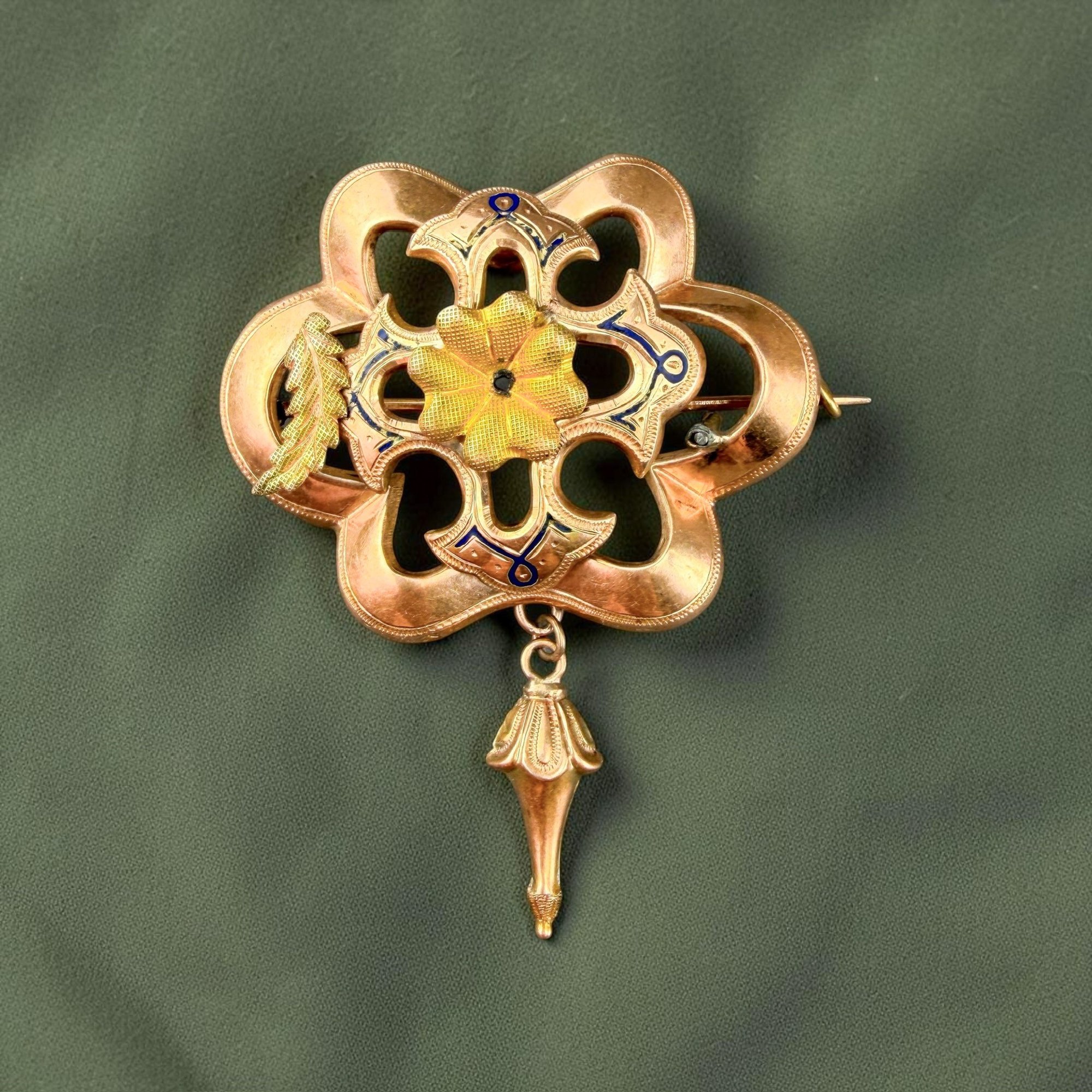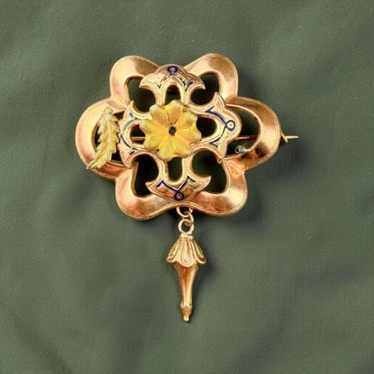 Antique Art Nouveau 14kt Gold with blue enamel brooch.