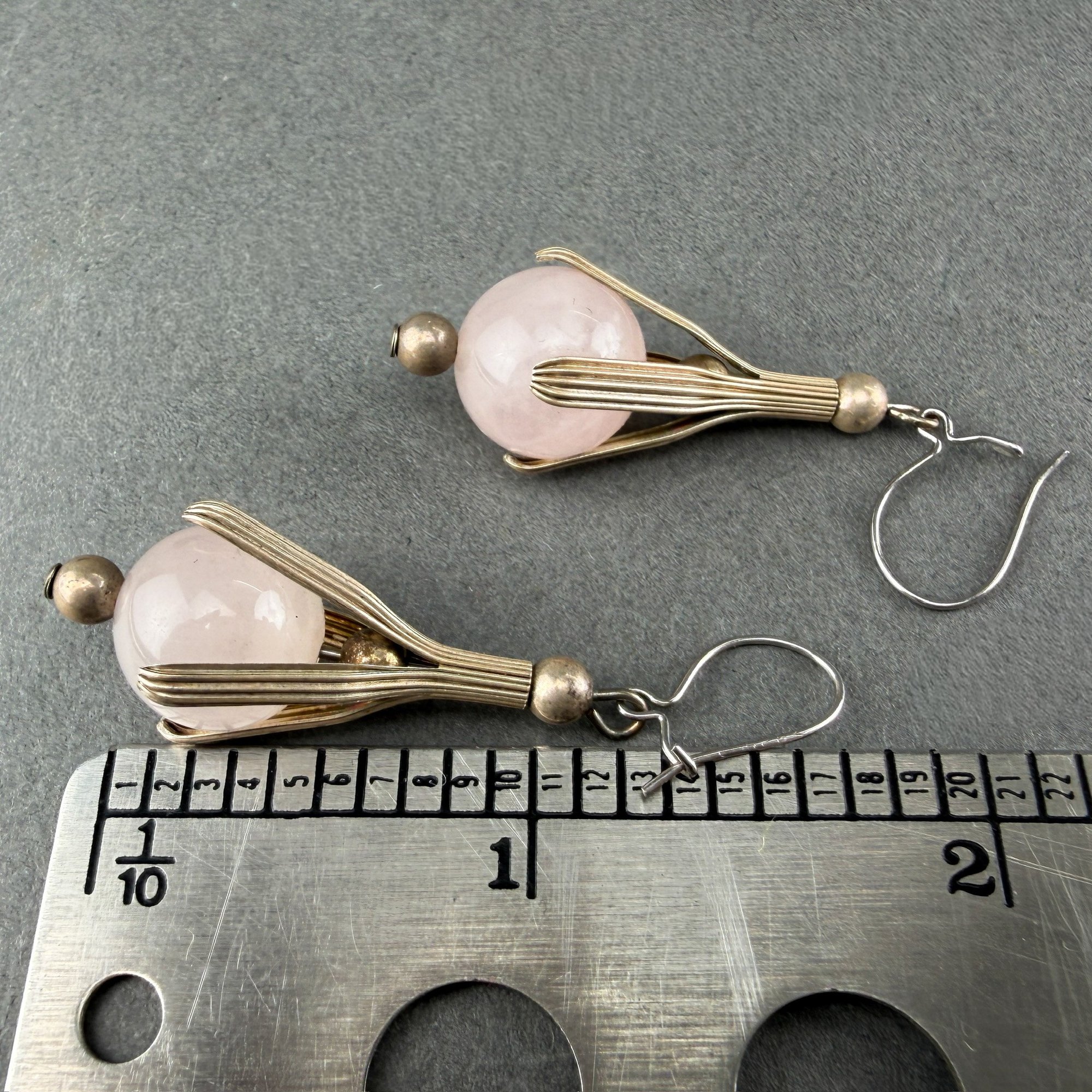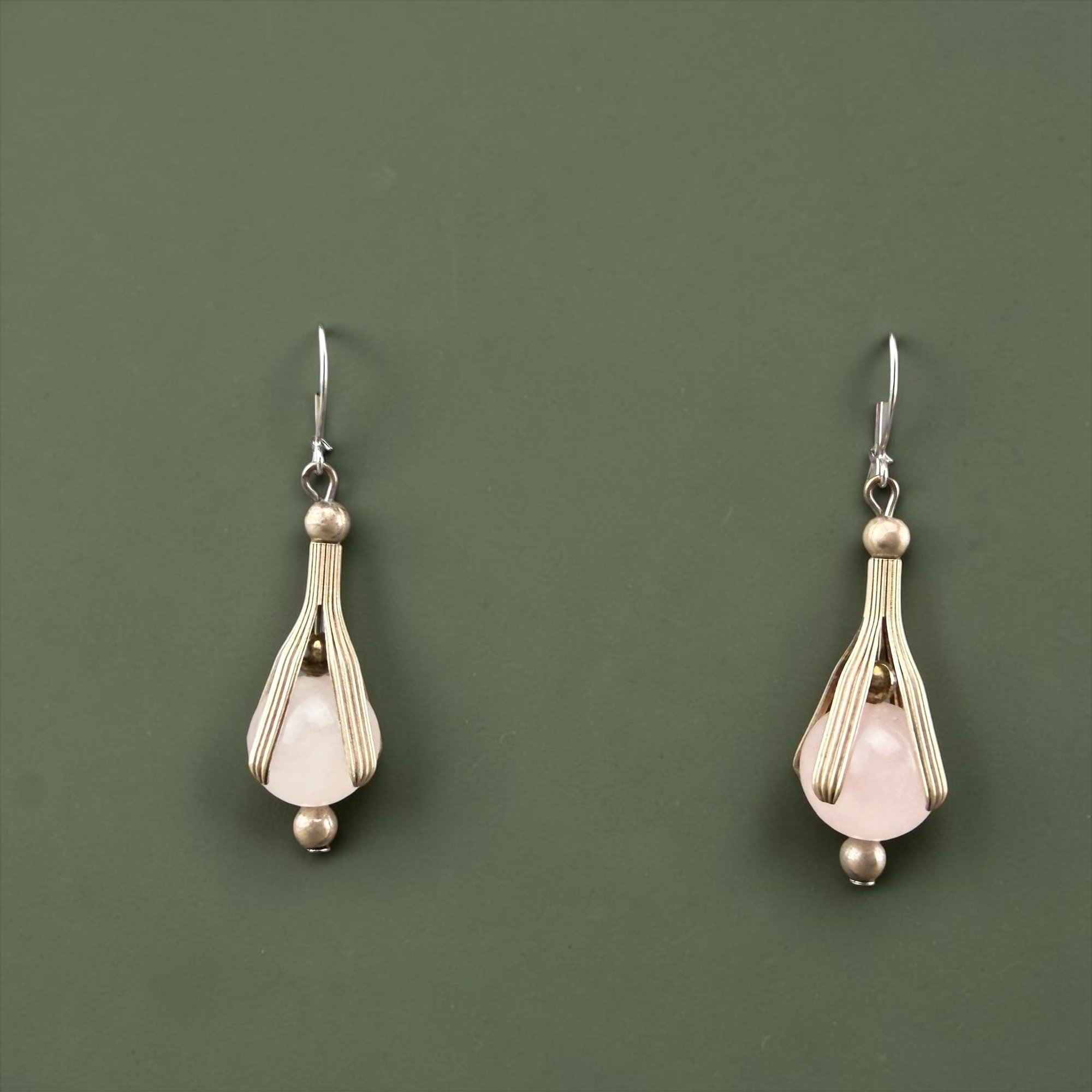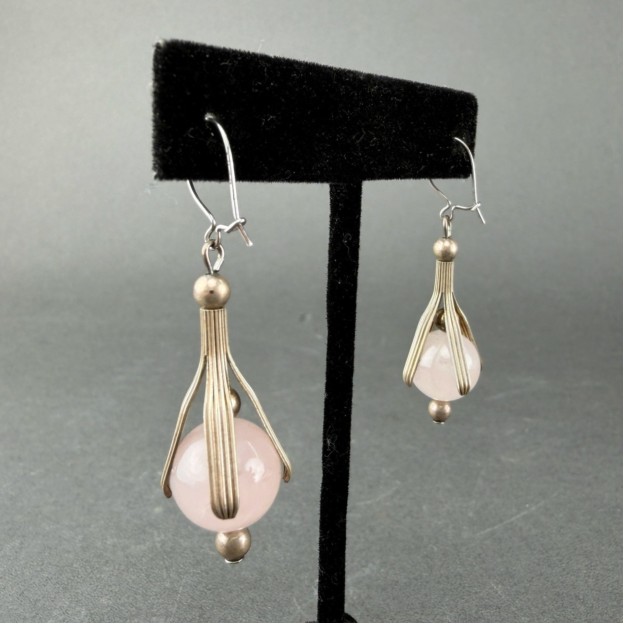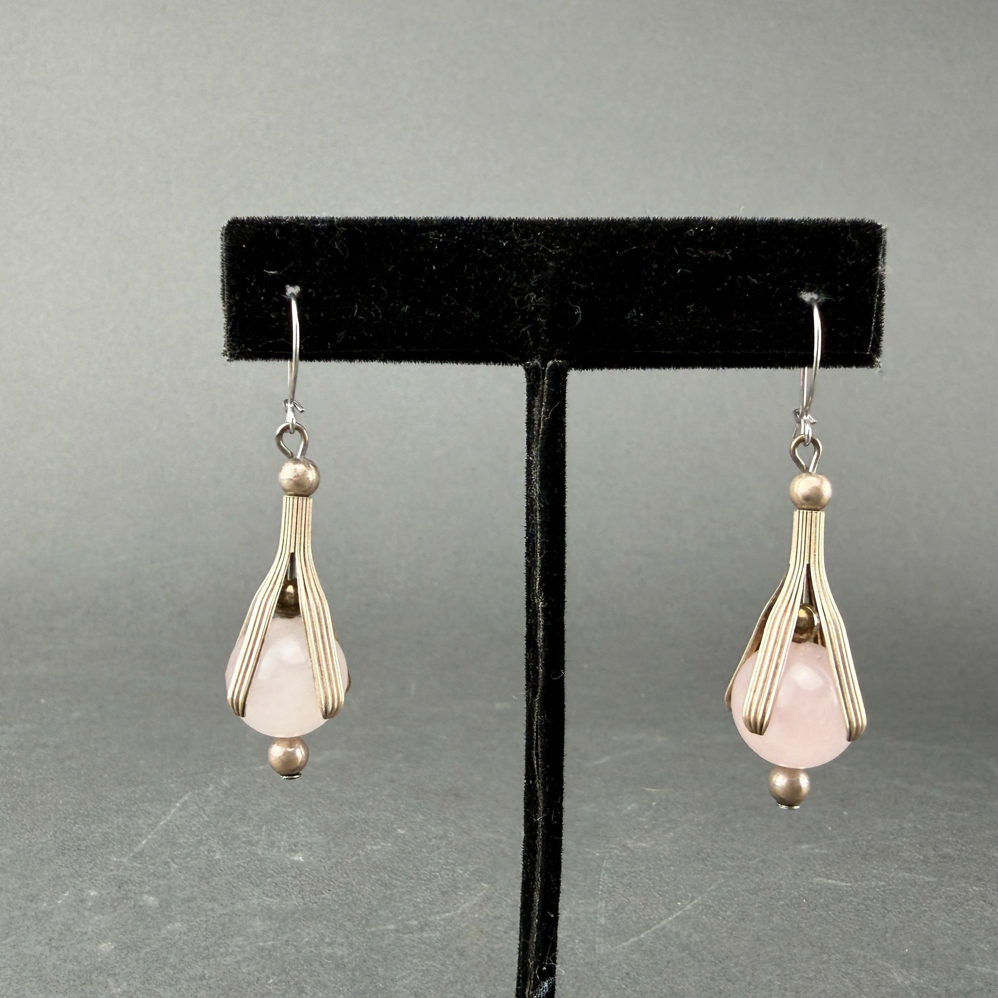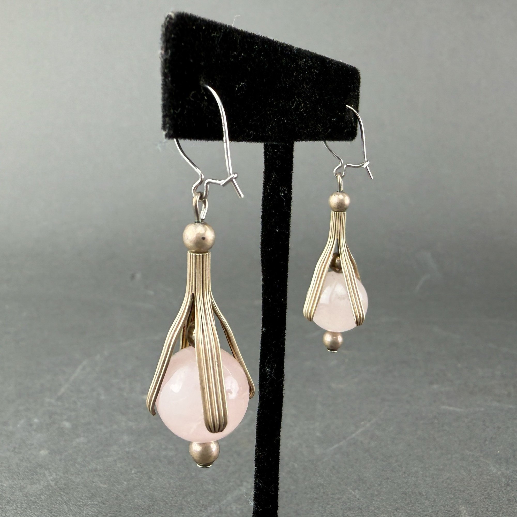 Art Nouveau Sterling Silver And Rose Quartz Drop Earrings