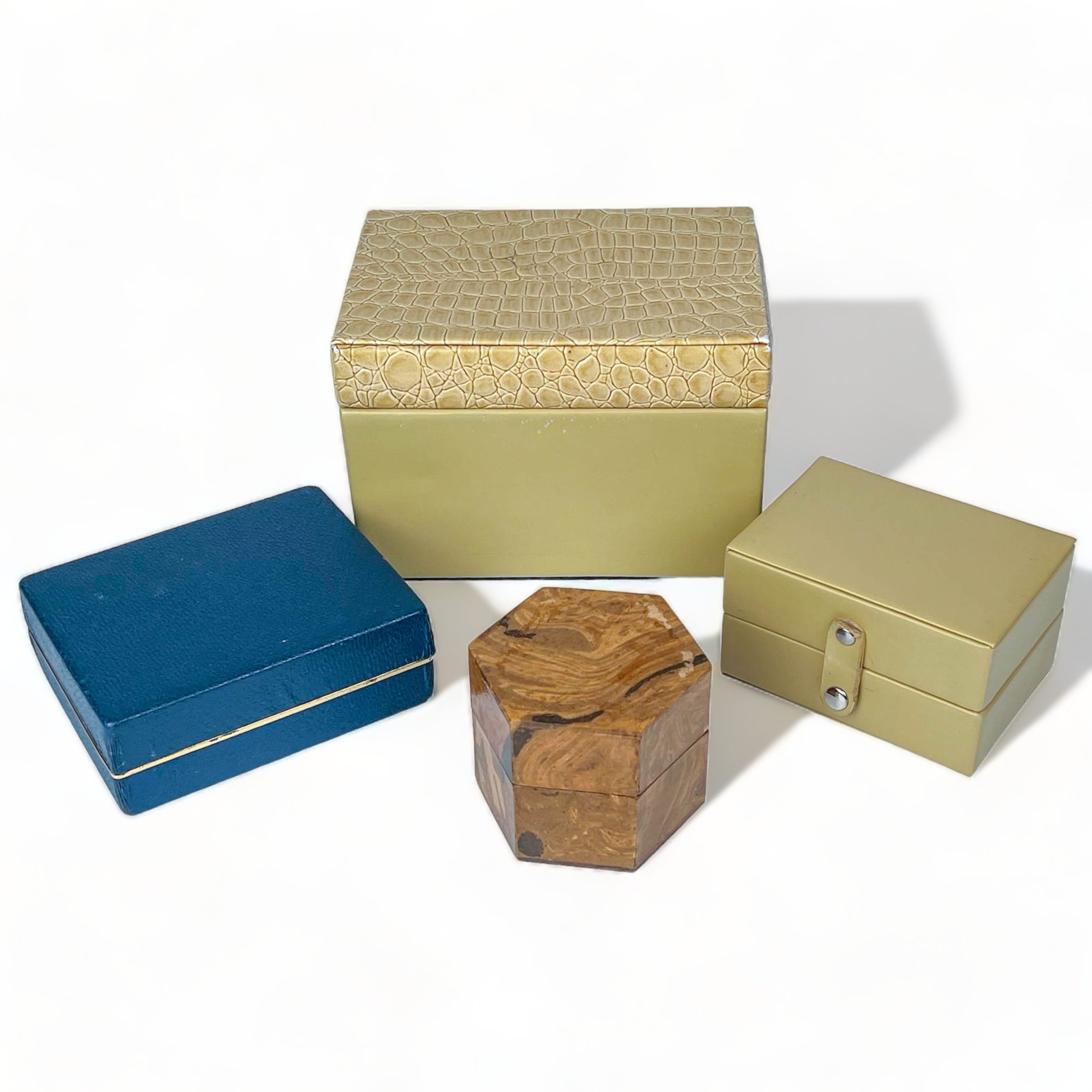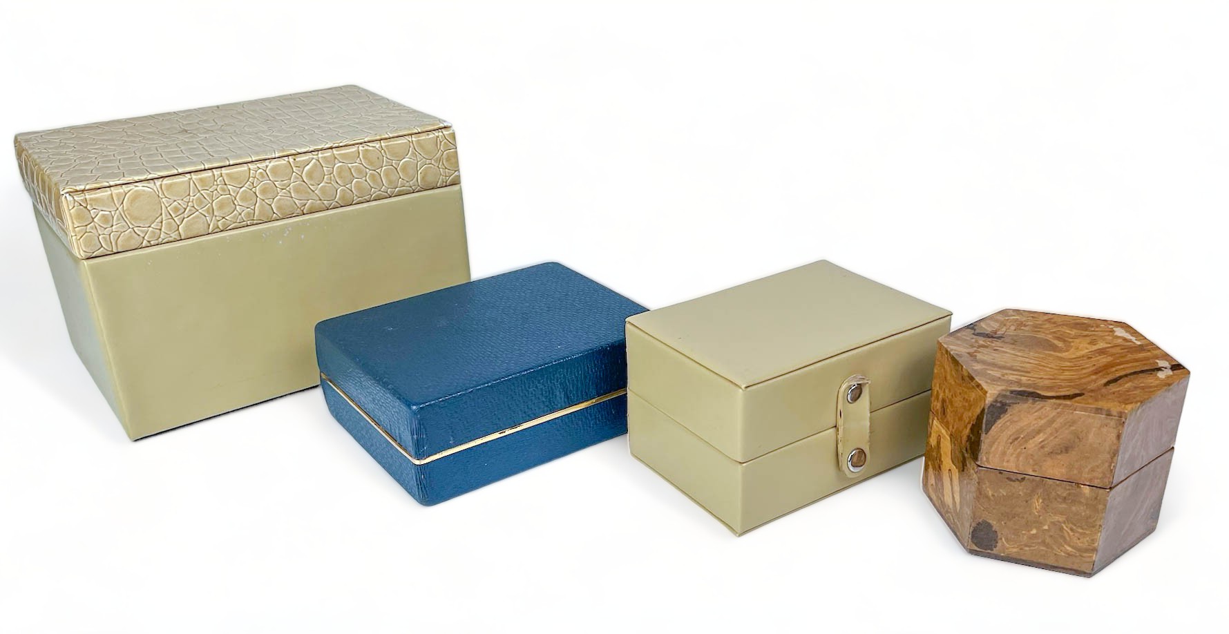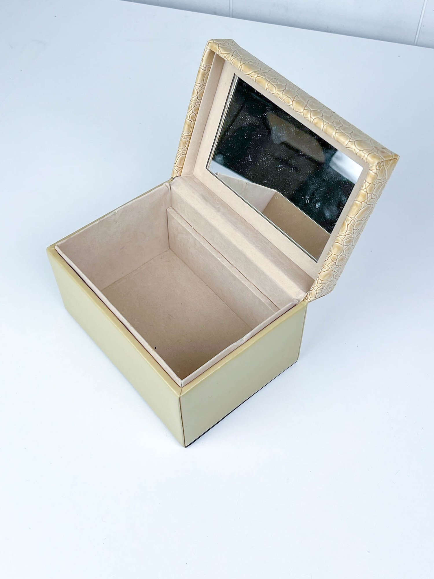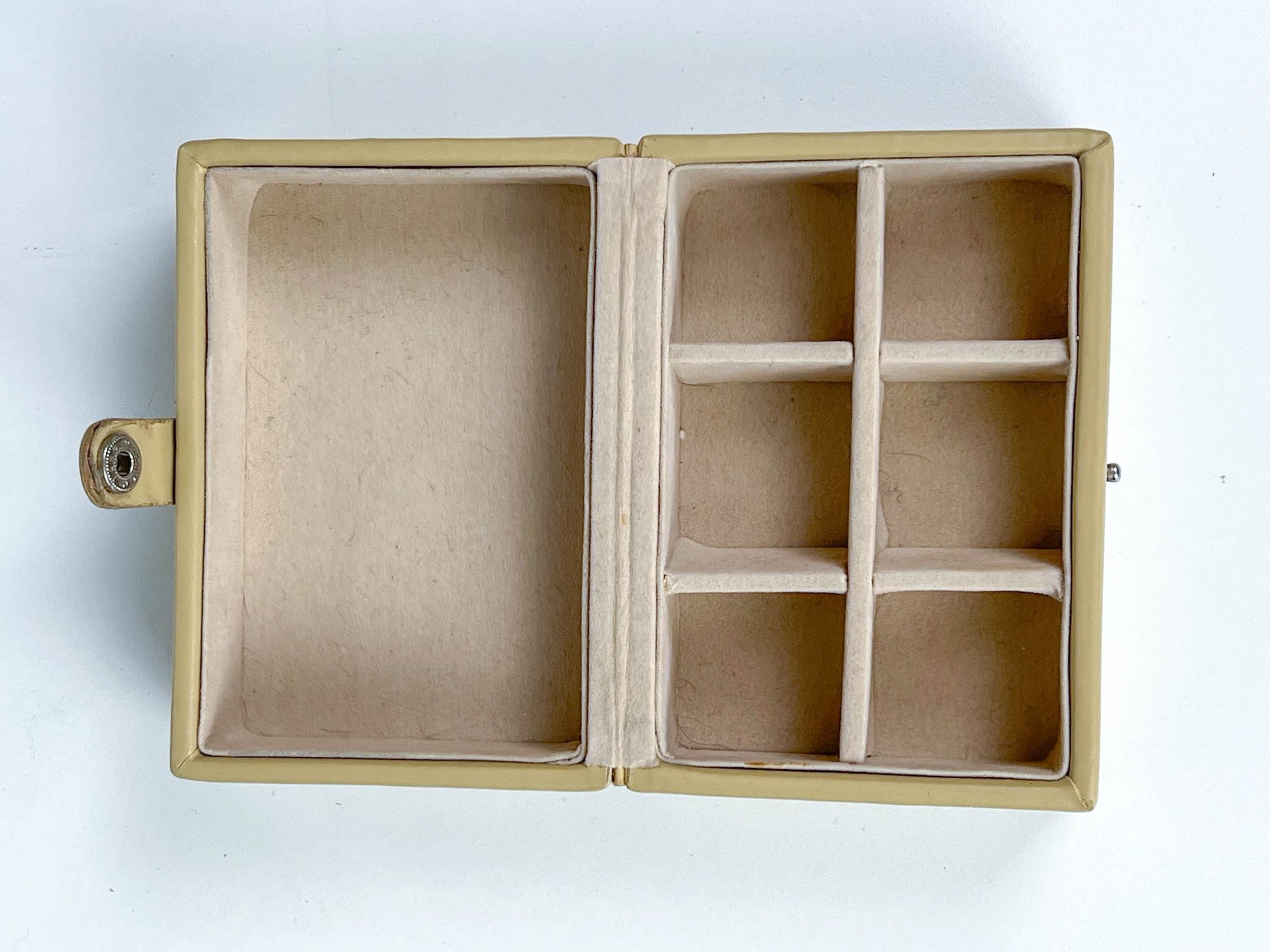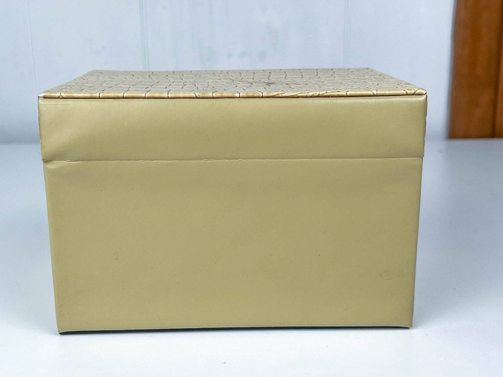 Tan Pleather Box W 4 1/2" H 3" D 2 1/2"