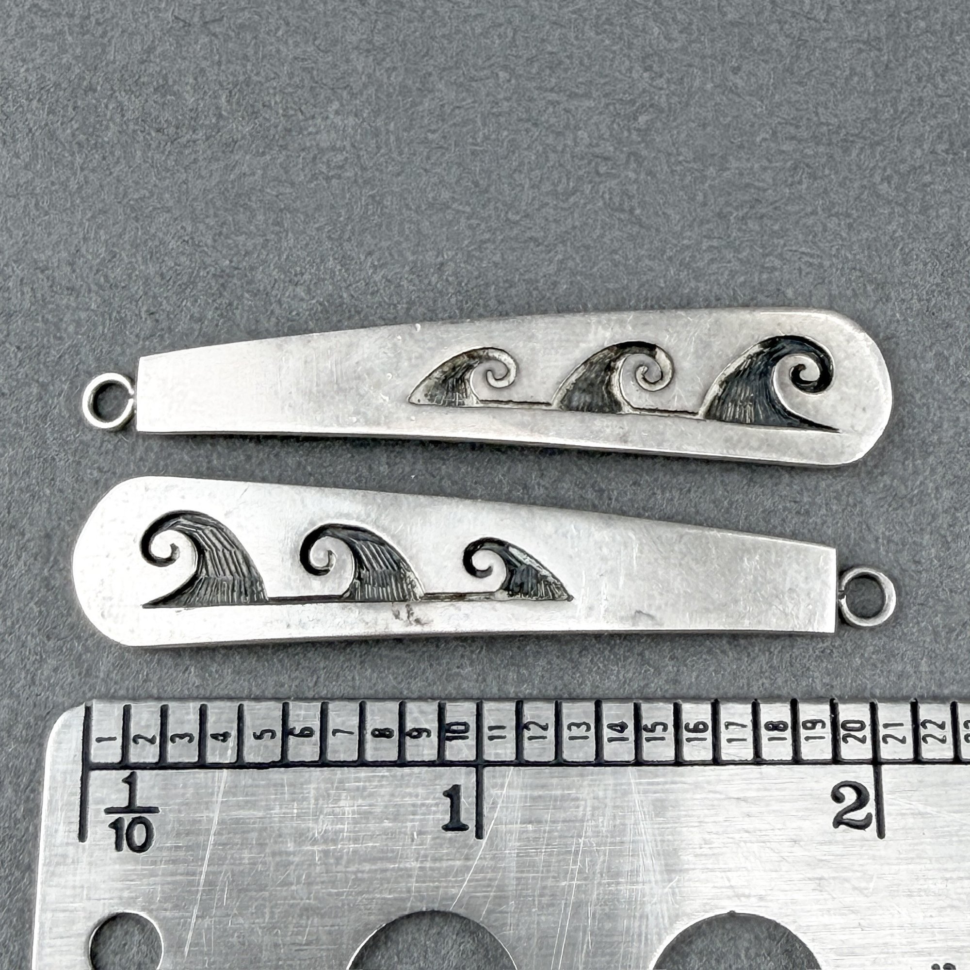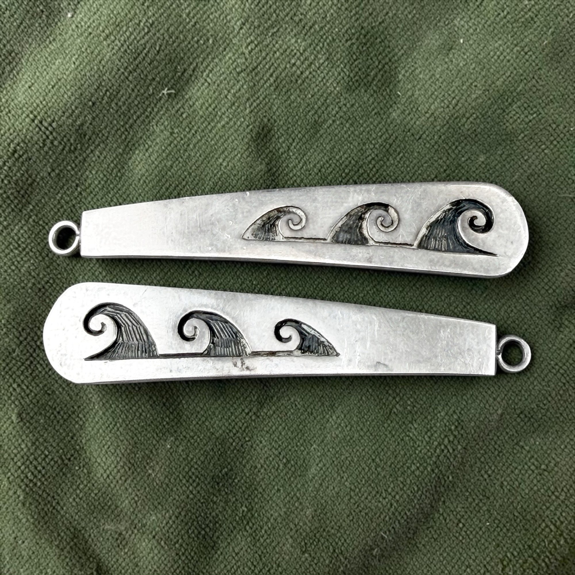 Native American Hopi, Pat Lomawaima etched water wave designs on sterling silver.