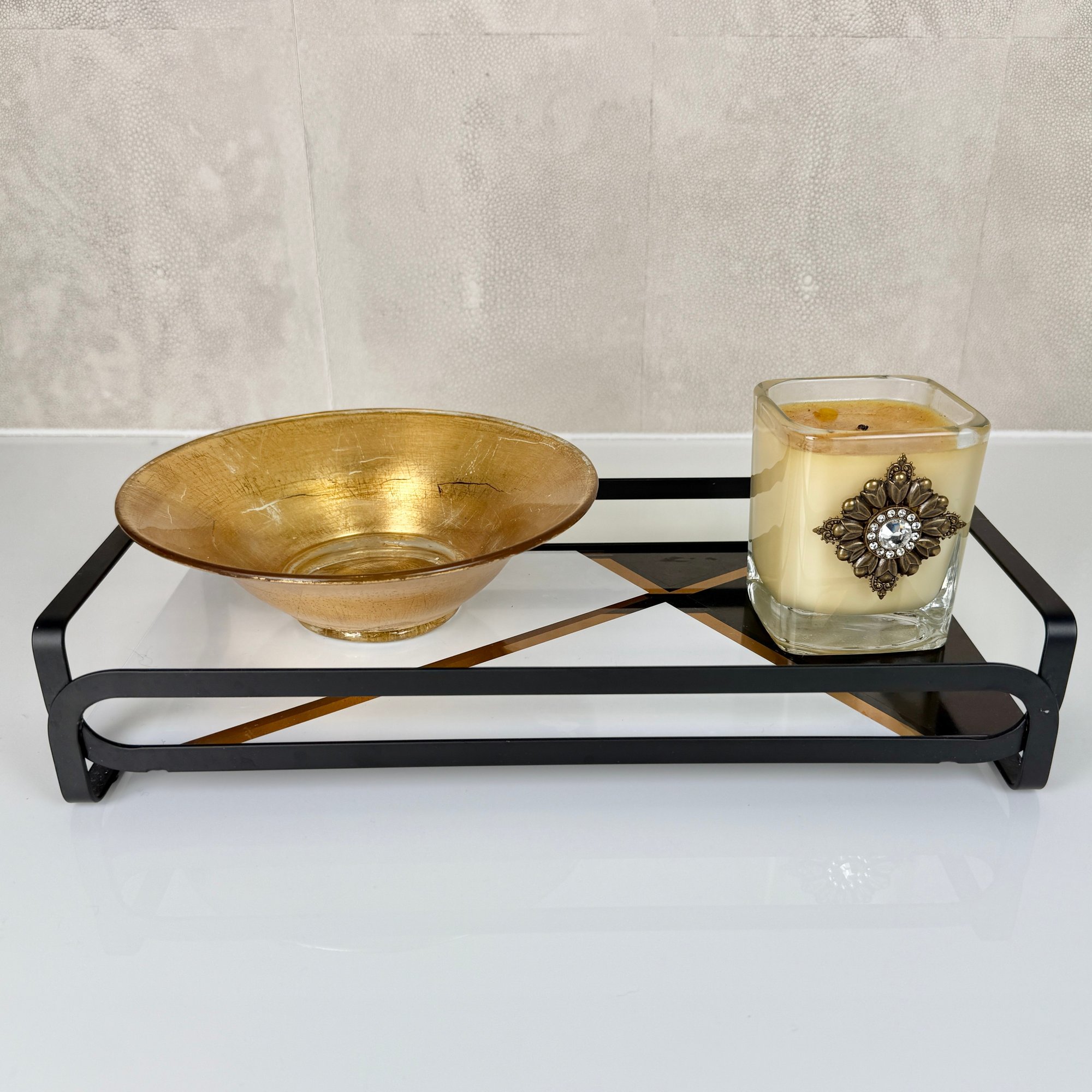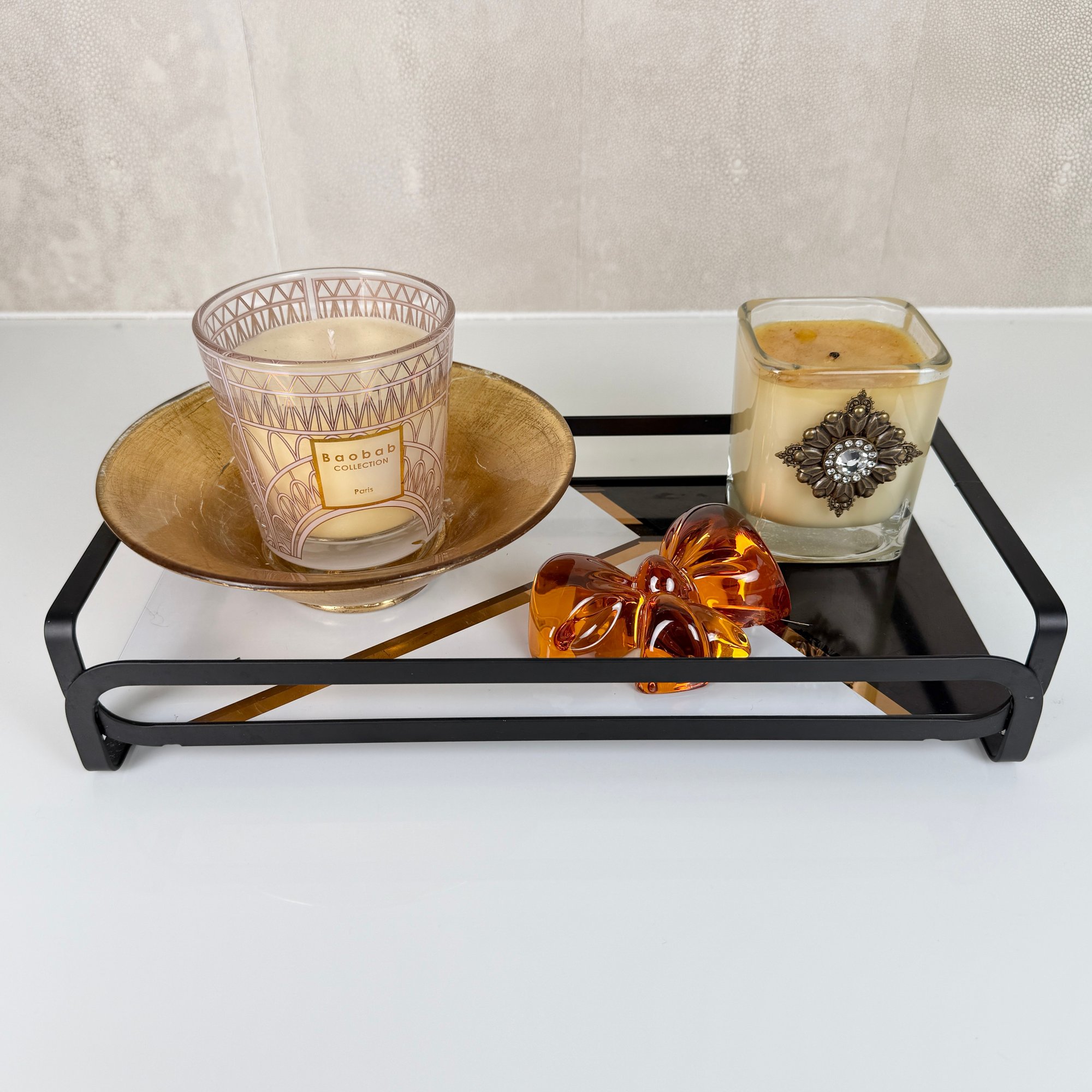 Tray, bowl, candle etc