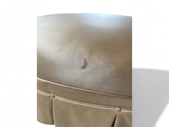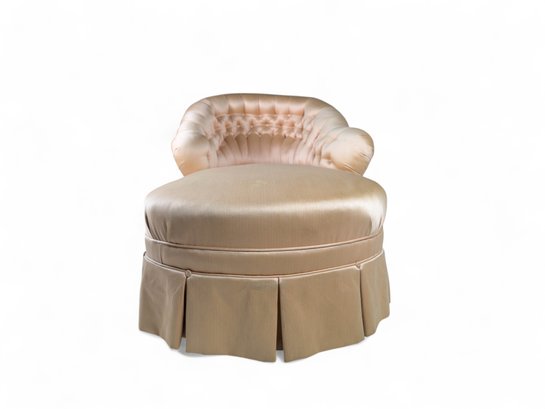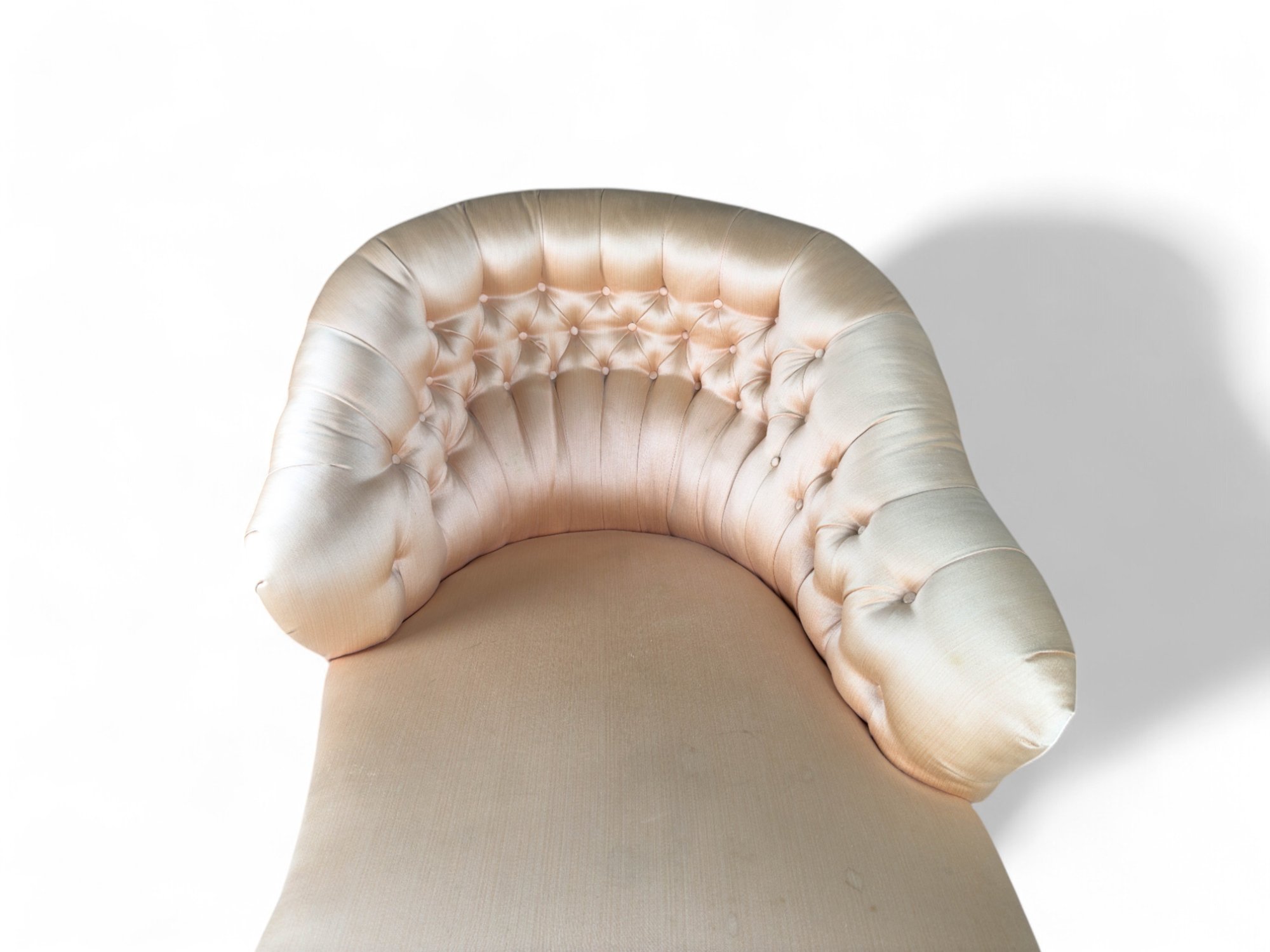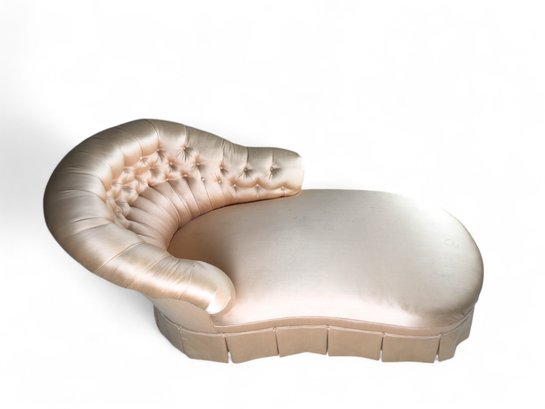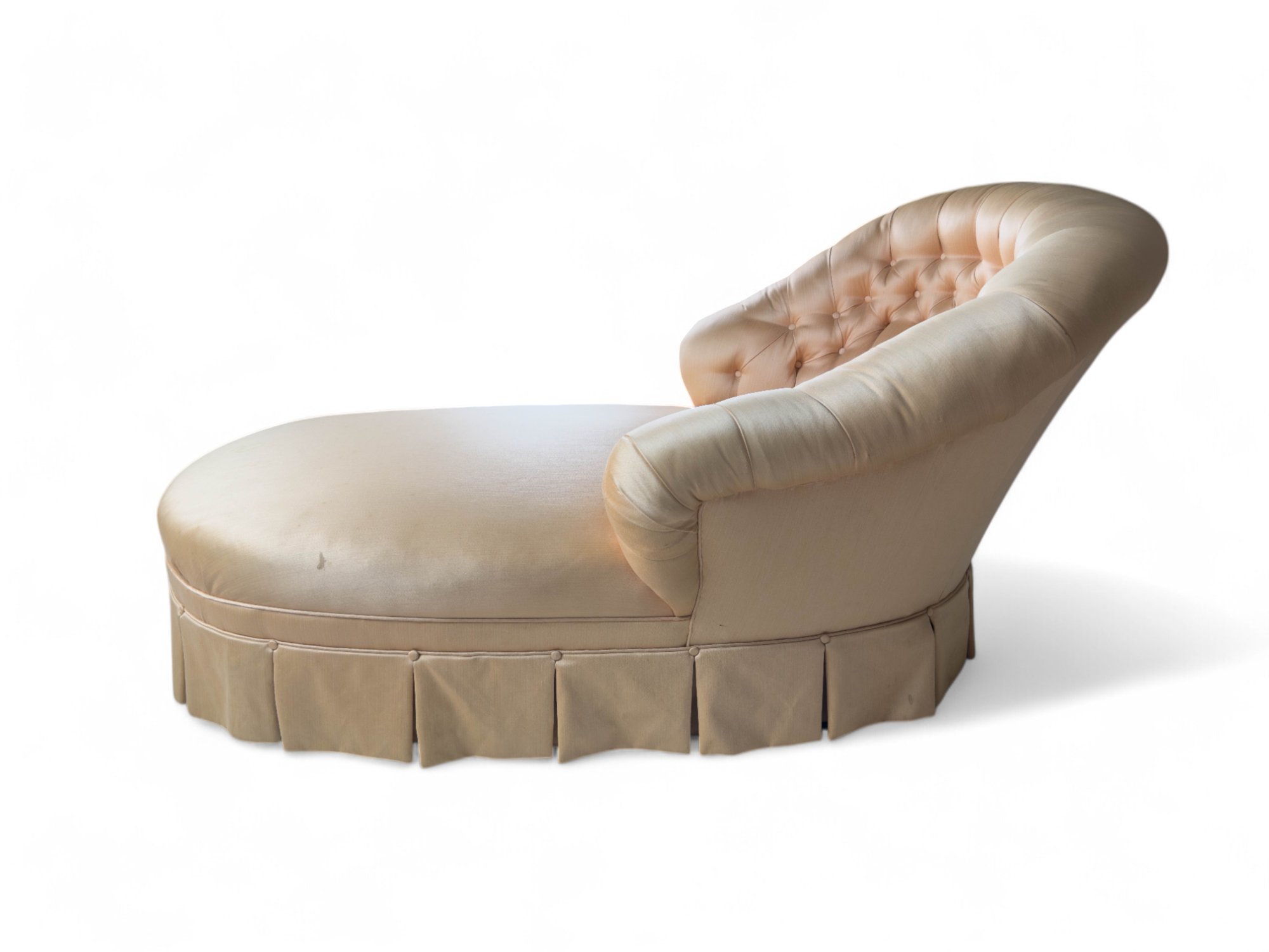 Napoleon II Style Chaise Lounge in an apricot satin with skirt and tufte back side. Purchase at Doyle & Doyle Auction house in New York CIty.
