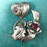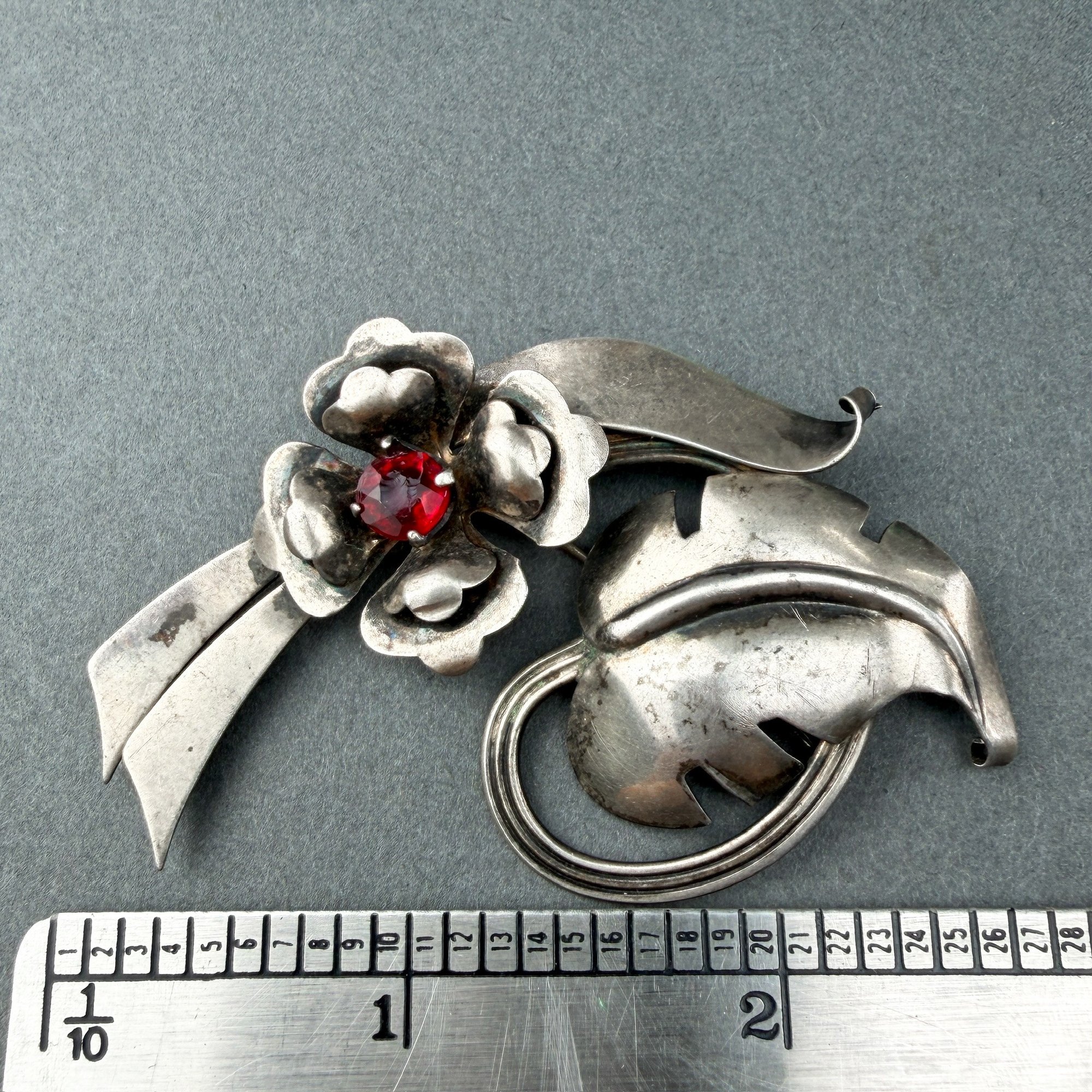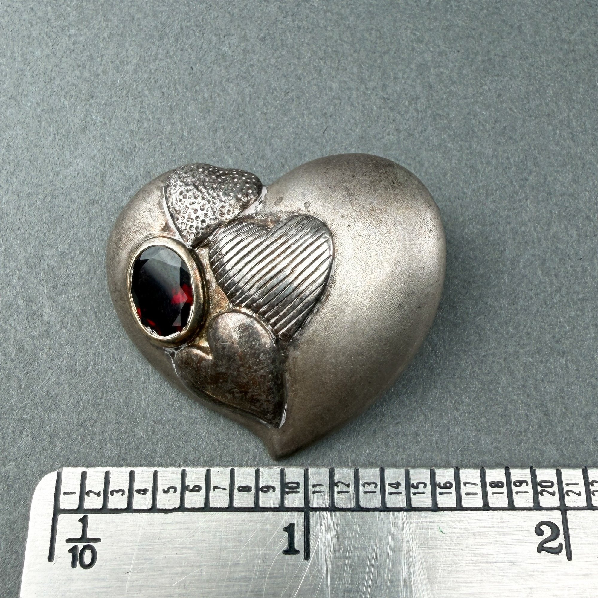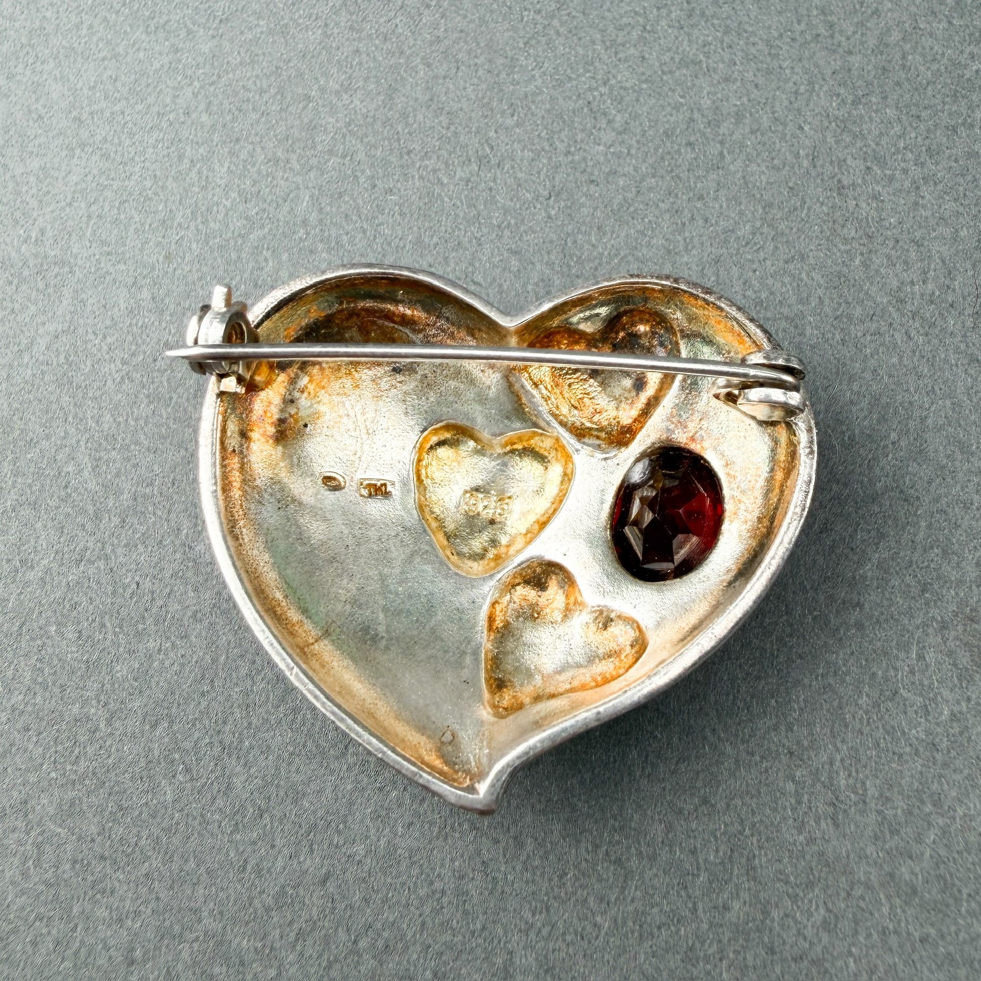 Botanic And Heart Brooches In Sterling Silver With Garnet And Red Stones