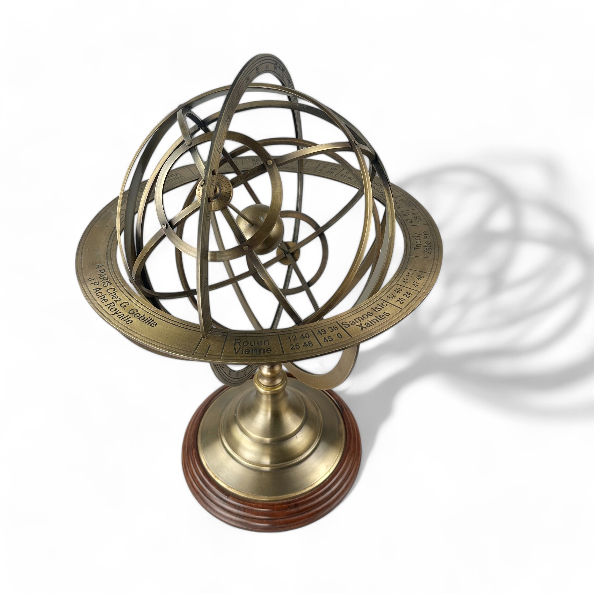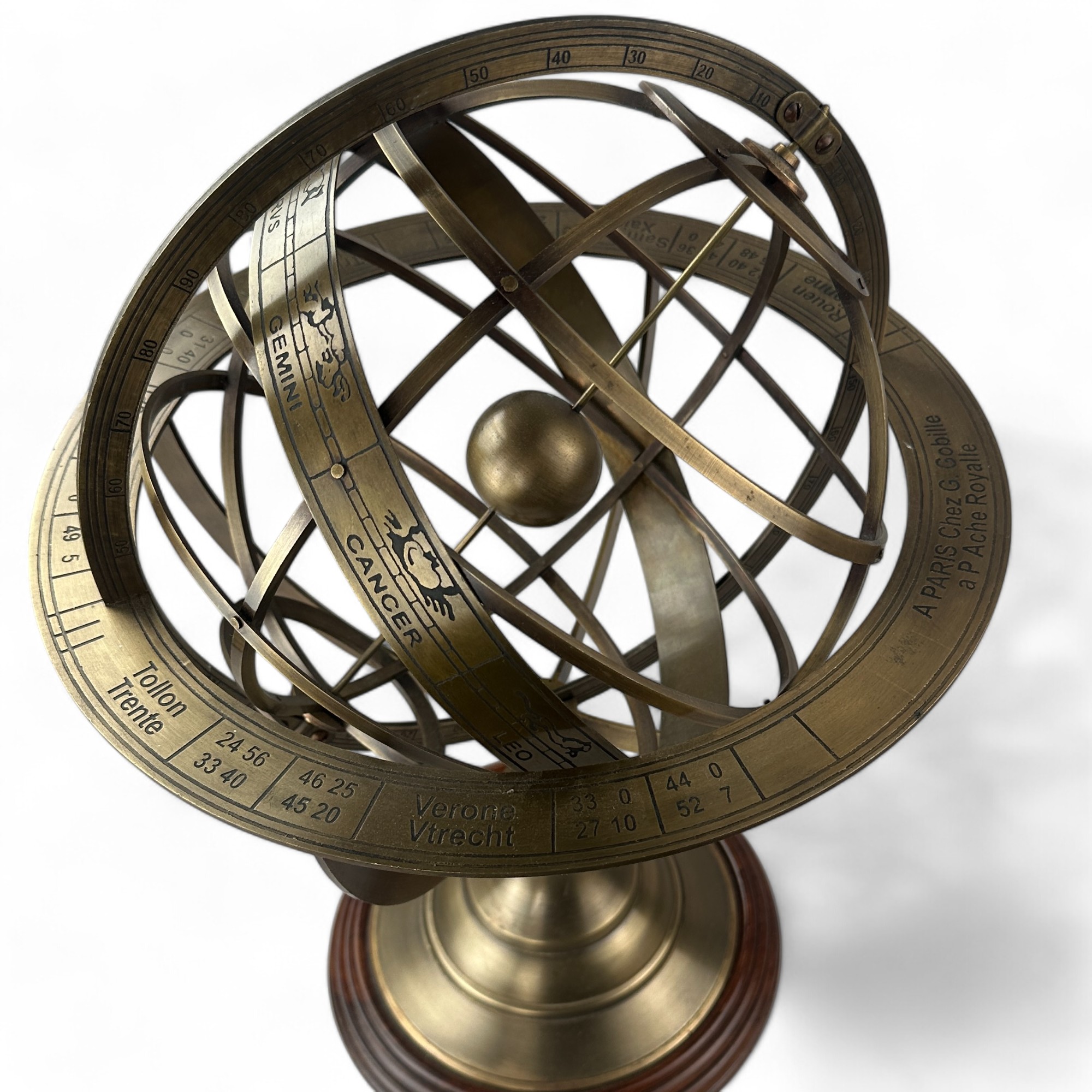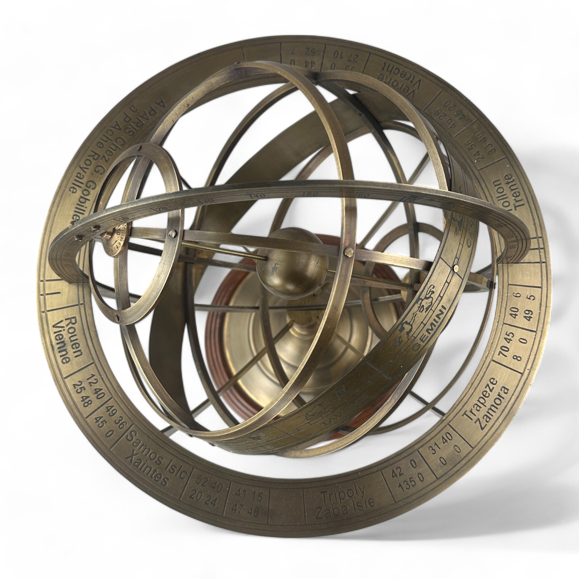 Vintage Armillary globe or sphere with three tiered Wooden Base.