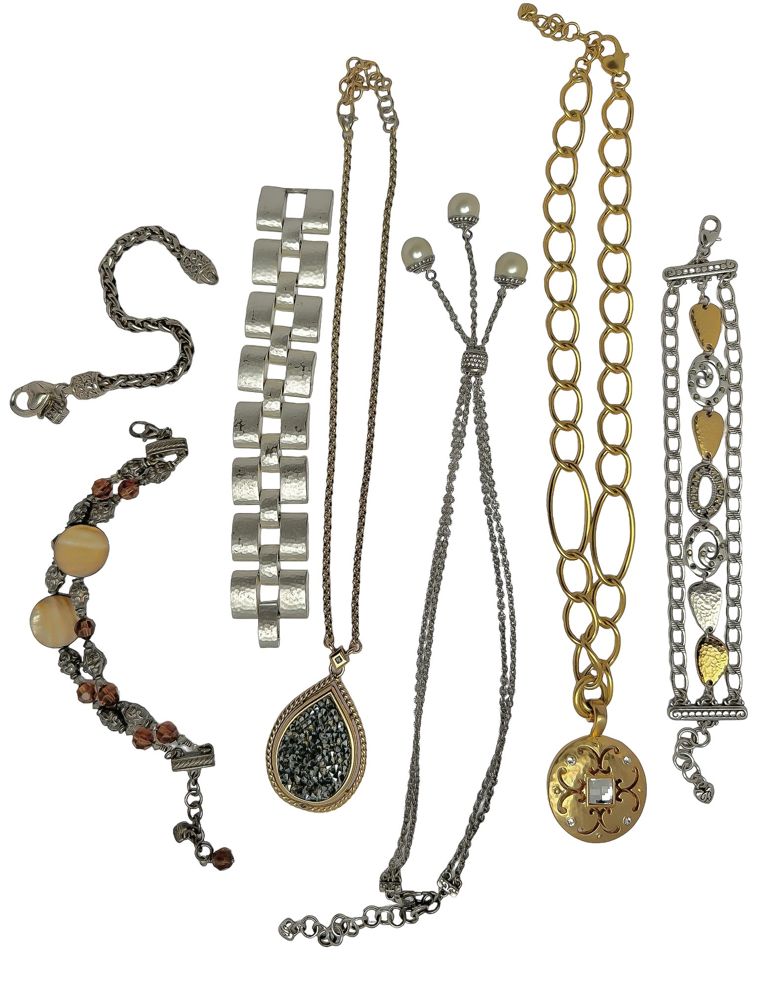 three necklaces, four bracelets