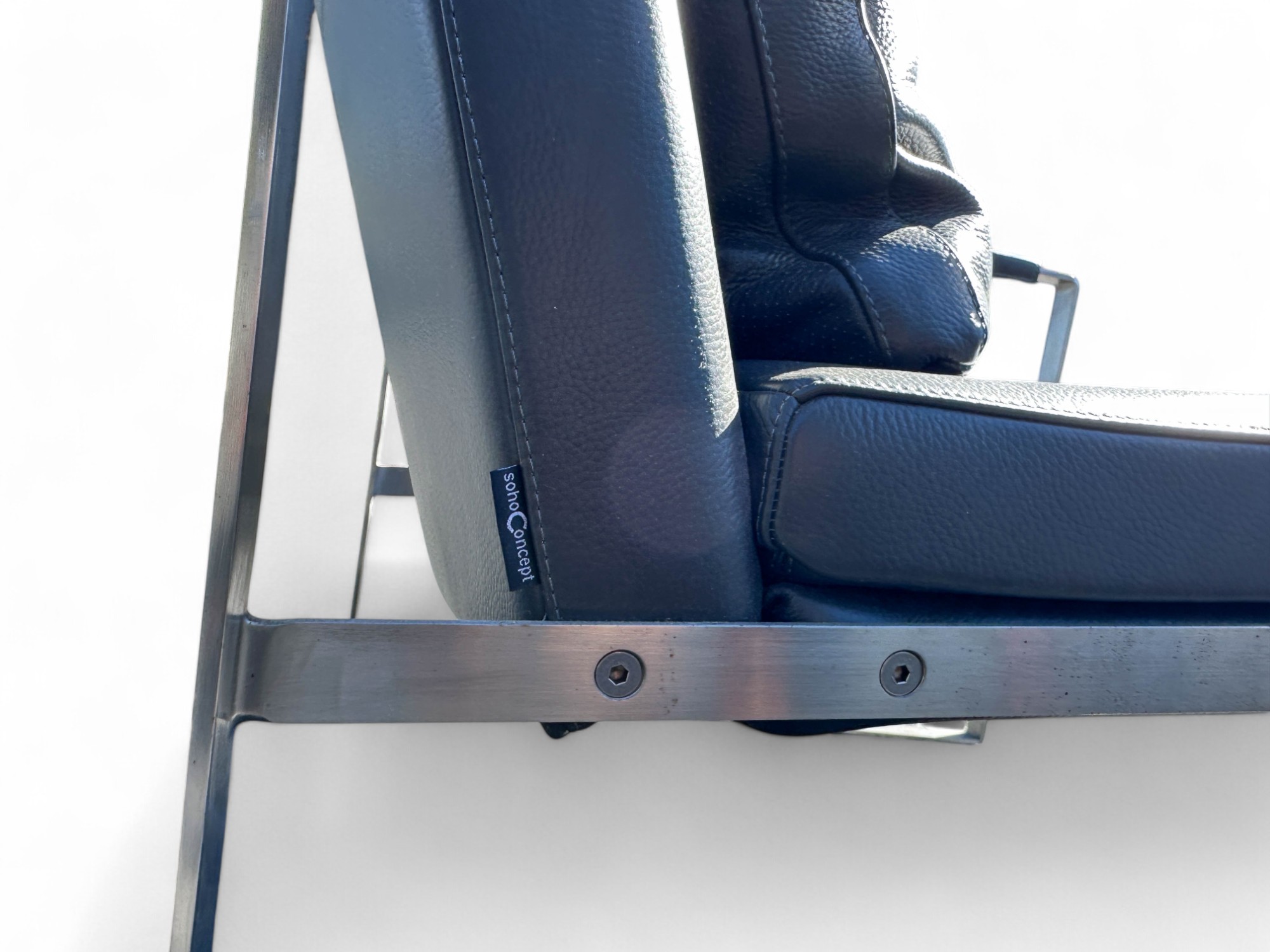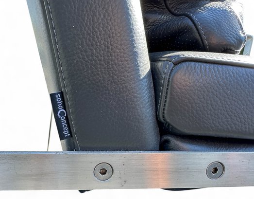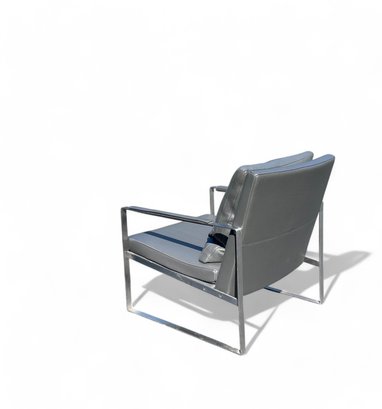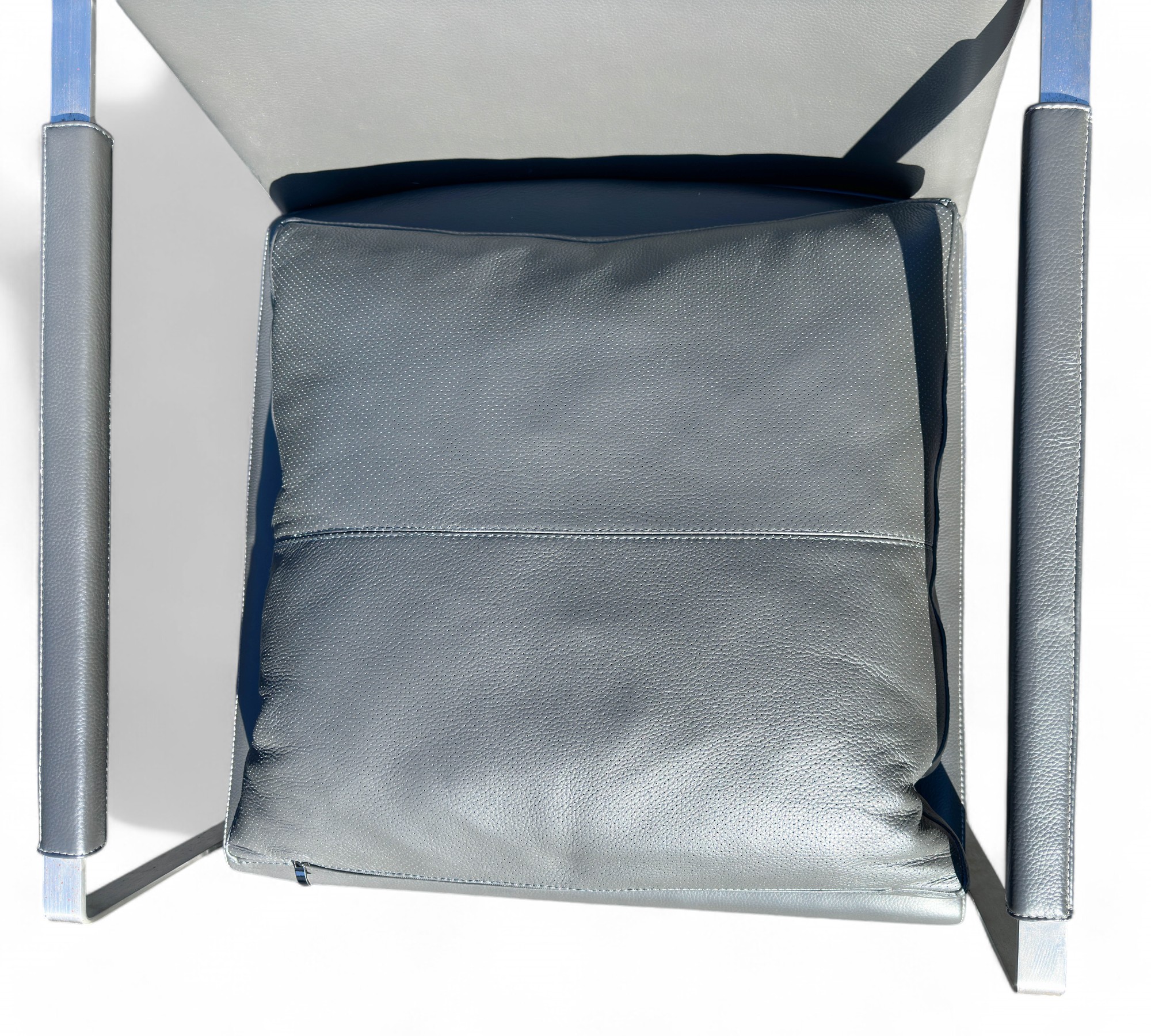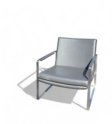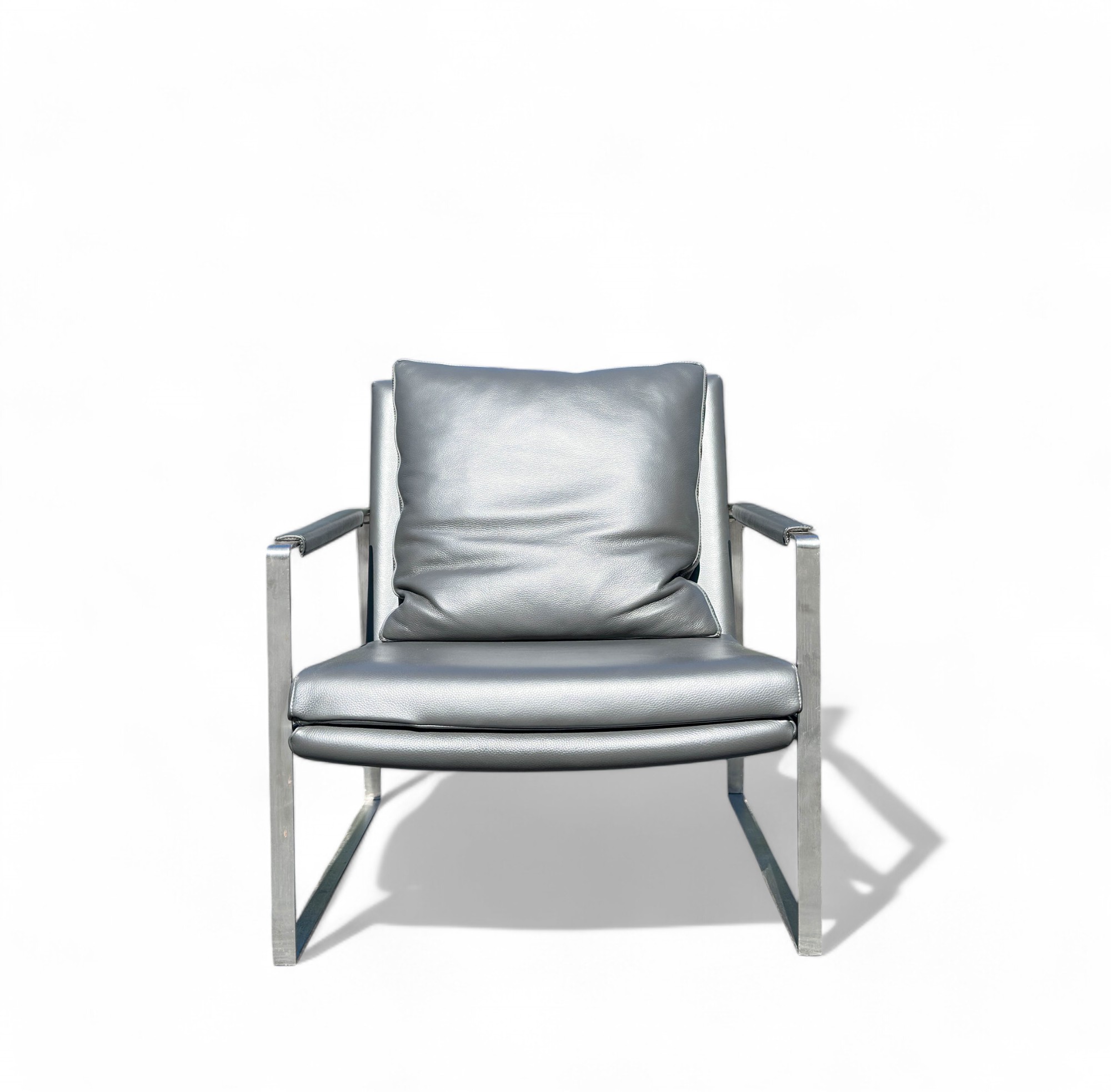 Heavy Brushed Nickel Base with Soft Grey leather Upholstery. Quality Designer Chair which is very comfortable.