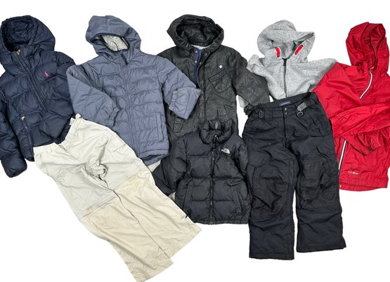 snow pants, ski pants, rain jacket, wind breaker, hiking pants, fleece, down jackets, hooded sweatshirt