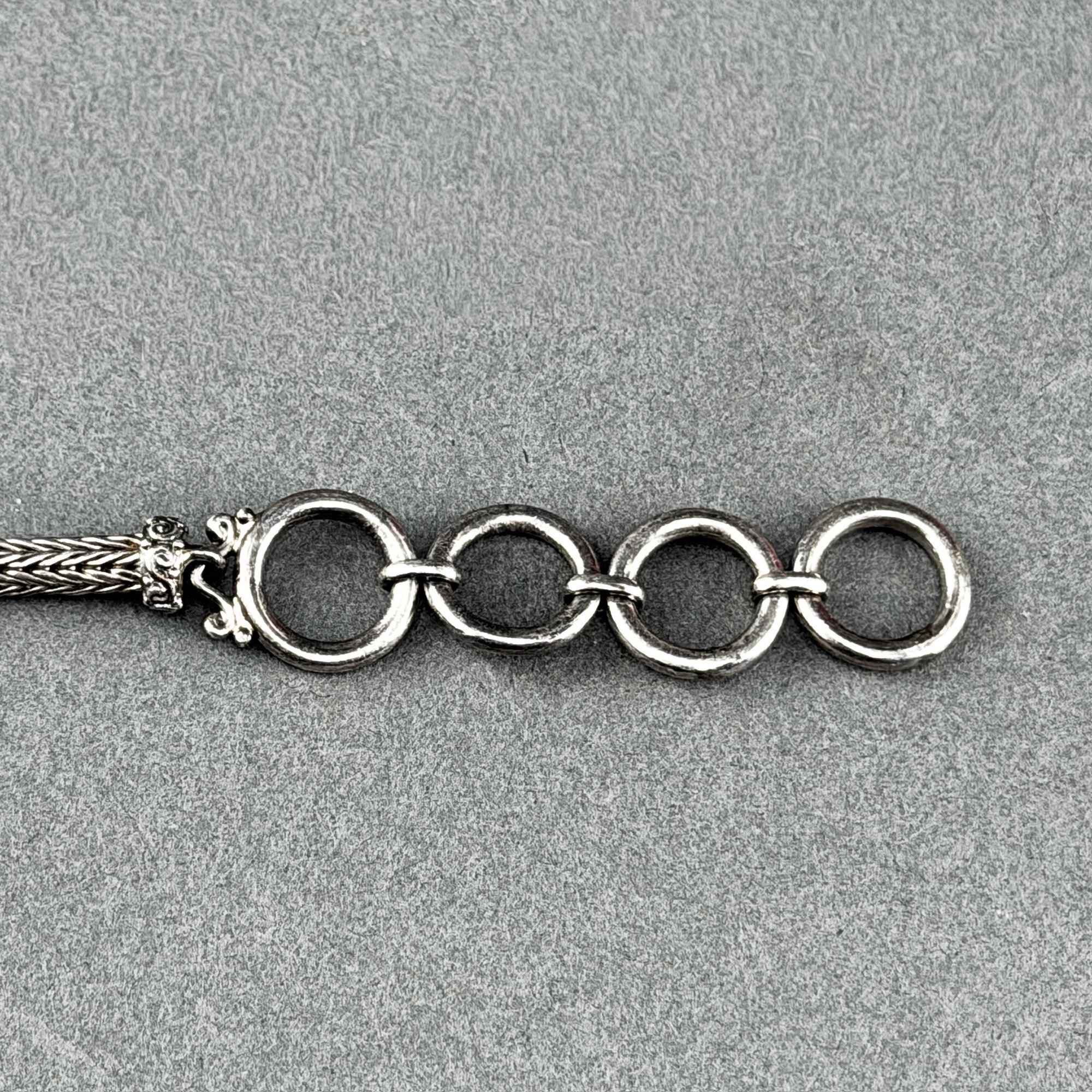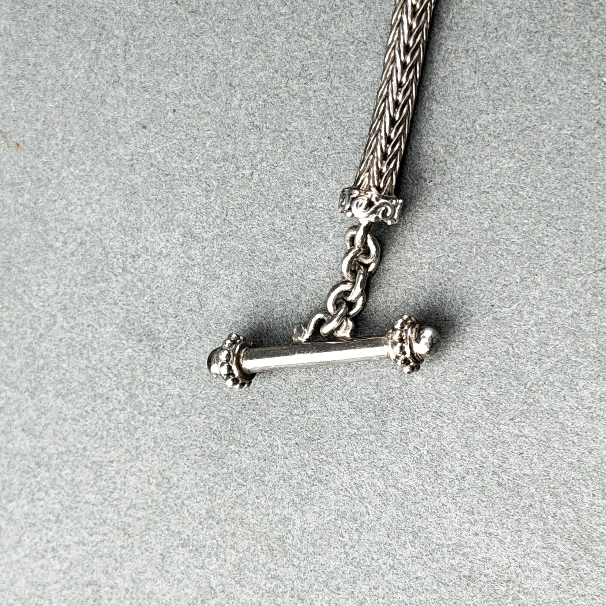 Vintage sterling silver snake chain connecting two faceted citrine stones and large oval jasper or carnelian or pink agate central stone.