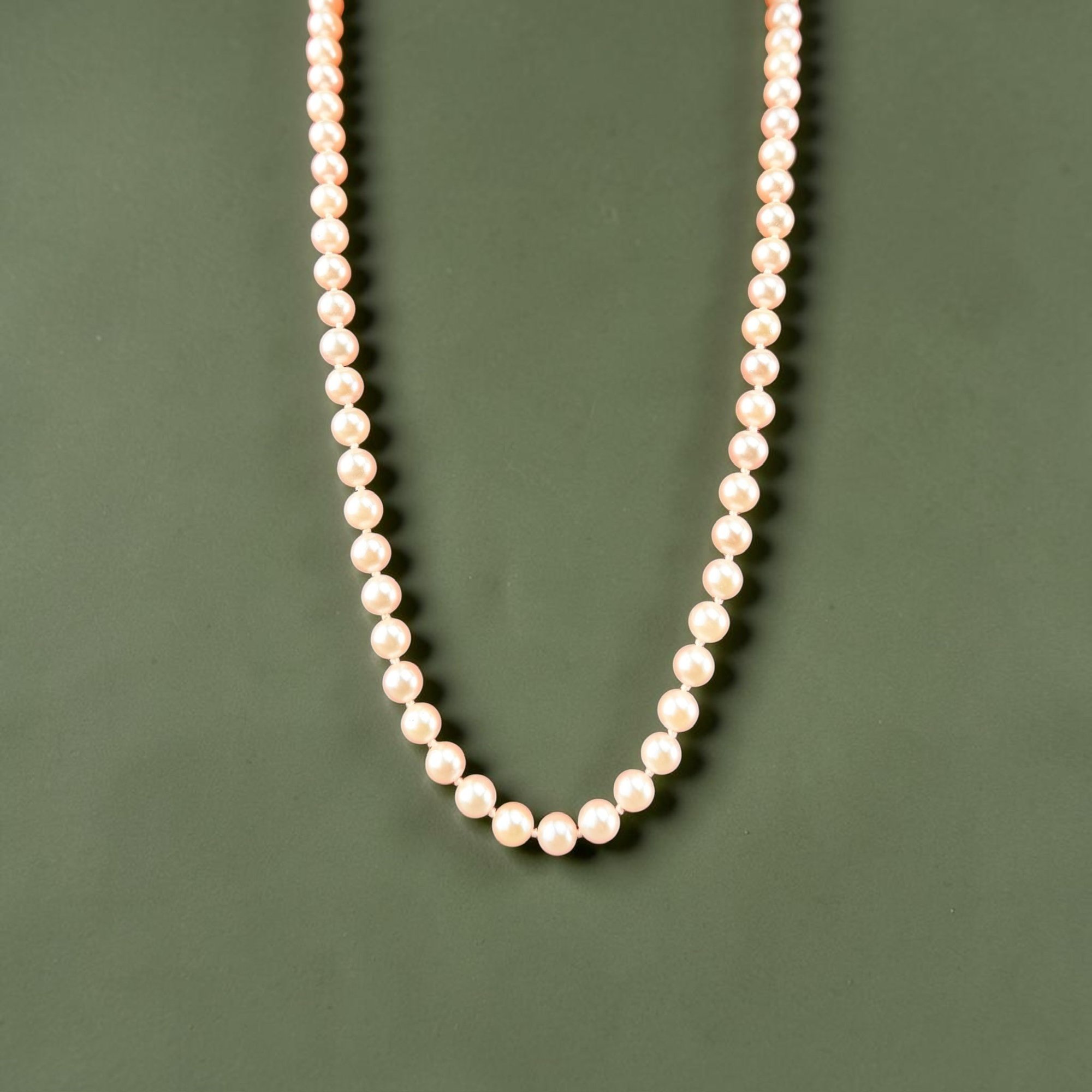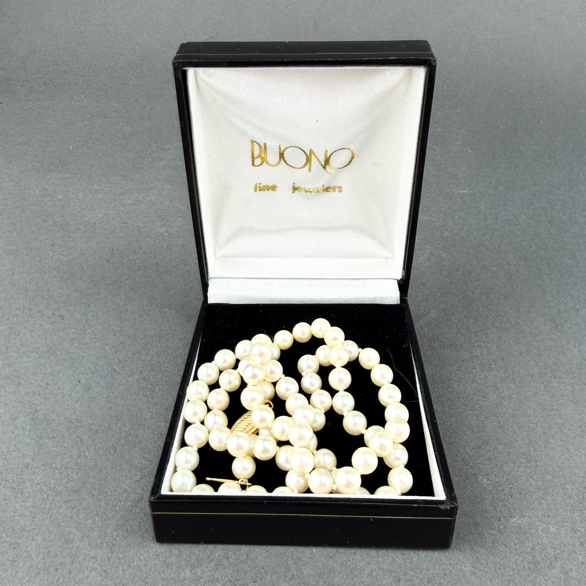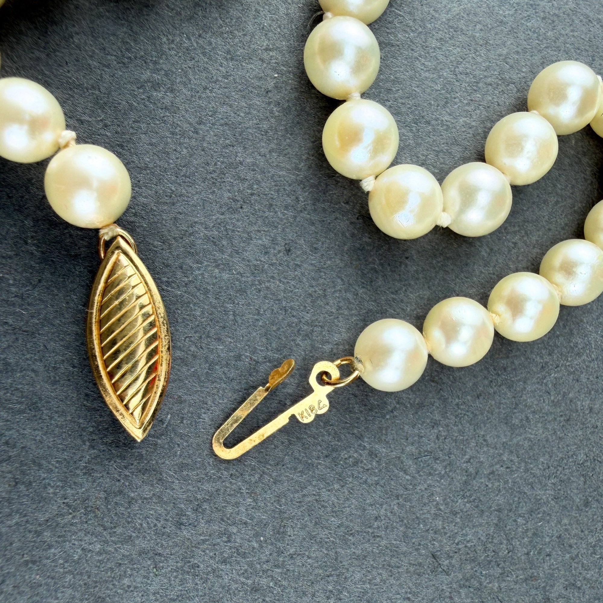 Classic Strand of white saltwater pearls with 18kt yellow gold clasp. total 18 1/2" Long