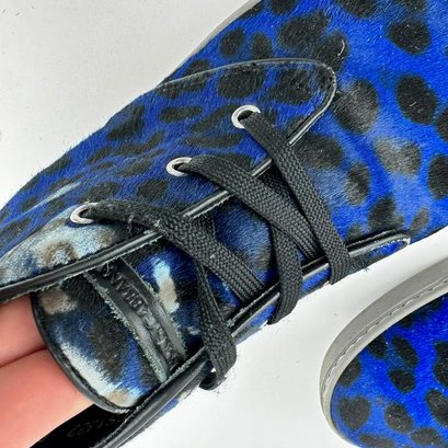 These were sold distressed as you see by the calf hair at top of left shoe