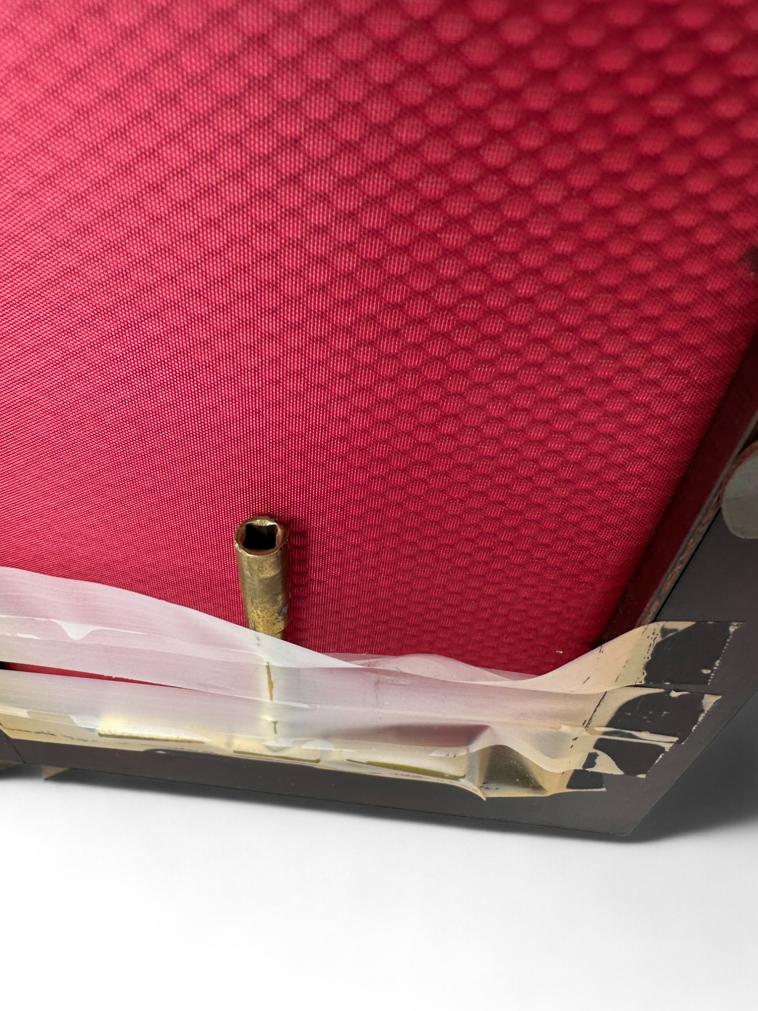 Measures 9" W x 5 1/2" D x 13" H / 15" With Brass Handle Up