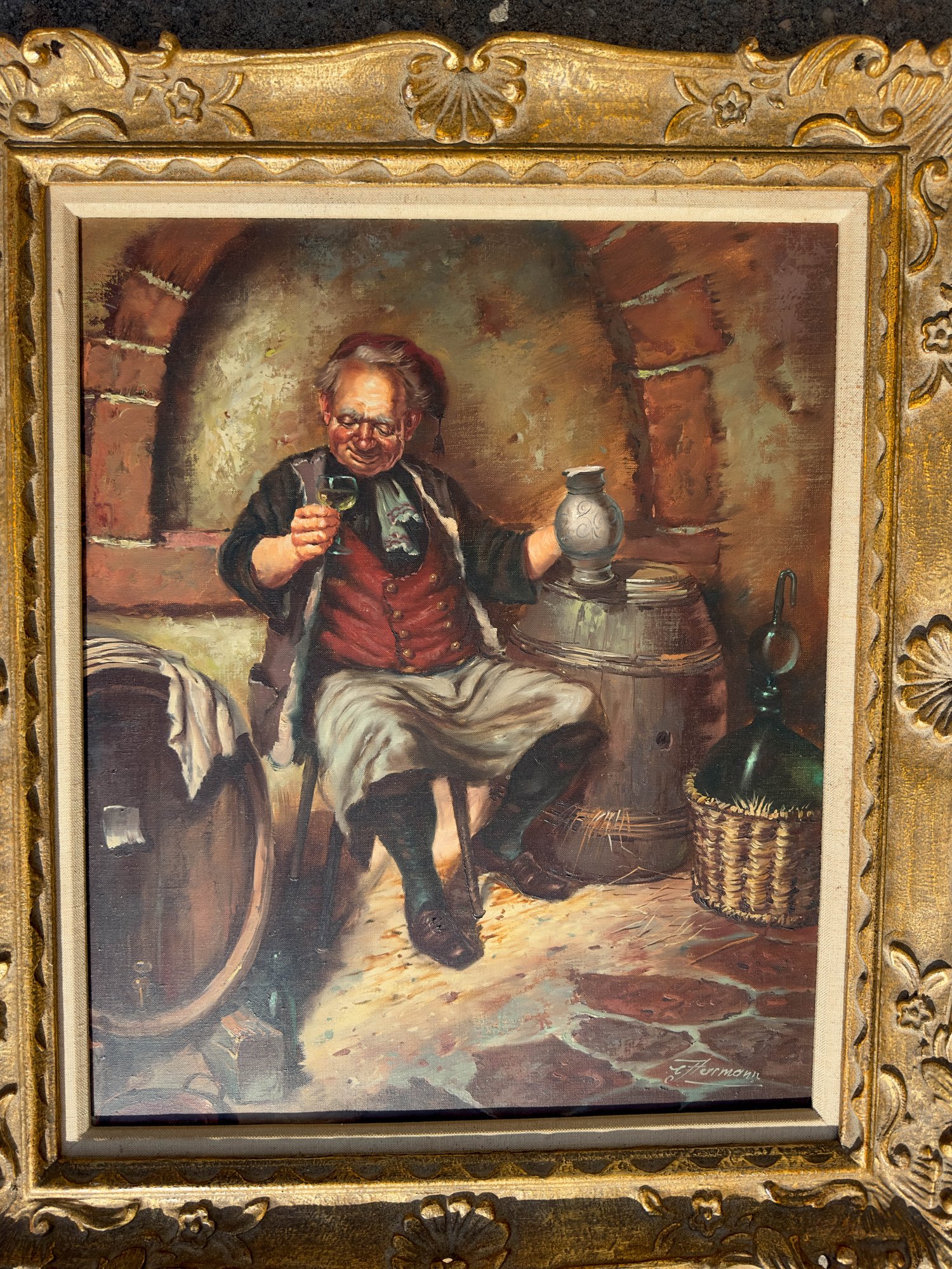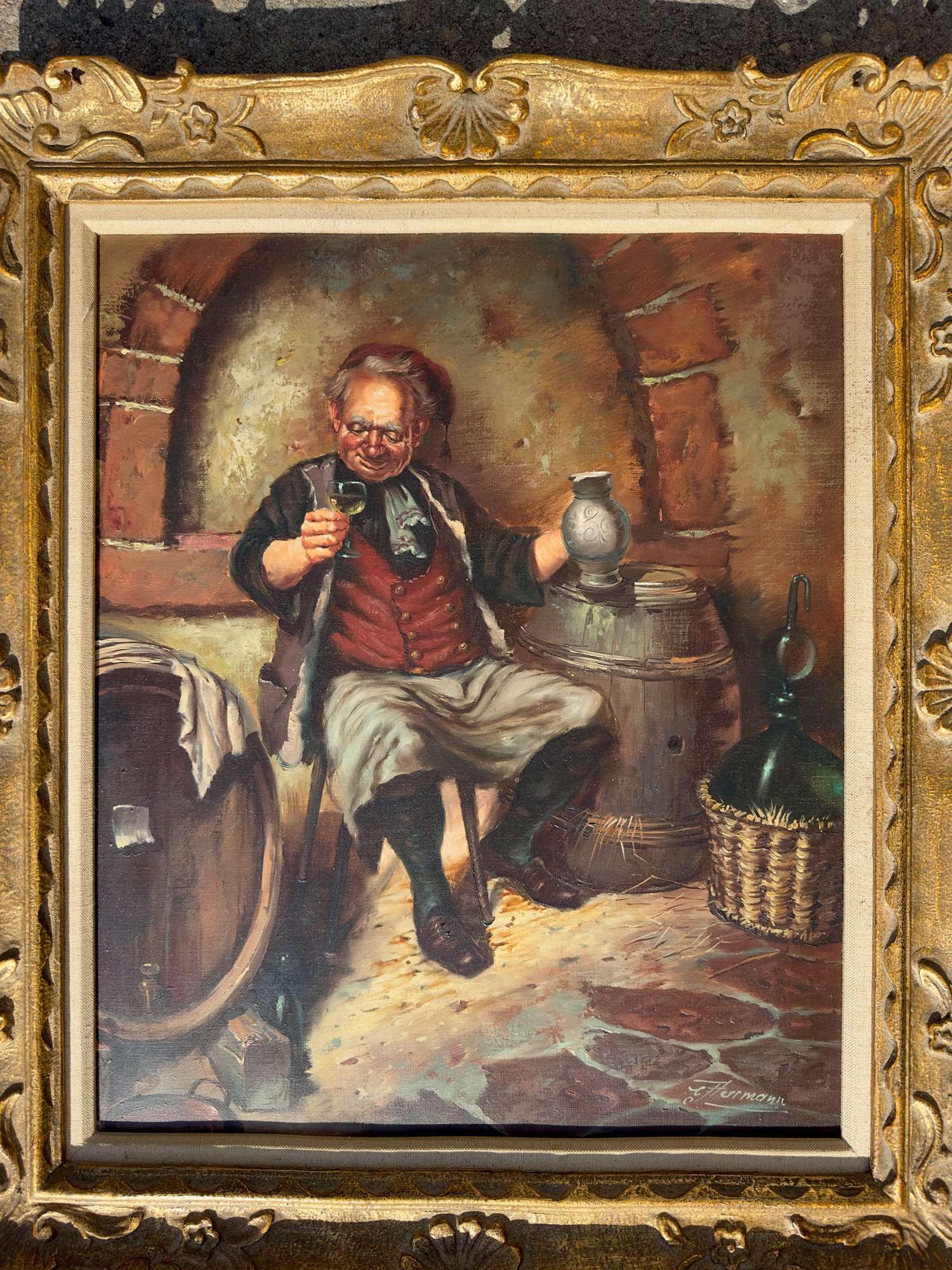 Framed Original Oil On Canvas, Conrad Hermann, Wine Maker