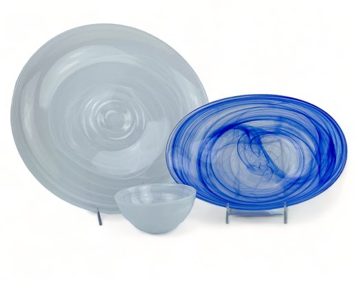 Blue Oval Bowl W 12 1/4" H 8 1/2" D 2 1/2"