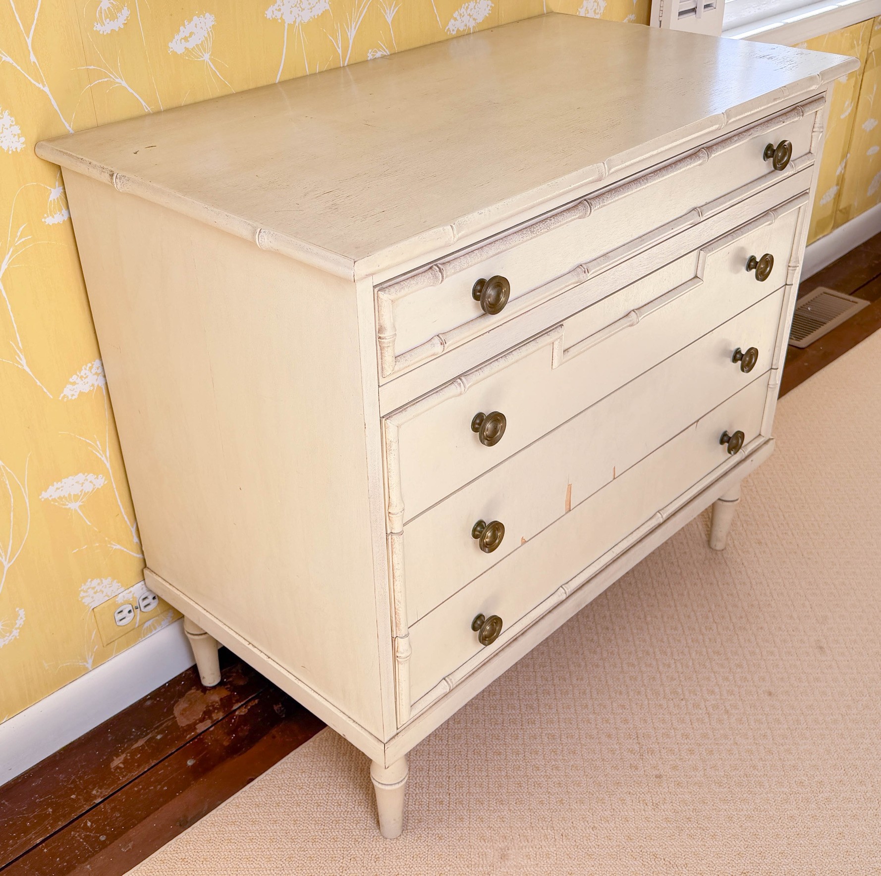 Mid Century Thomasvillebamboo style turned wood four drawer chest of drawers