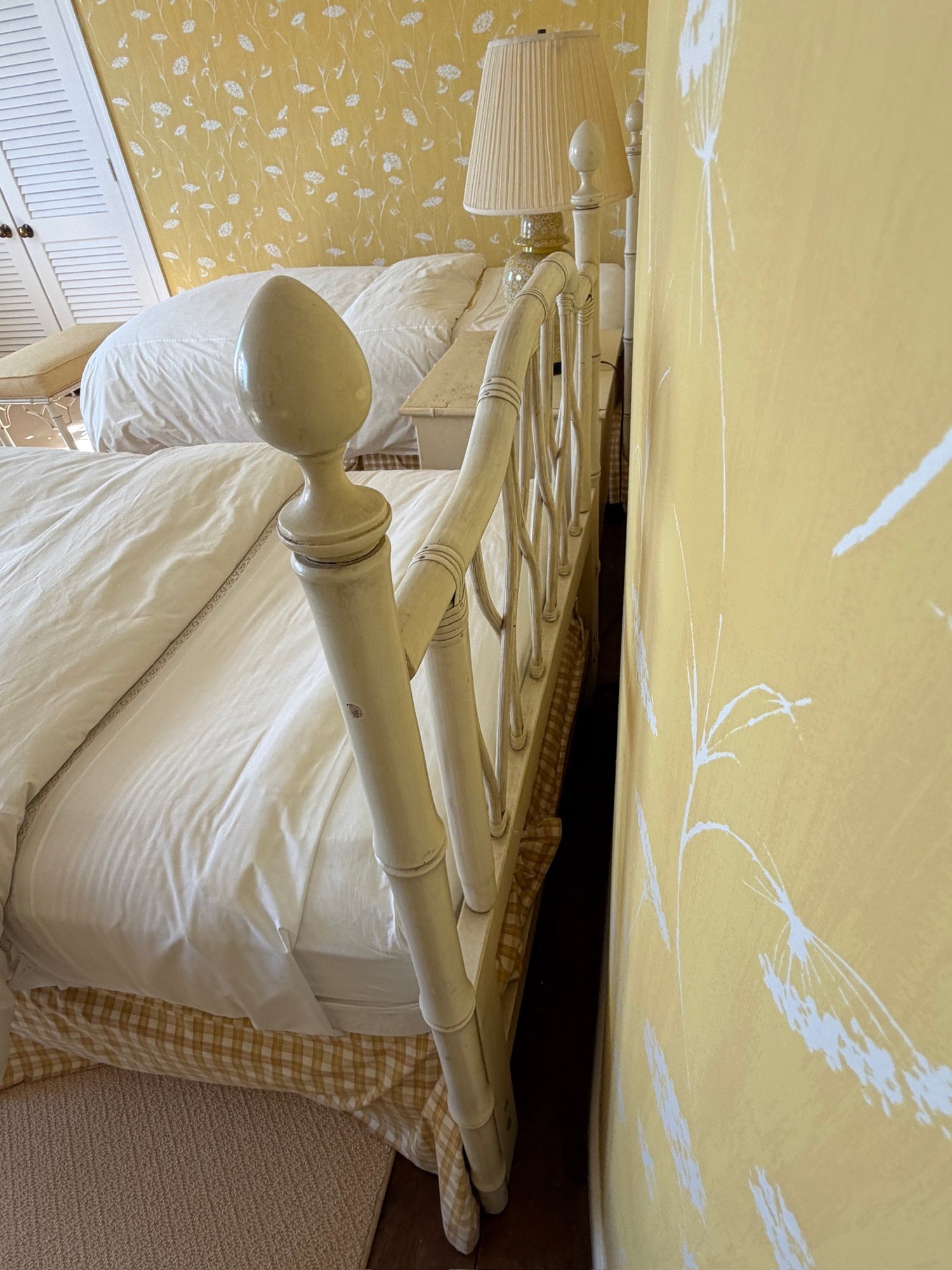 Mid Century Thomasville Hollywood Regency style bamboo- turned wood twin sized beds in matte brushed white paint