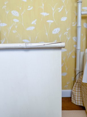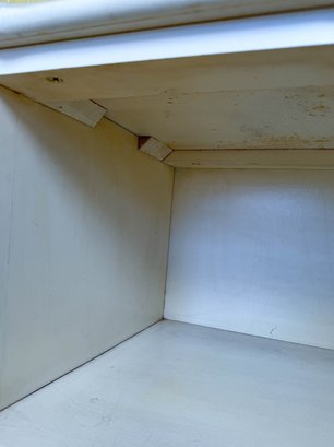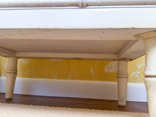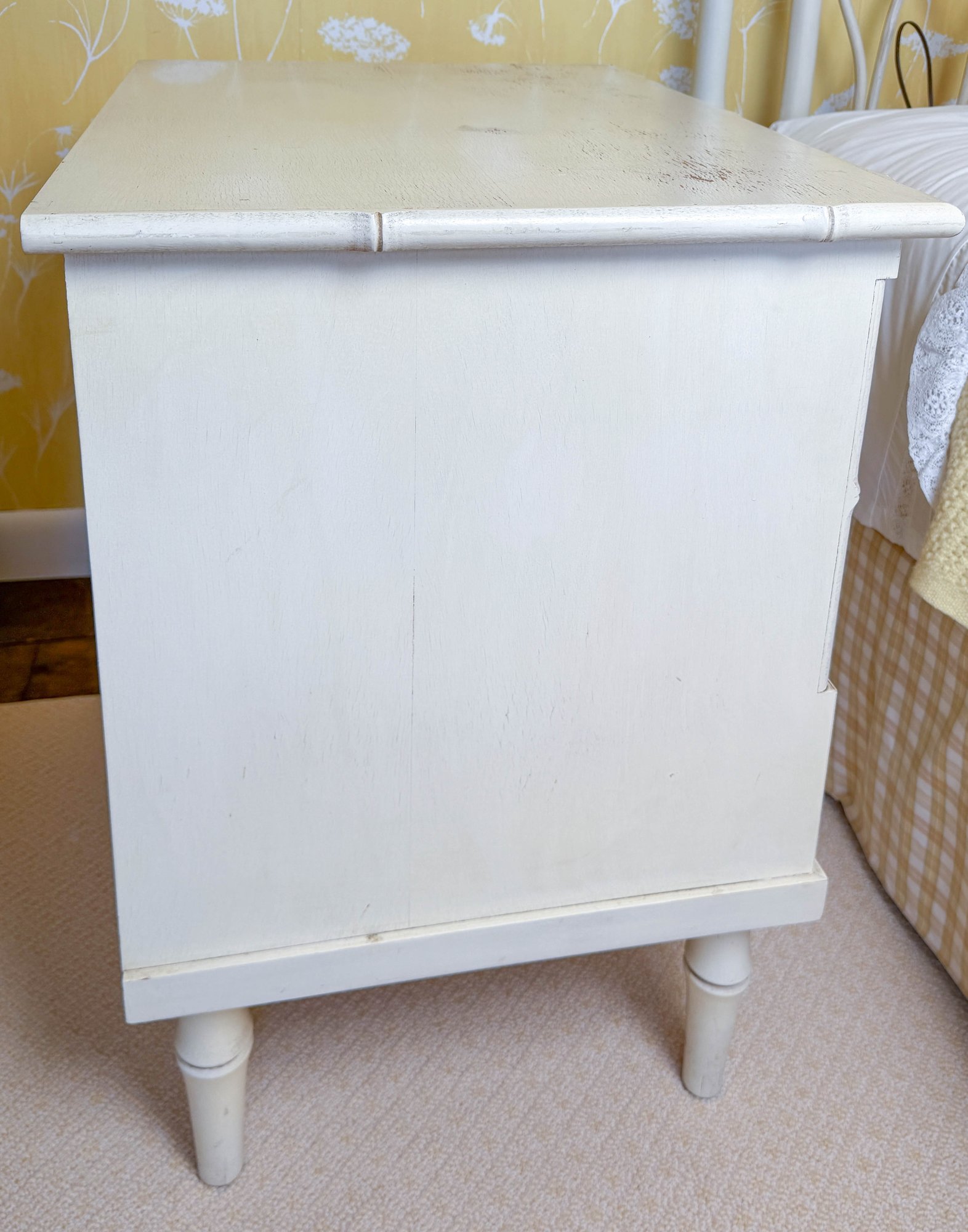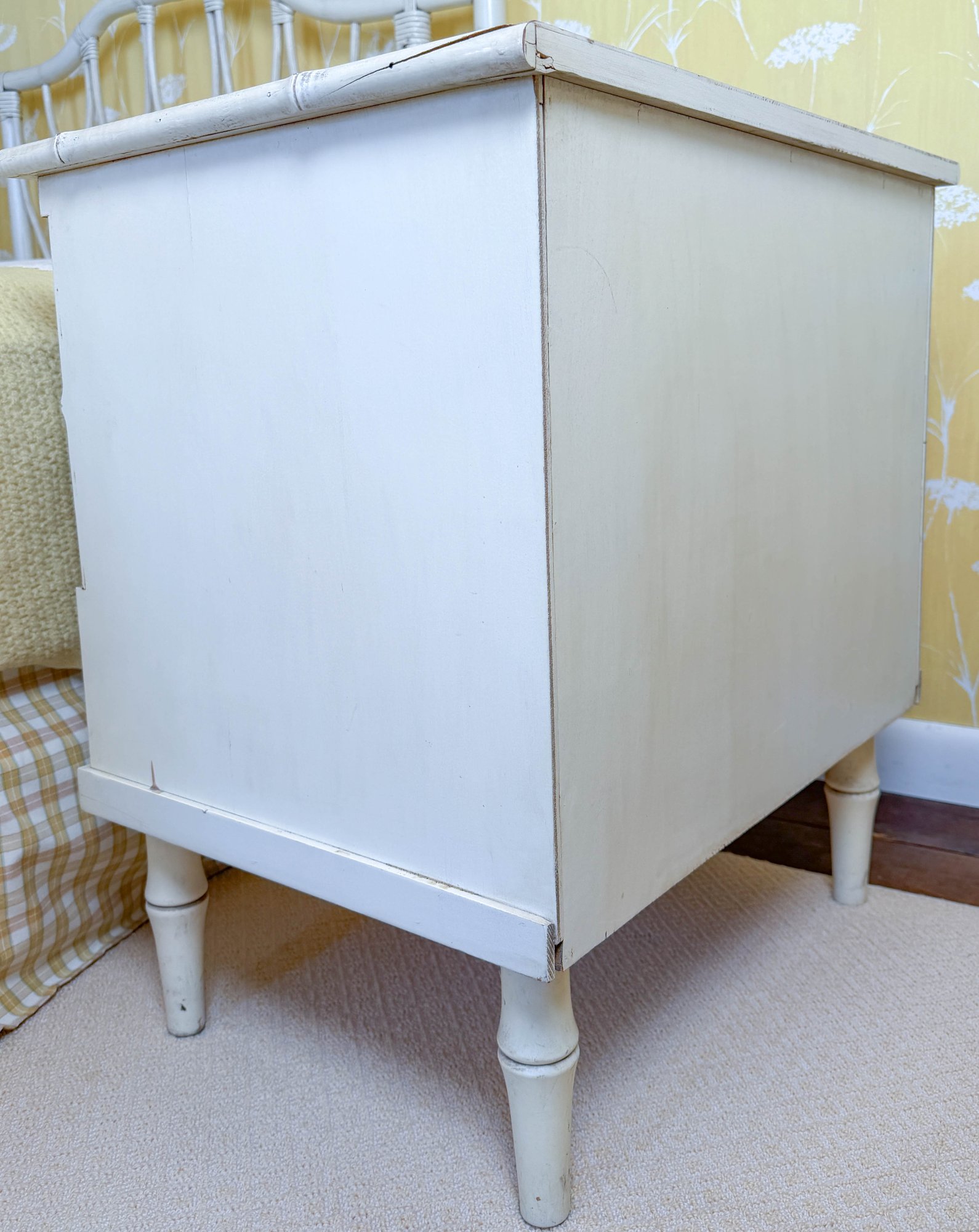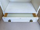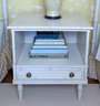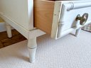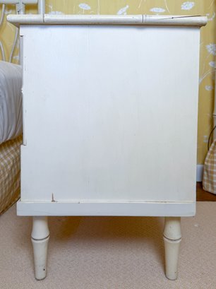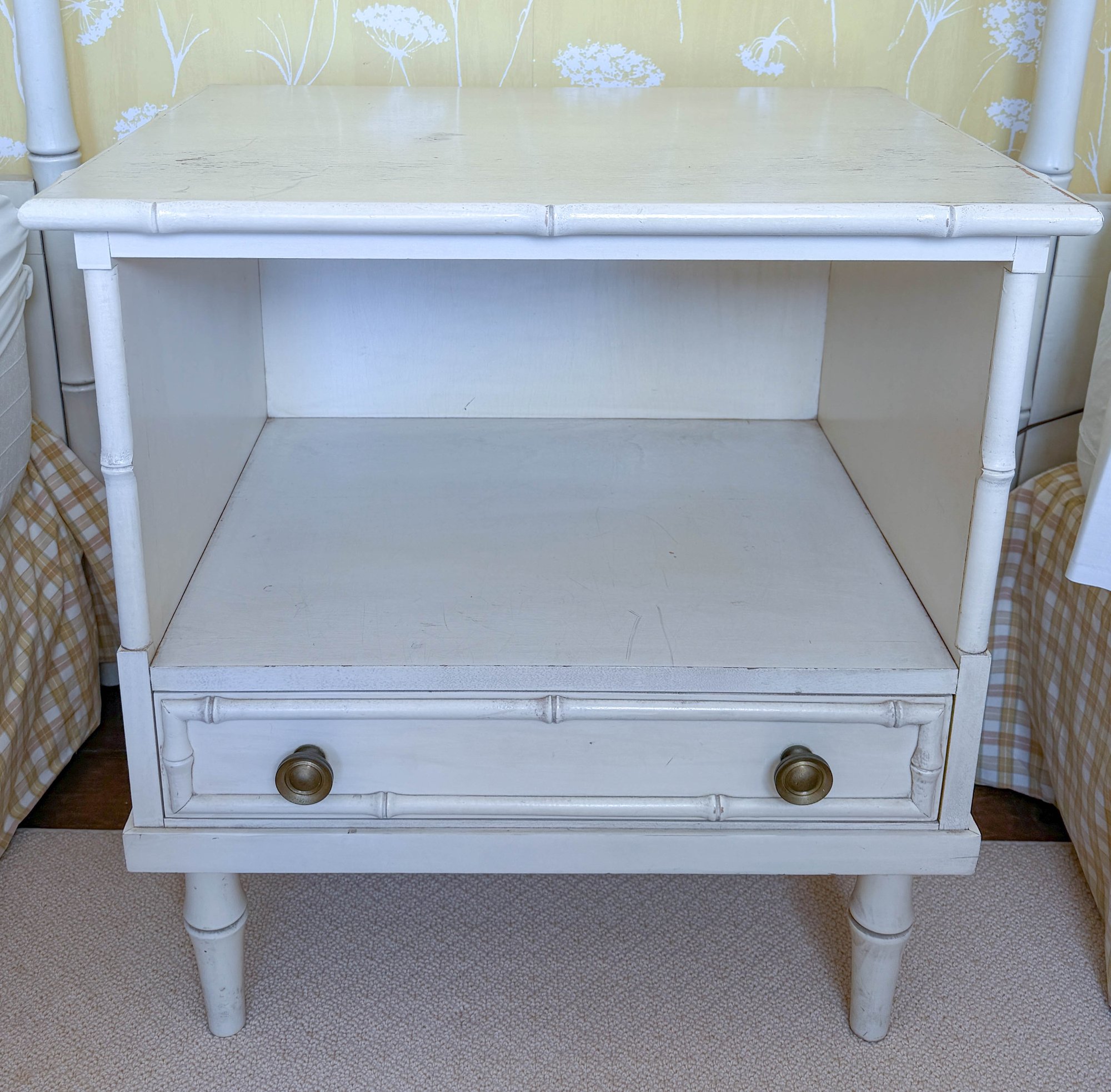 Mid century Thomasville Allegra colleciton single drawer nightstand. Made of wood with a matte dry brush finish in slightly off white