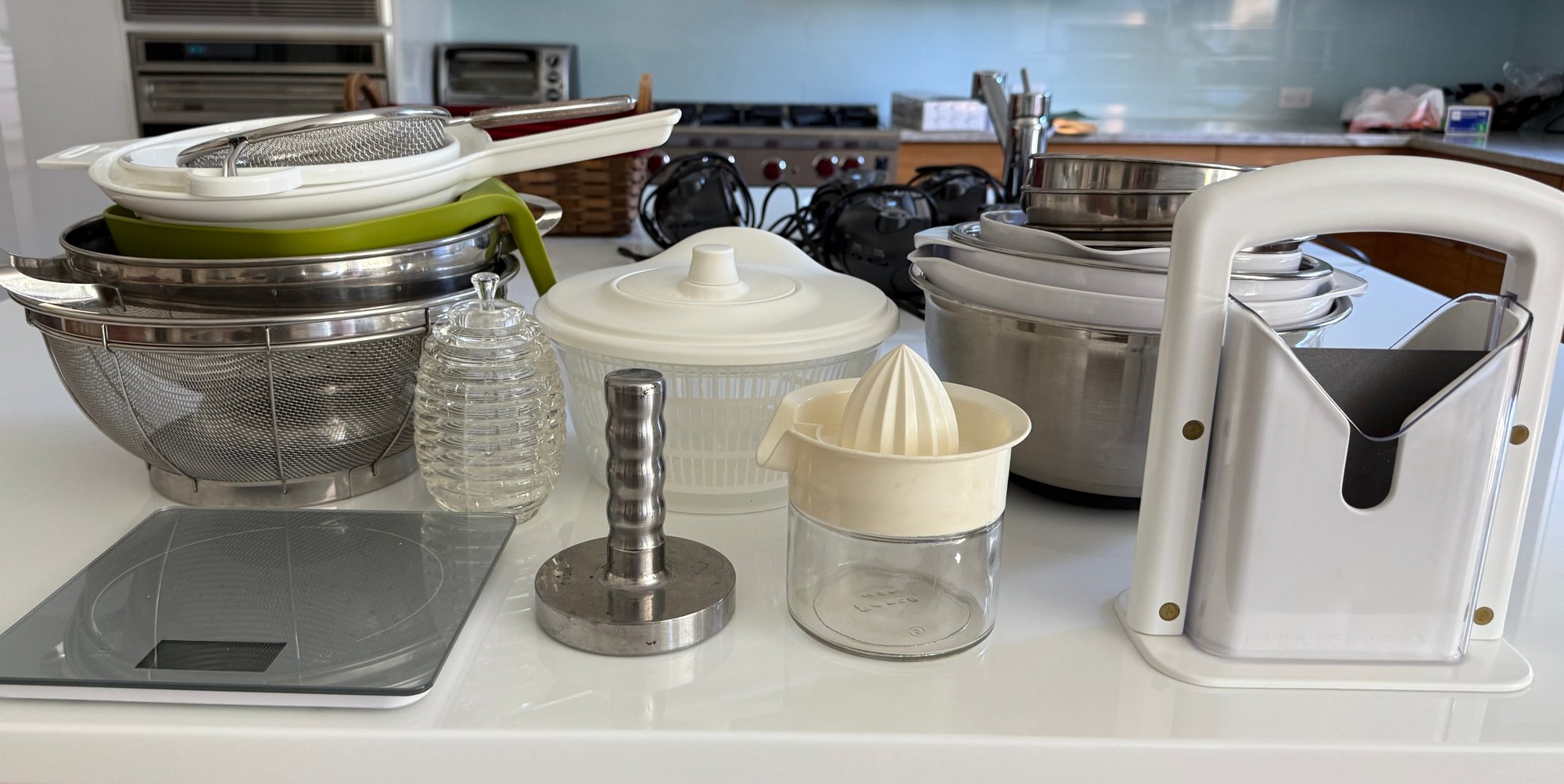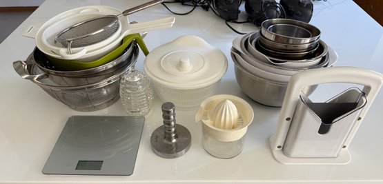 bagel slicer, bowls strainers, juicer etc