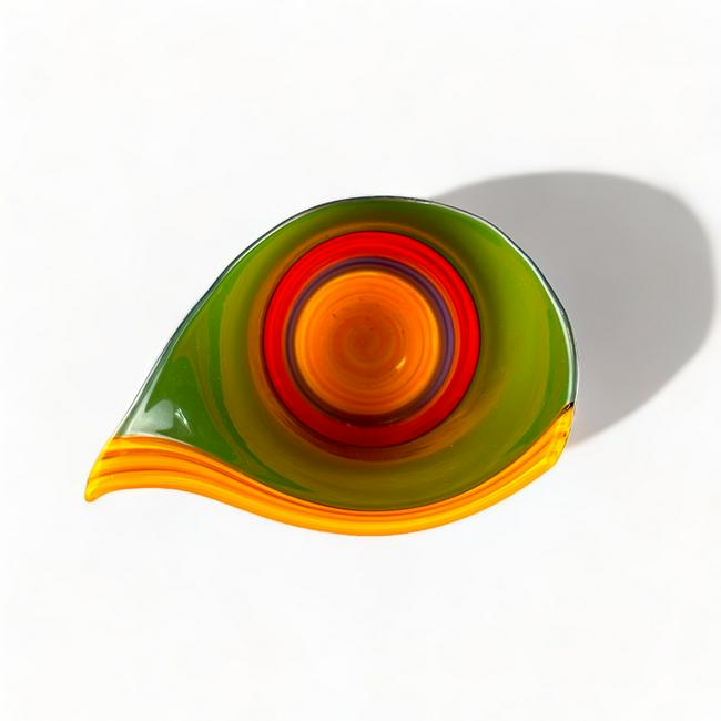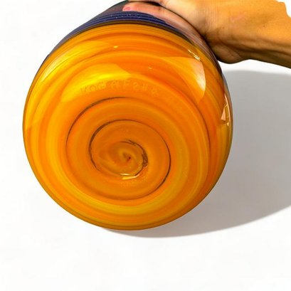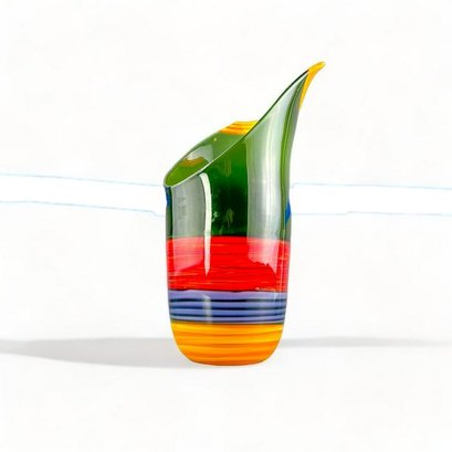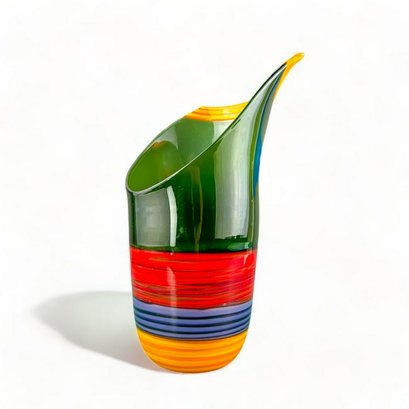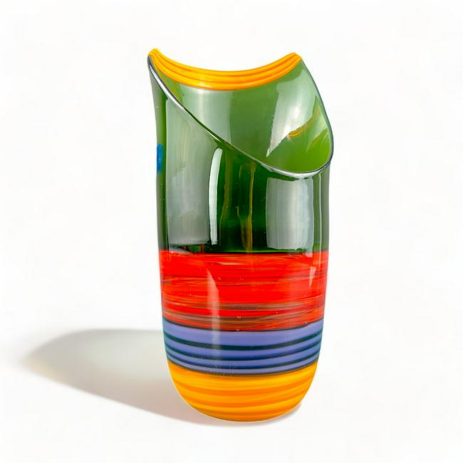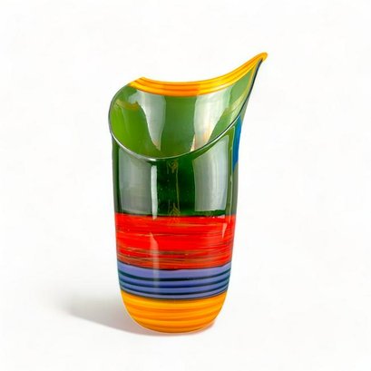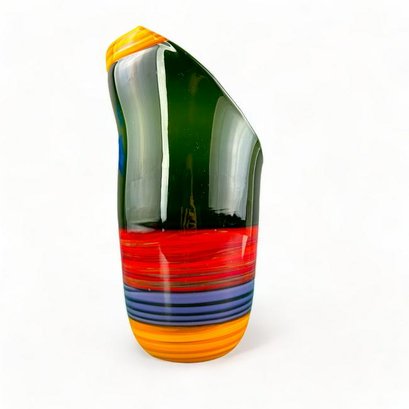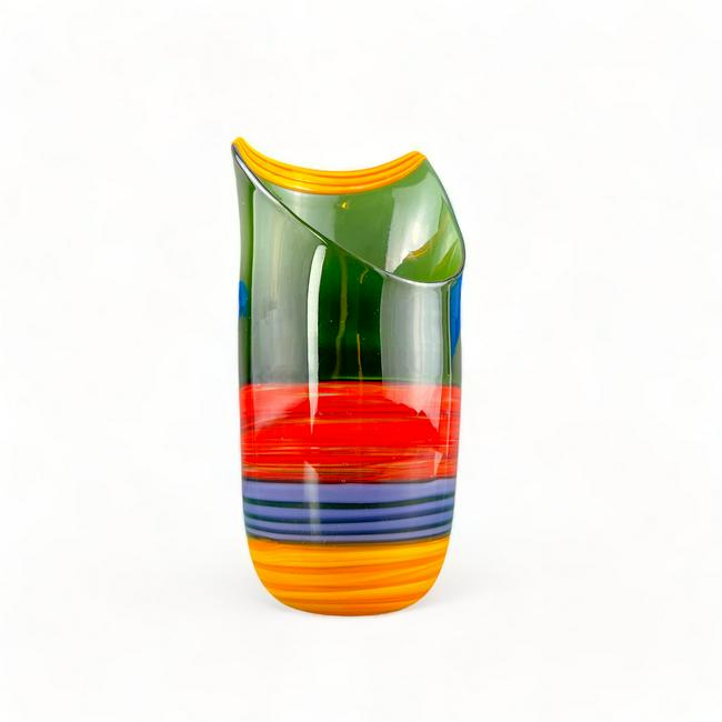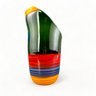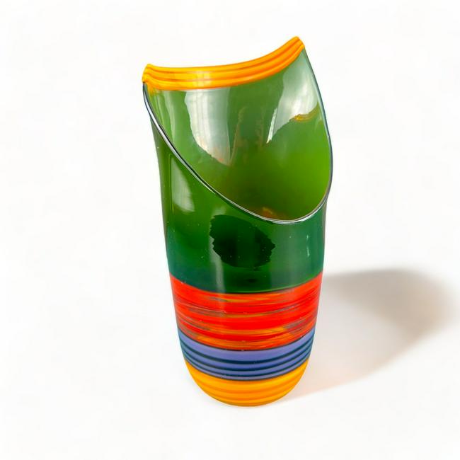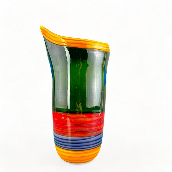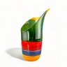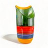 KOG (Kokomo Opulescent Glass) green, orange, red and purple art glass vase :