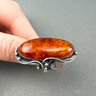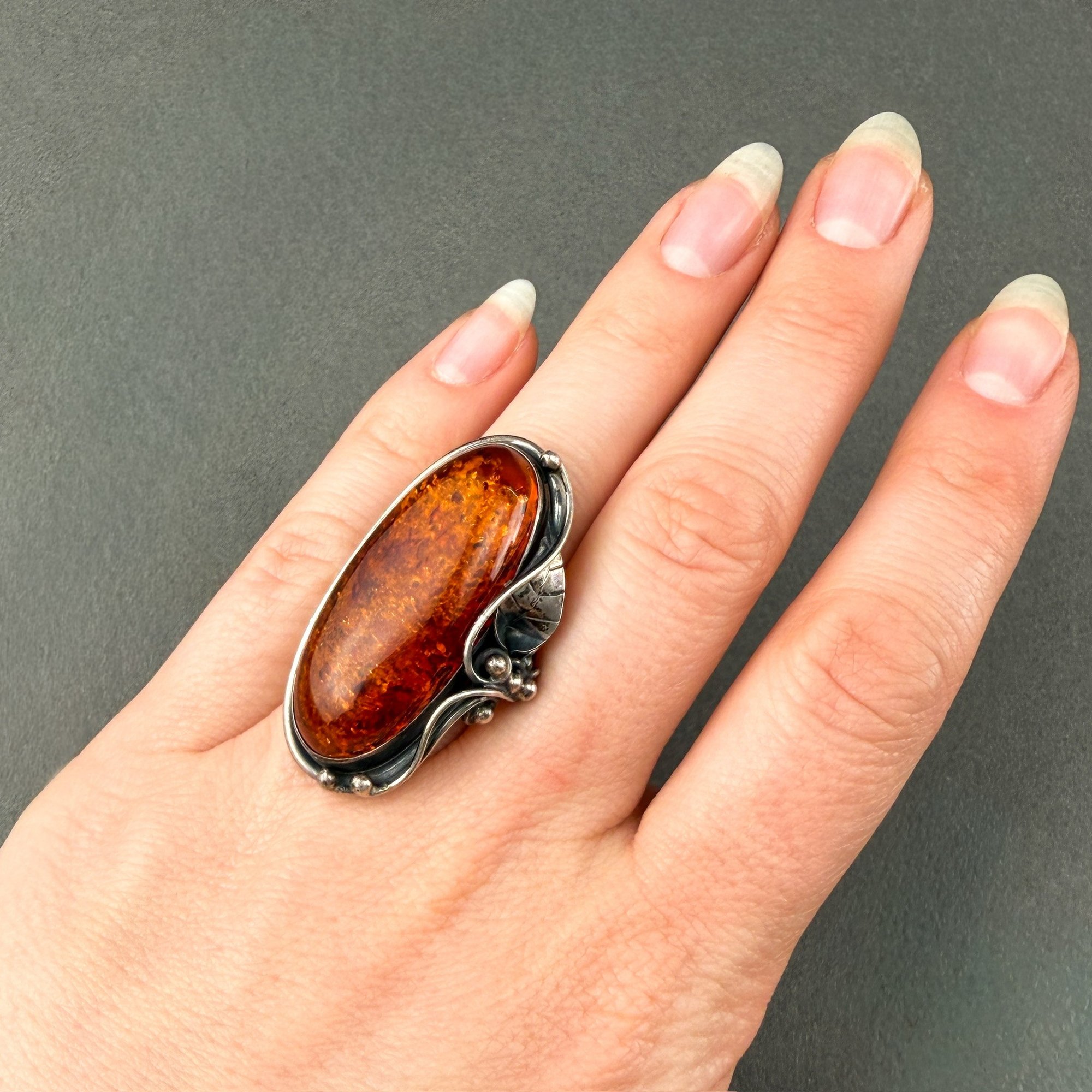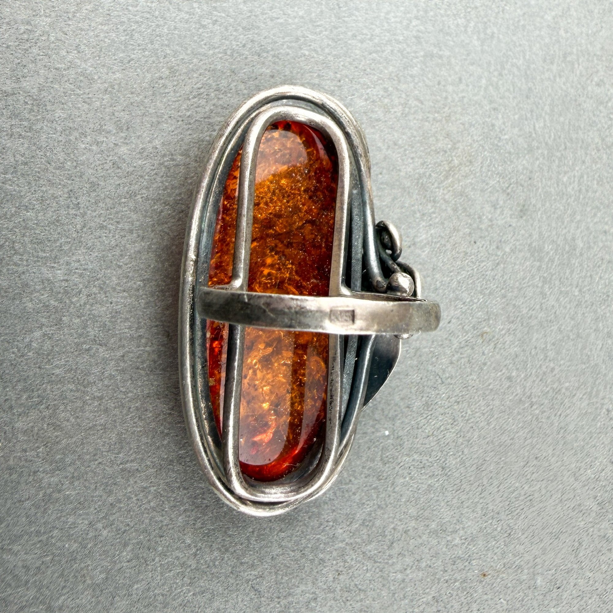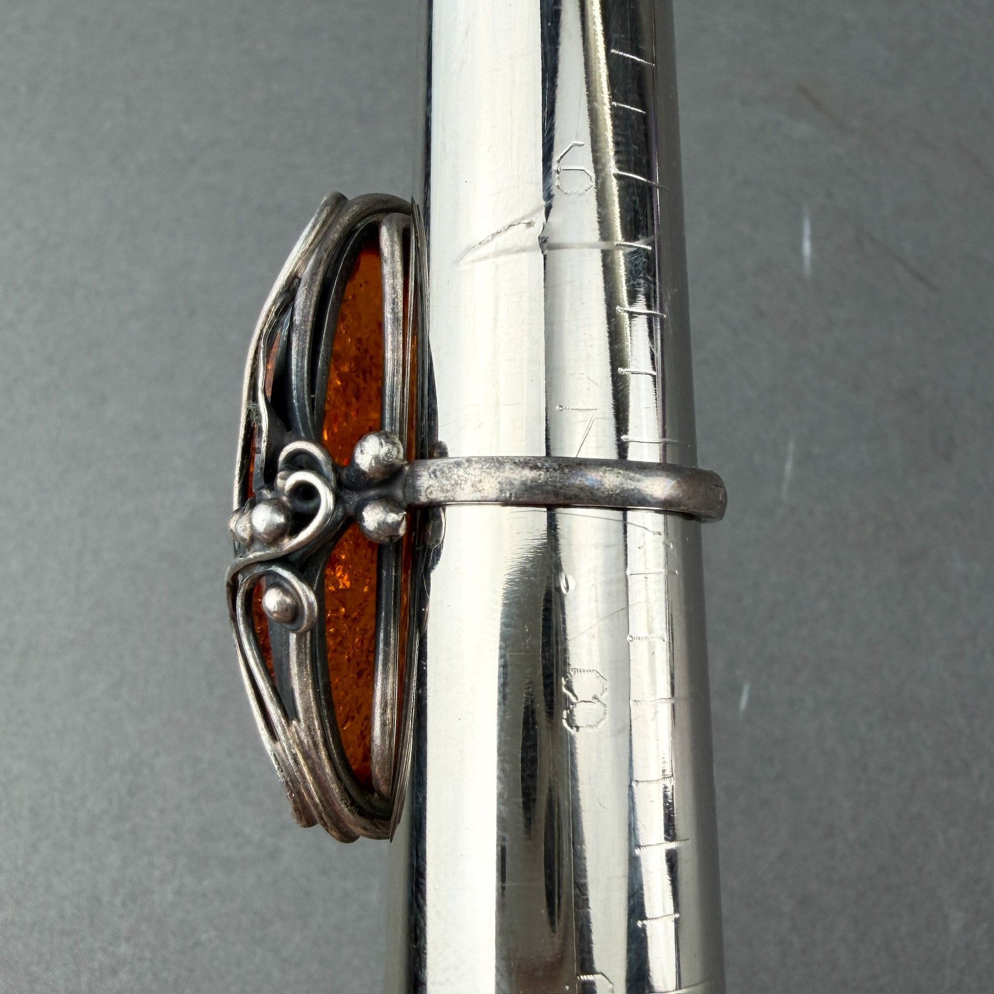 Large Art Nouveau Oval Amber And Sterling Silver Ring