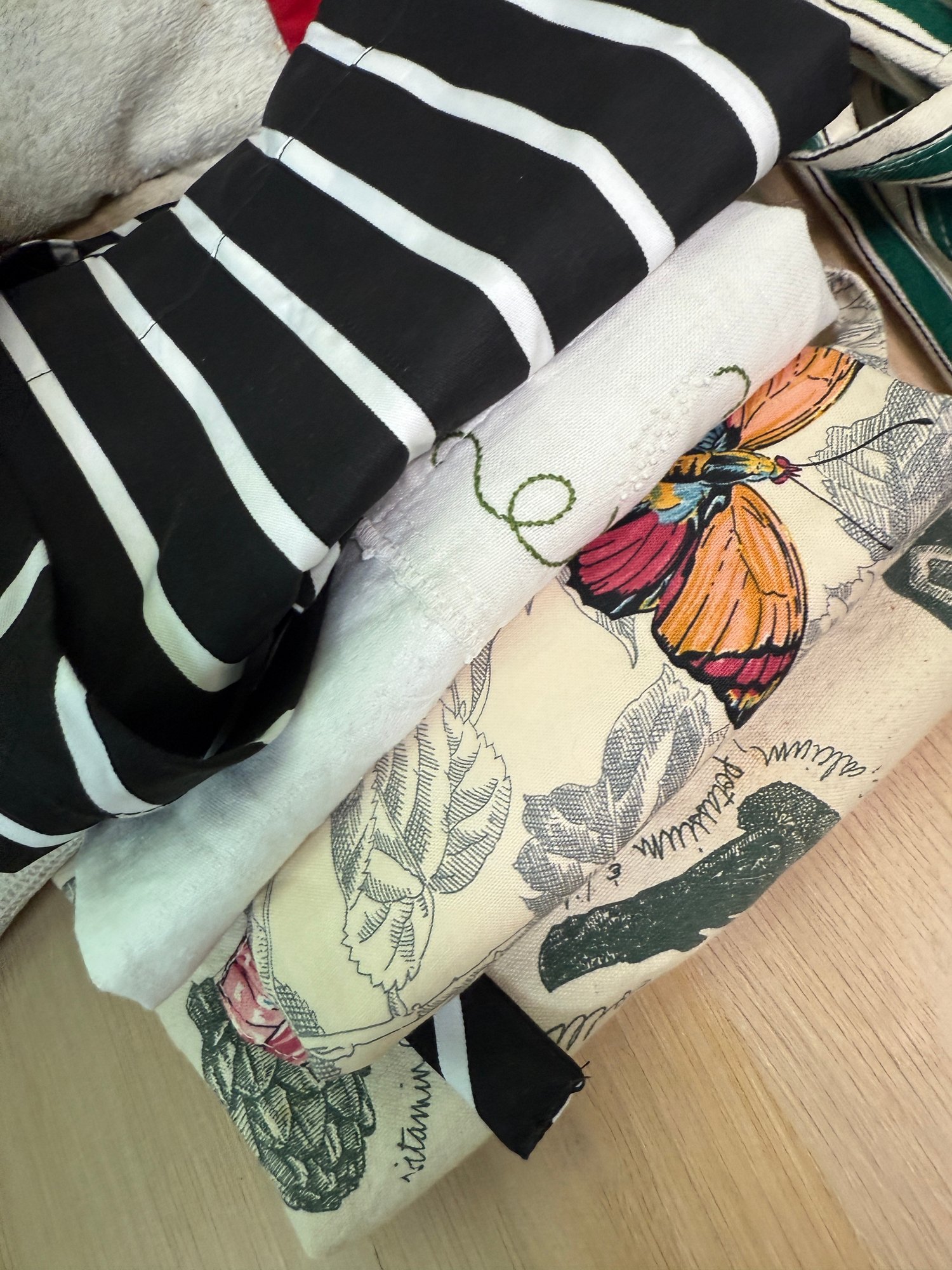 Aprons and Oven Mitts and nice cotton Dish towels.