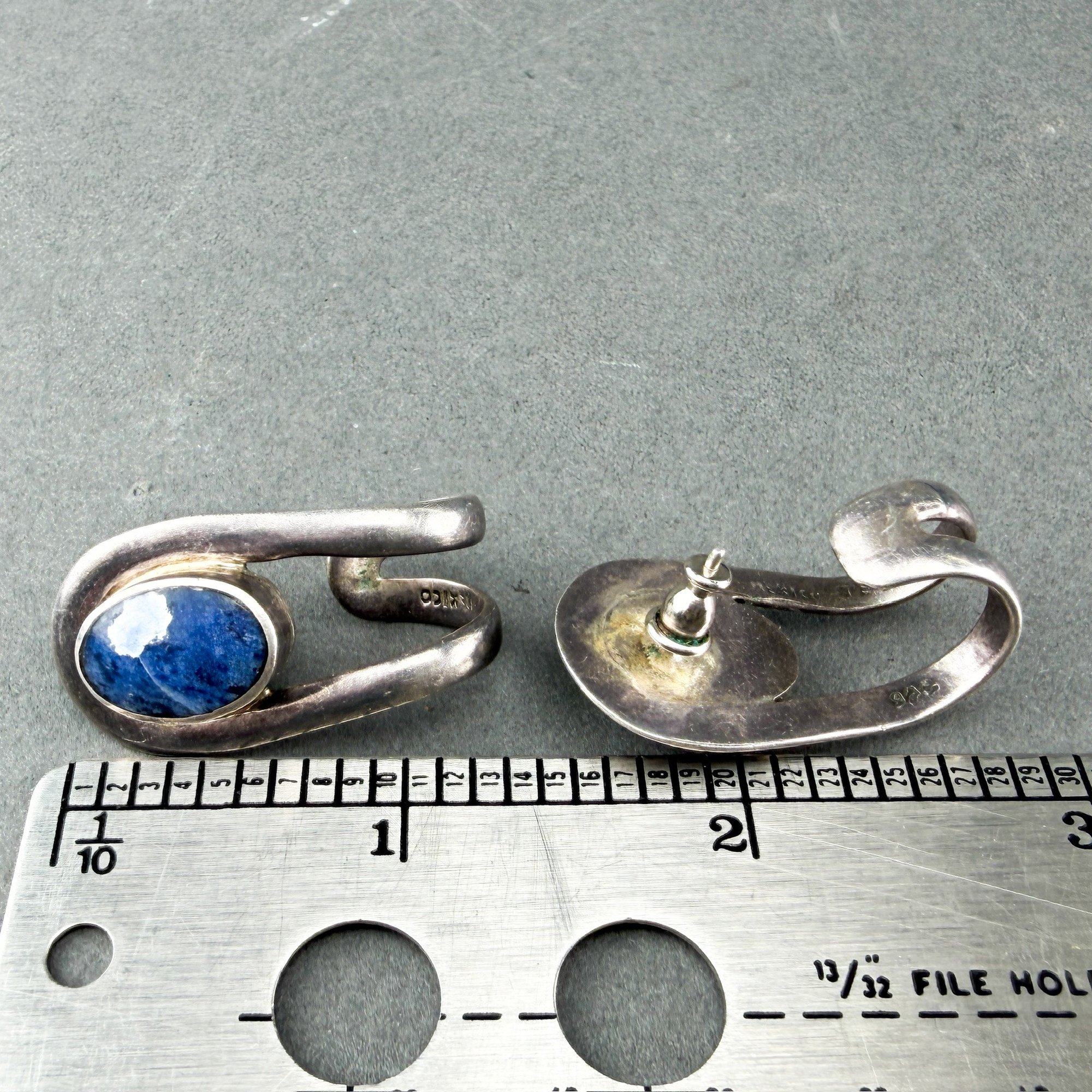 Mexico Sterling Silver And Denim Laips Lazuli Stone Earrings