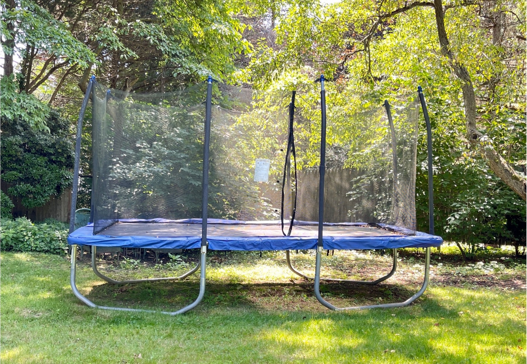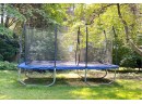 Rarely used Ocean Master Co trampoline. Spacious rectangular trampoline with fiber flex enclosure feature.
