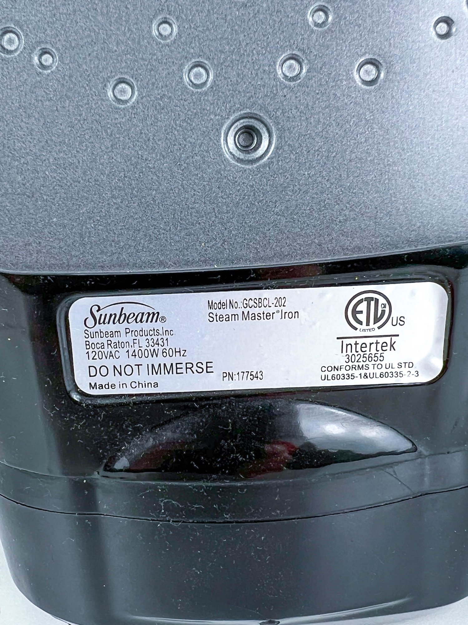 Sunbeam Iron W 4 1/2" H 12" D 5 3/4"