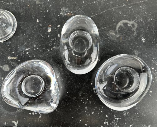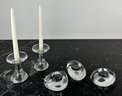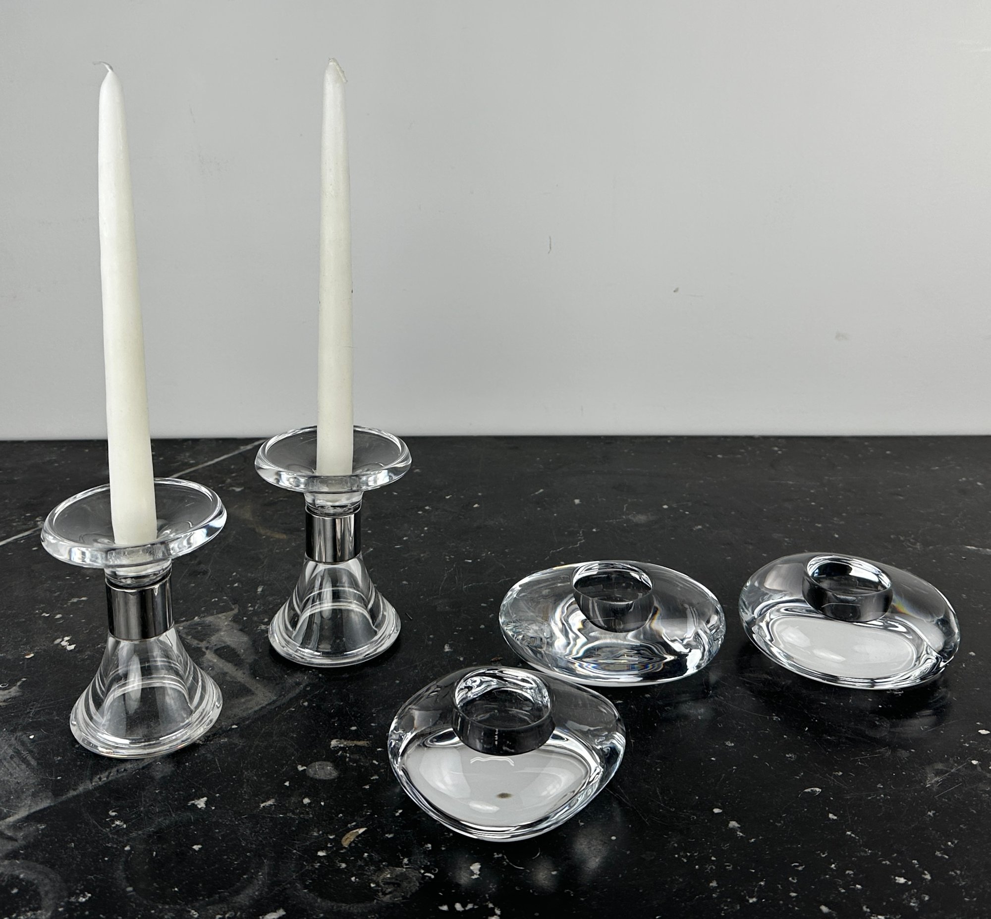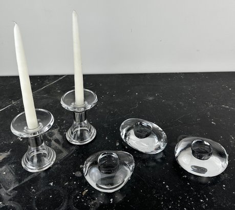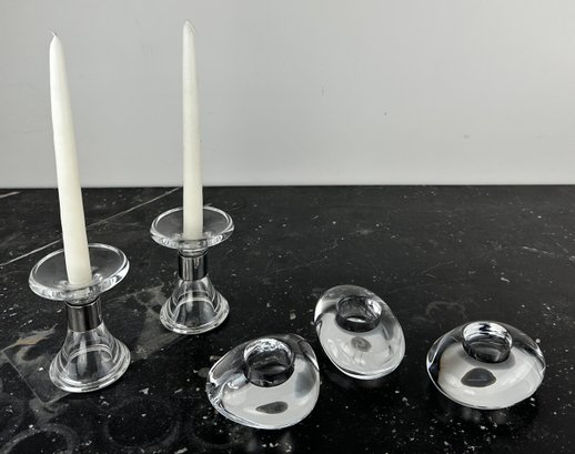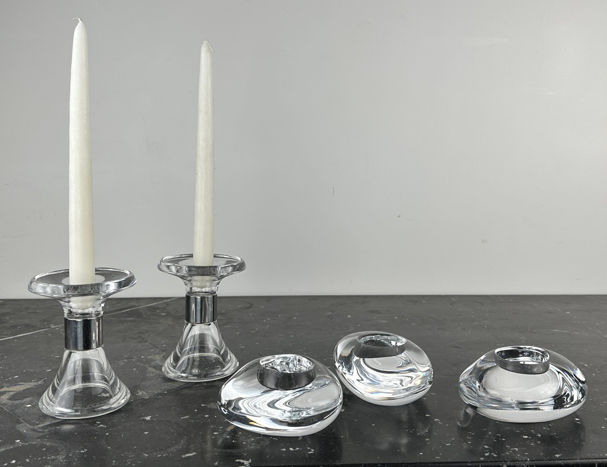 Orrefors Crystal Tea Light Holders And Pair Of Candlestick Holders