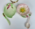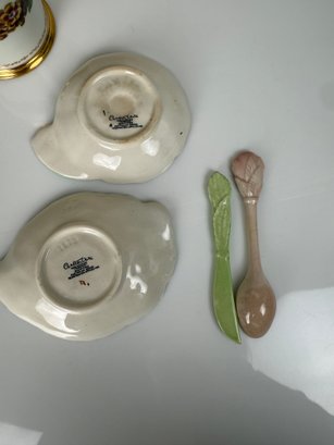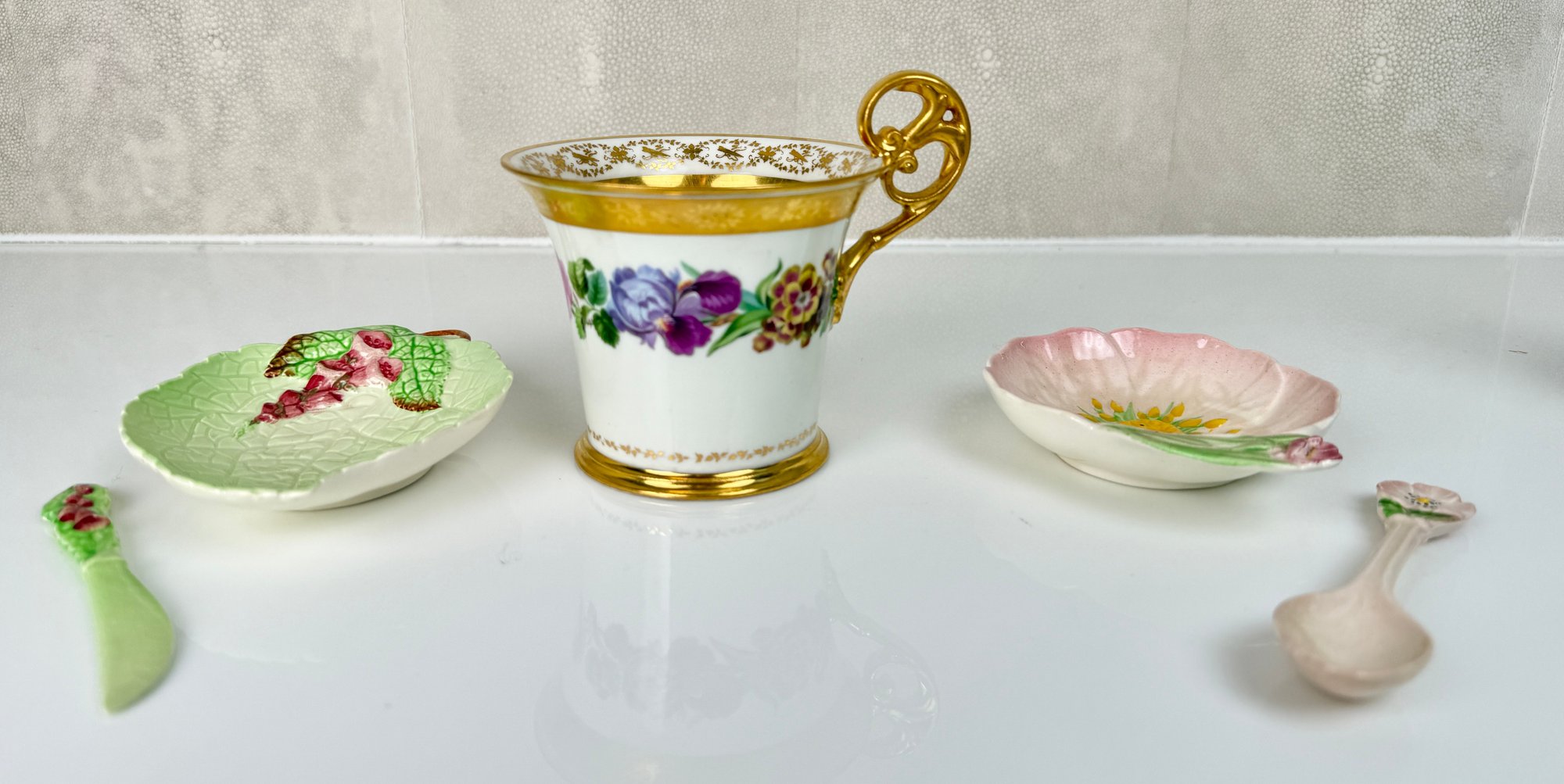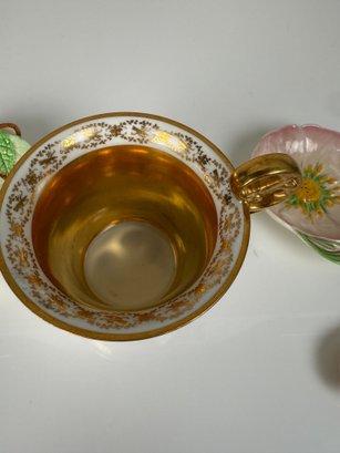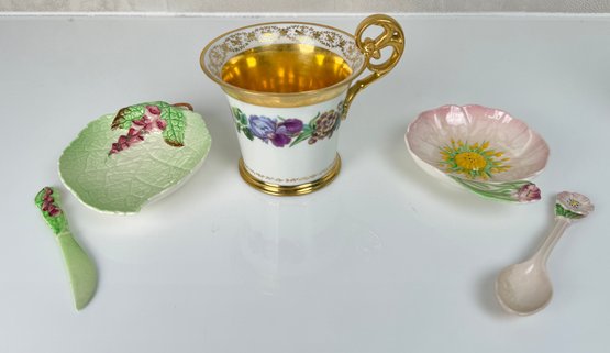 Royal Vienna Gild Painted tea cup and Carlton Ware Floral dishes with spoon and knife