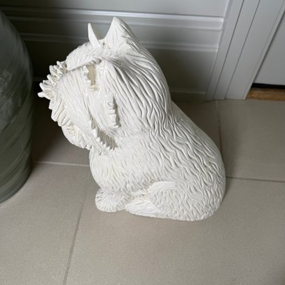 Signed, Cast Resin Scottie Or White Terrier Dog Statue