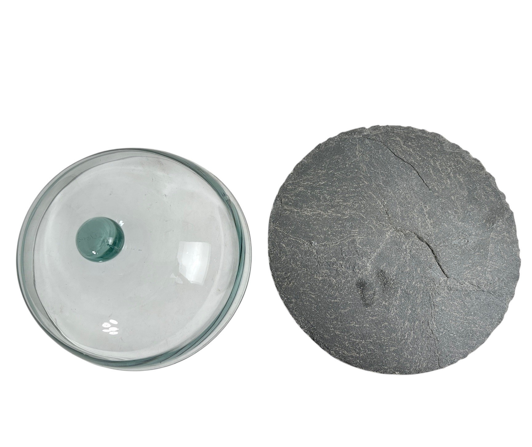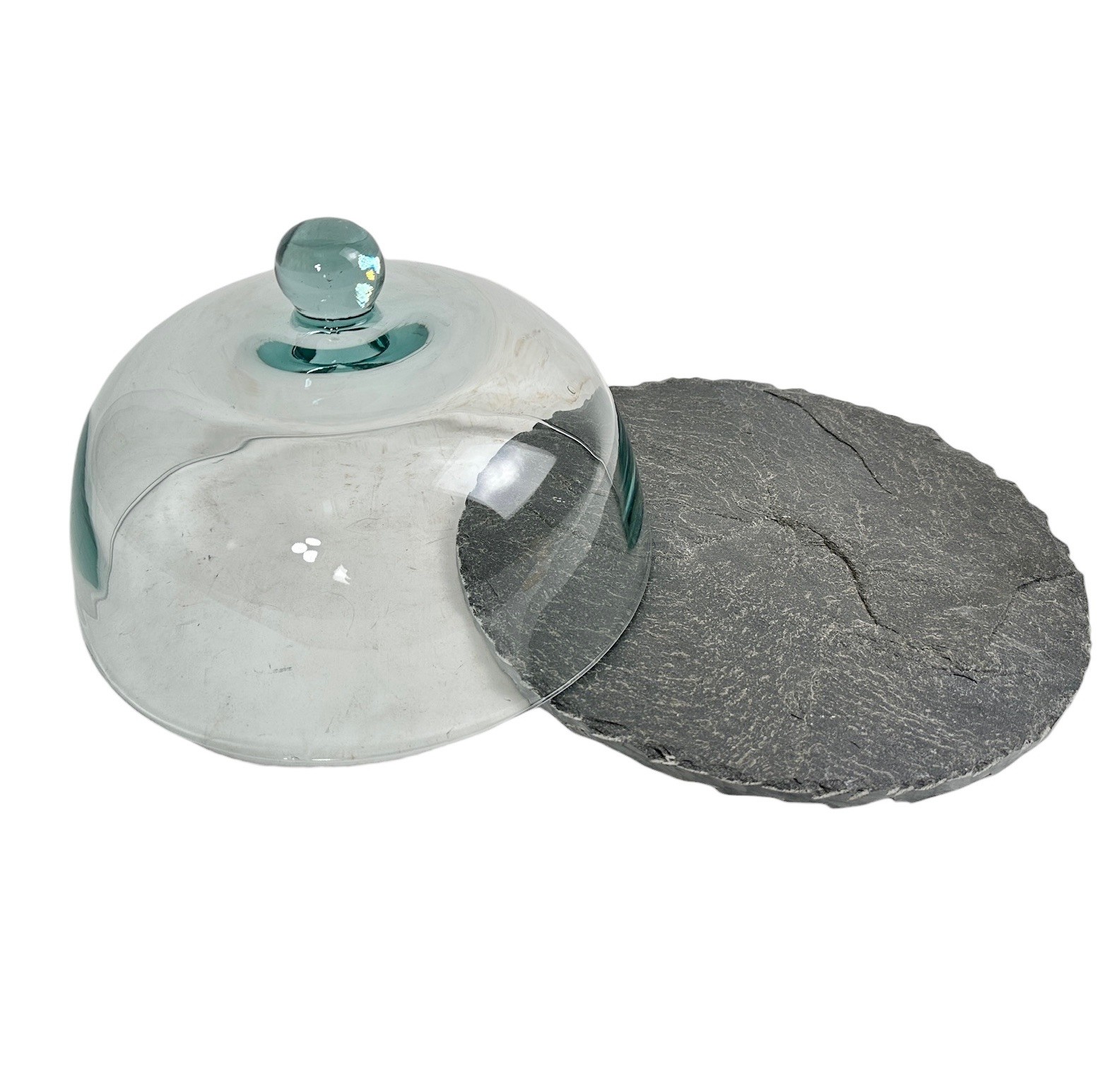 Slate Tray With Light Blue Glass Dome, Great For Dessert Or Cheese Plates