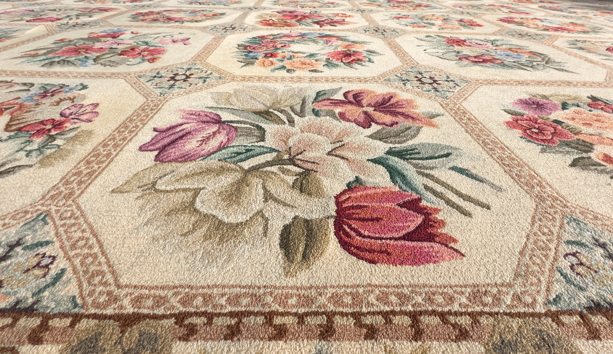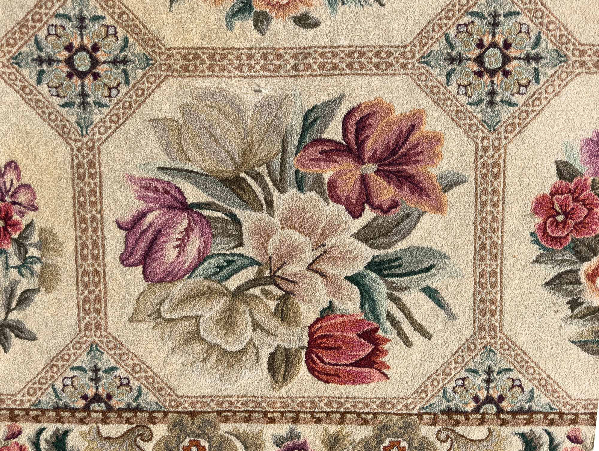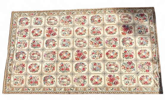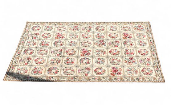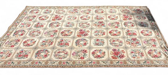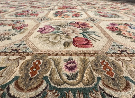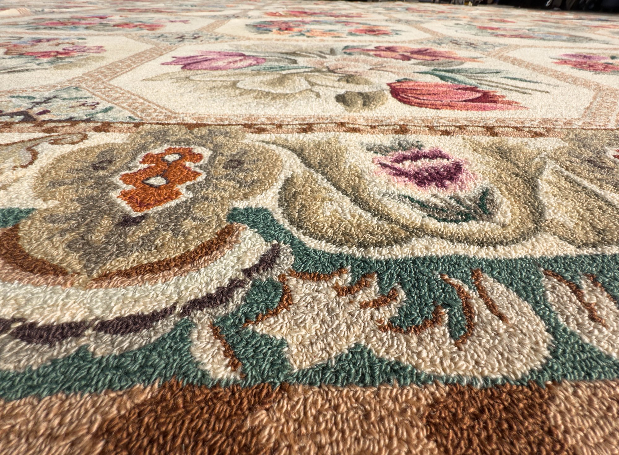 Made Custom by Stark, this Extra Large size needlepoint rug in flora and fauna motif is a plush 1/2" pile.