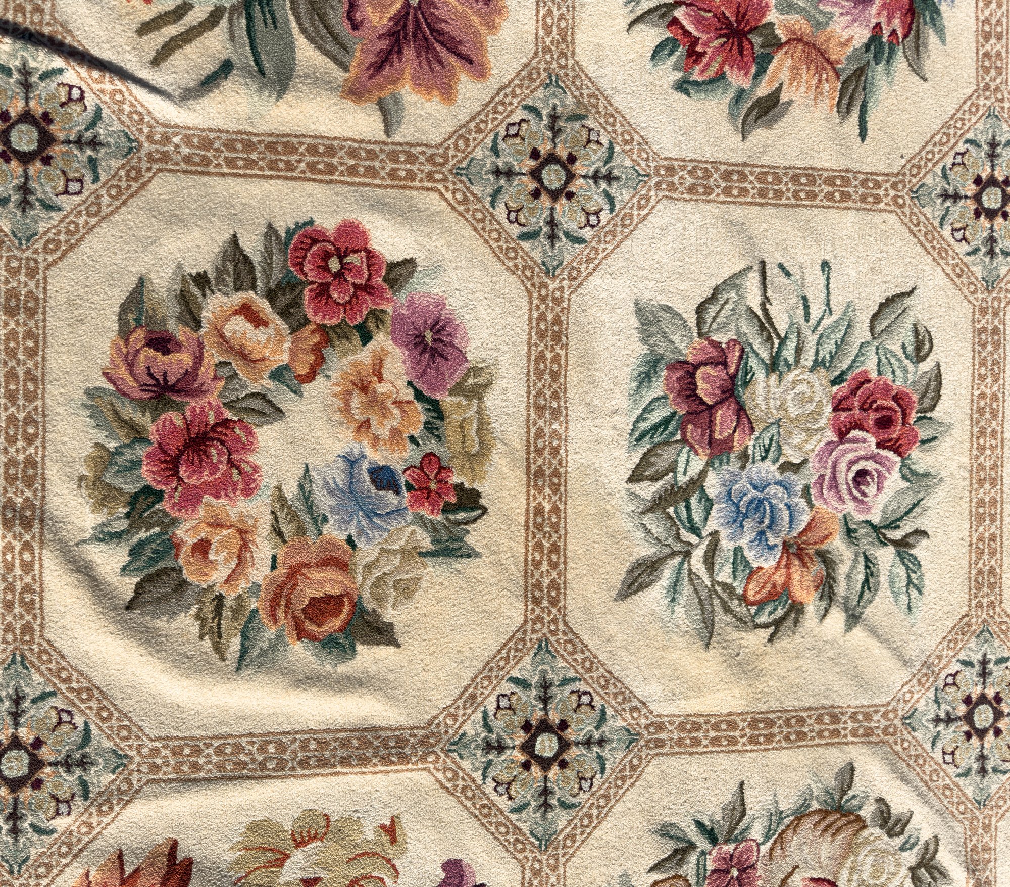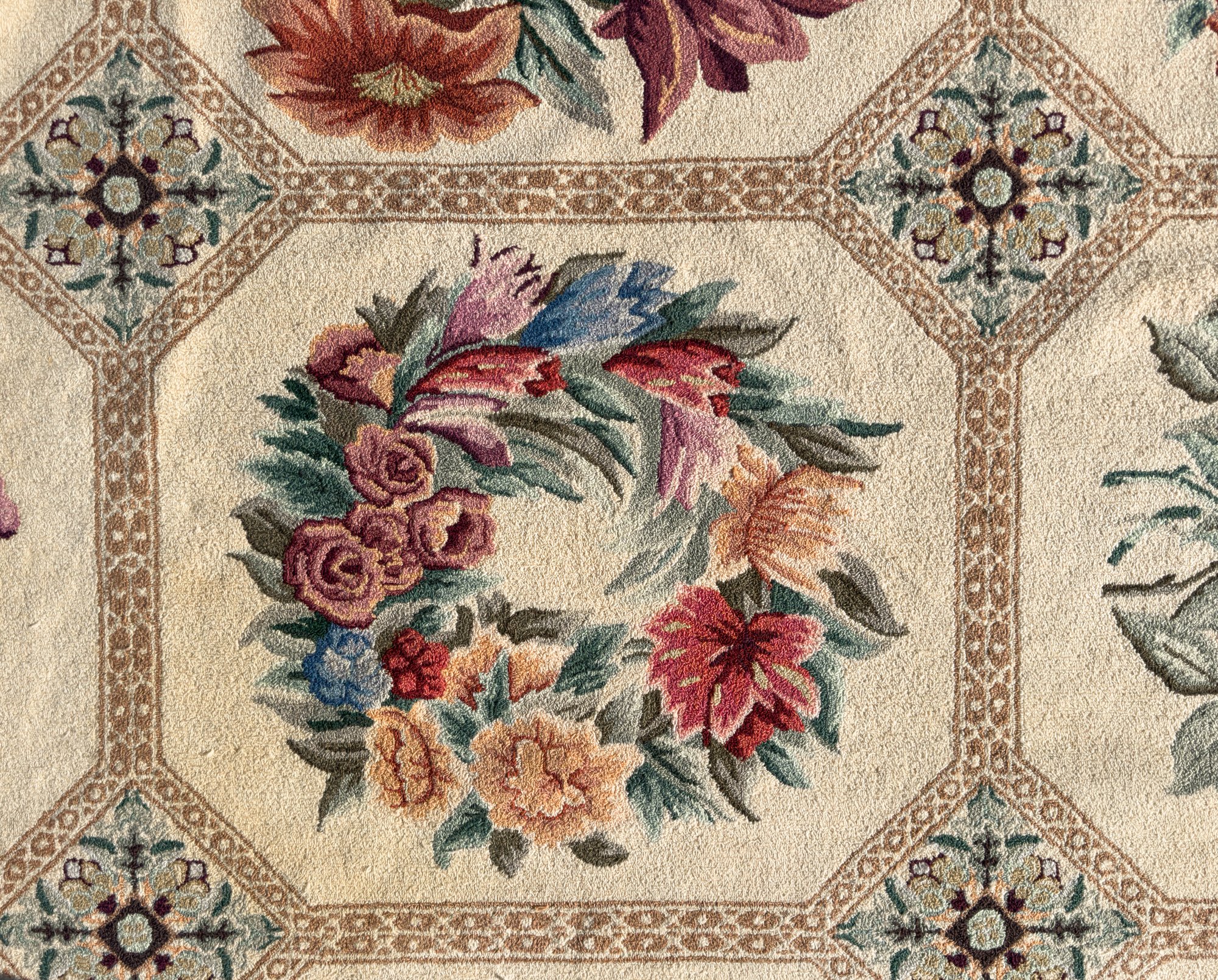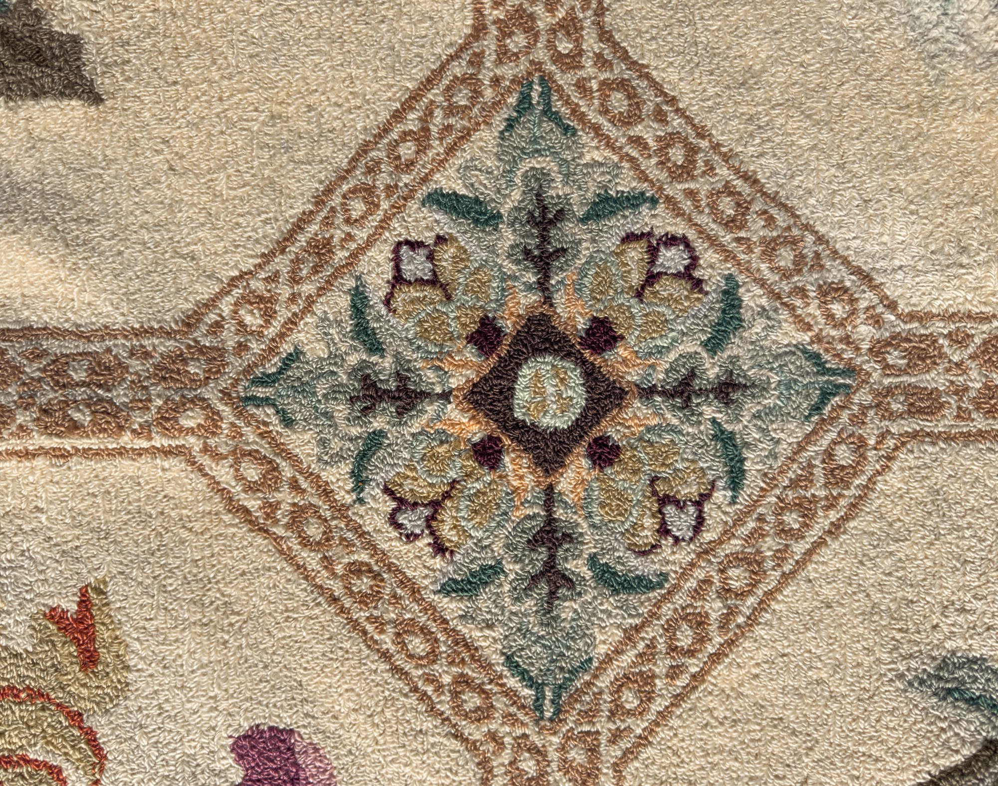 Made Custom by Stark, this Extra Large size needlepoint rug in flora and fauna motif is a plush 1/2" pile.