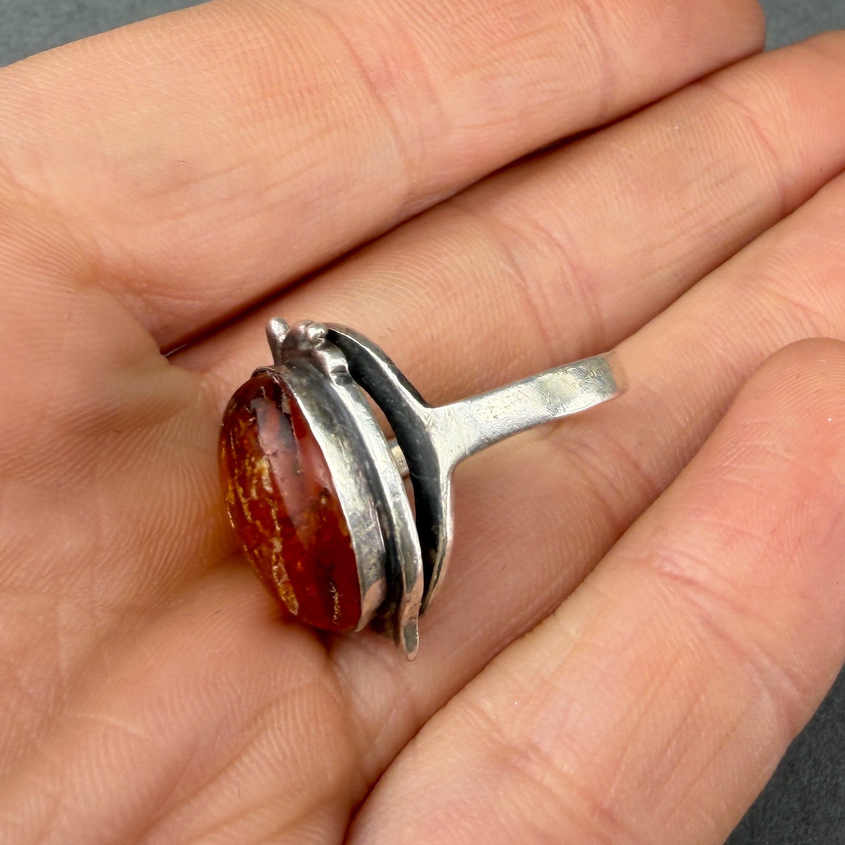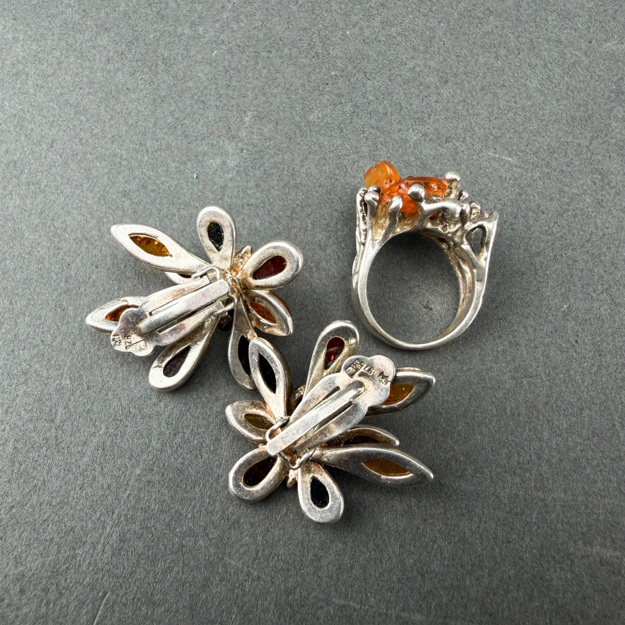 Amber clusters wrapped in sterling and a cabochon amber ring