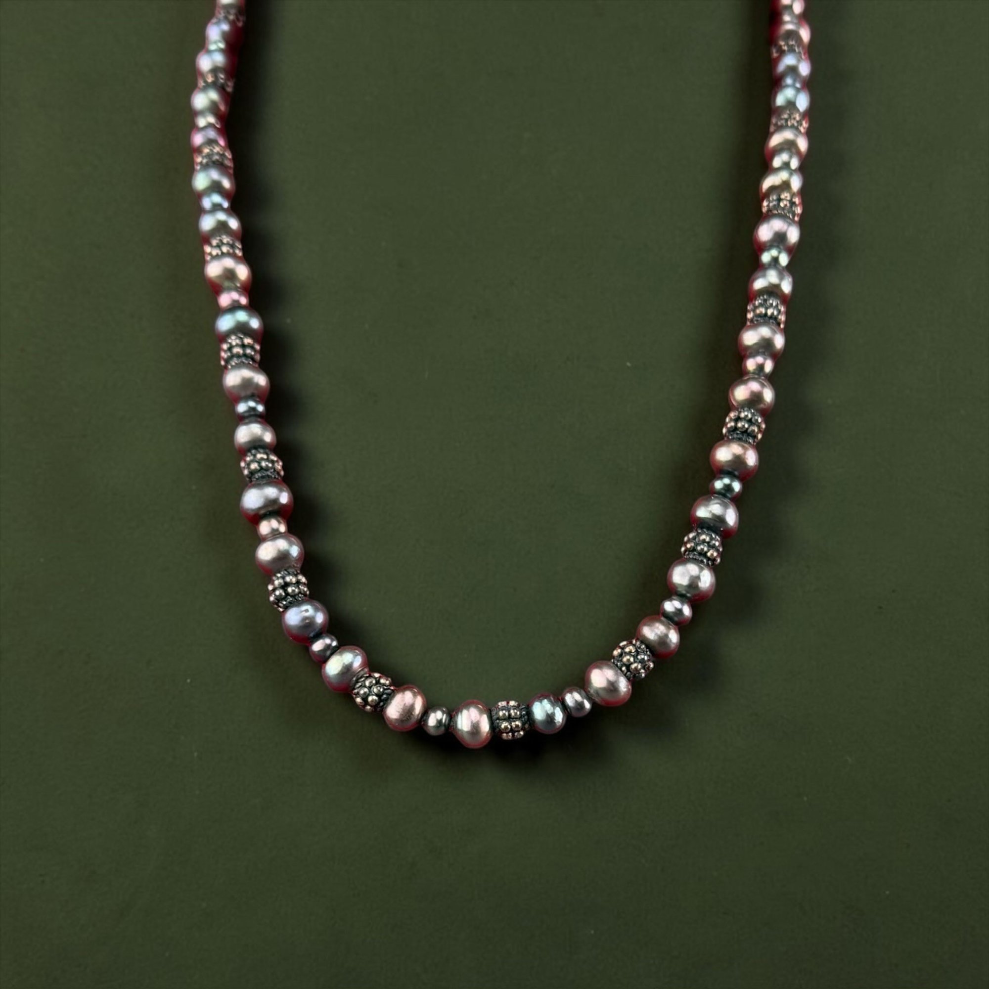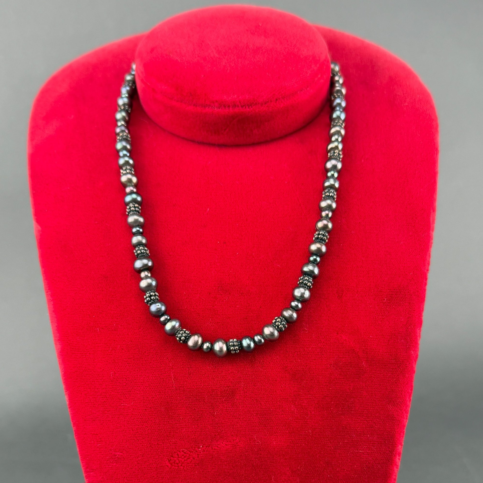 Sterling Silver And Black Pearl Necklace