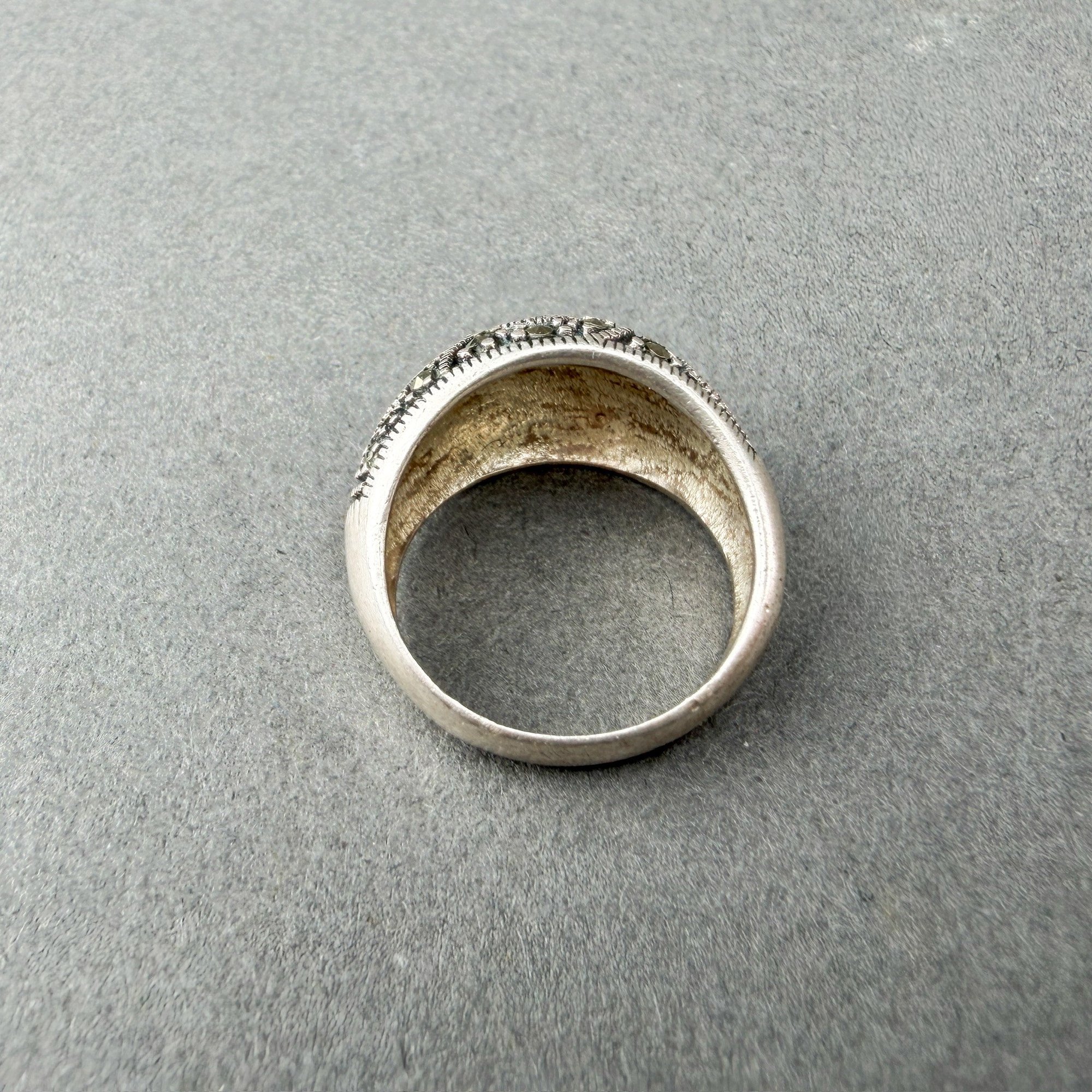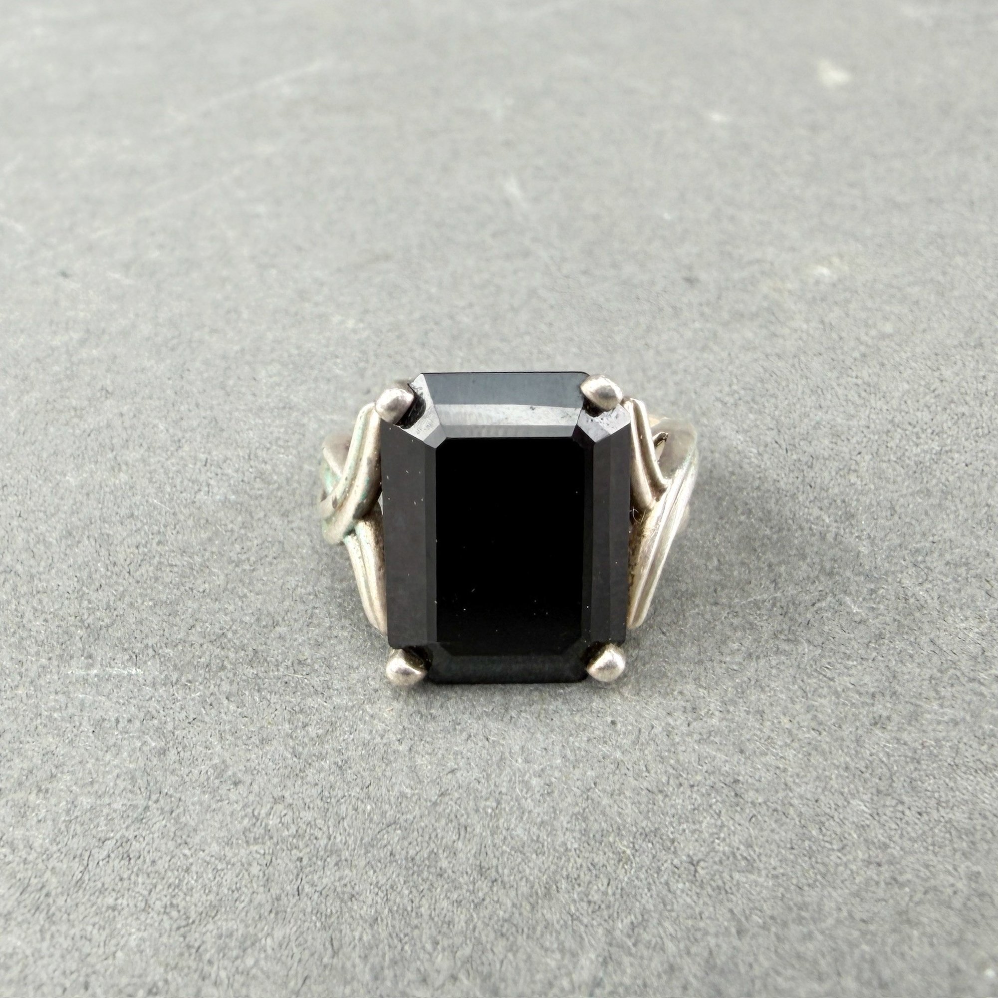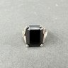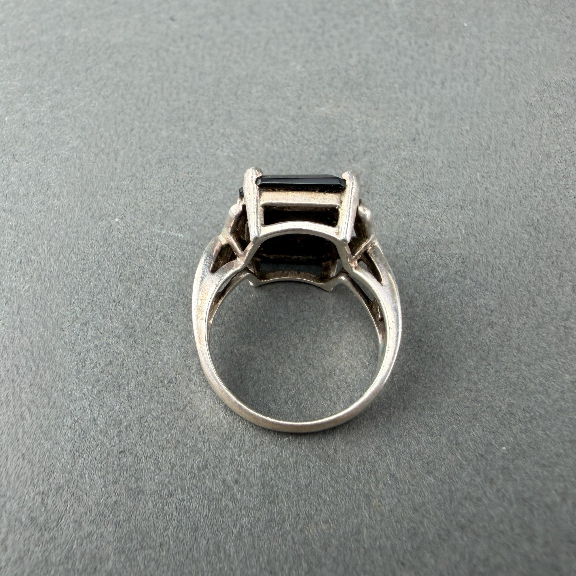 (2) Sterling silver cocktail style rings with black onyx and prong setting and marcasite