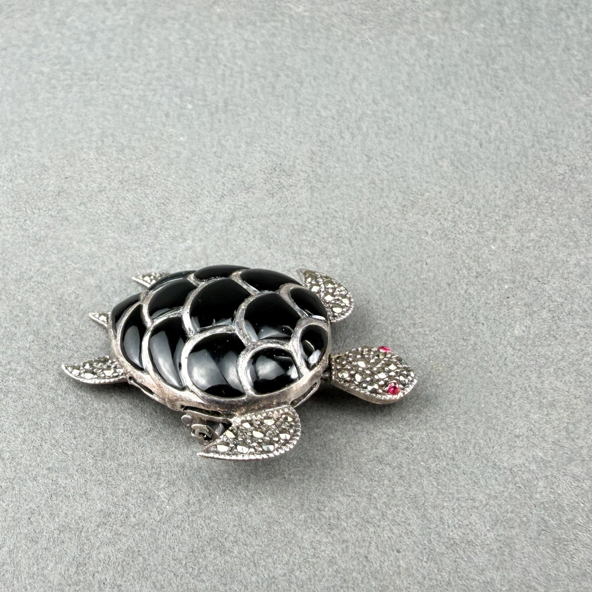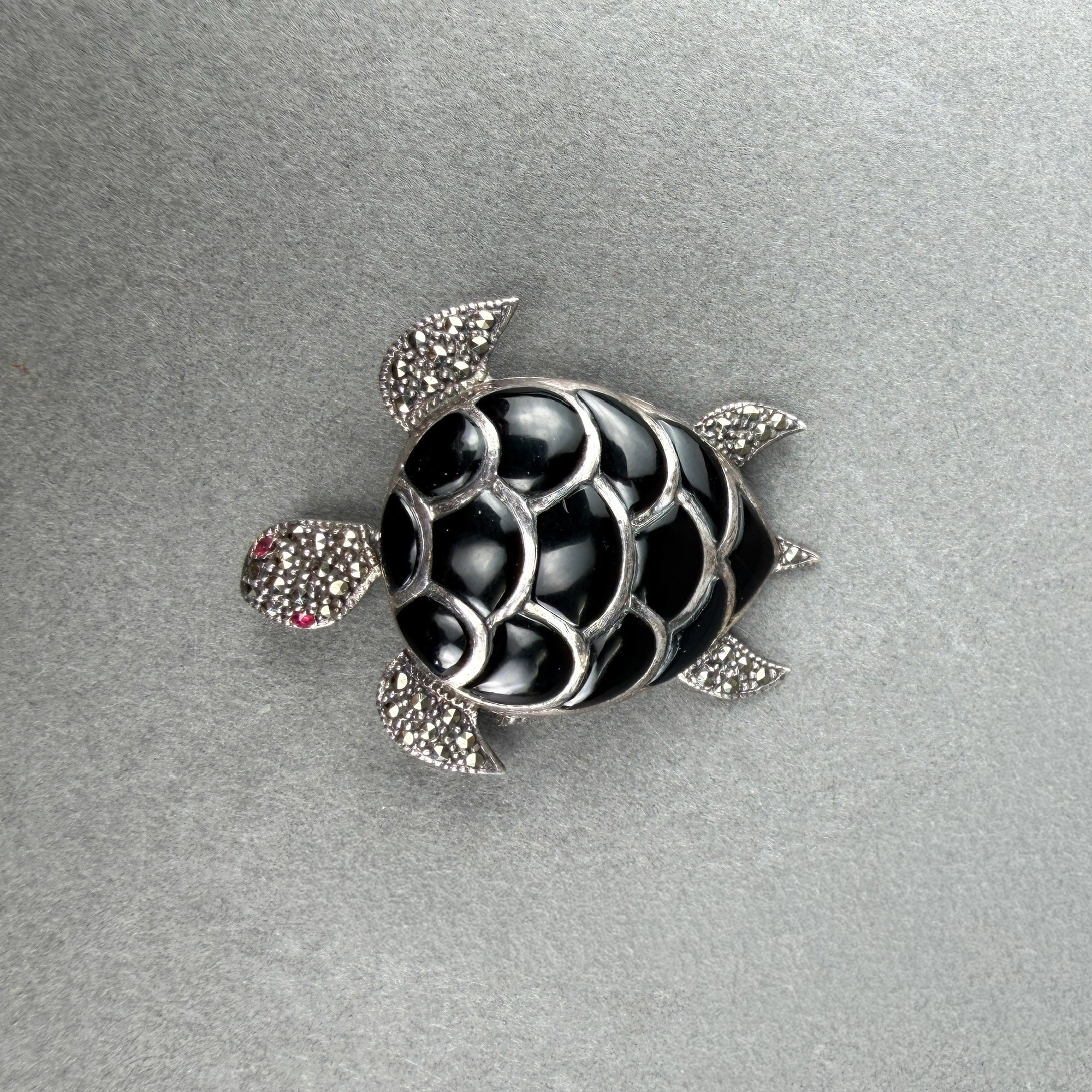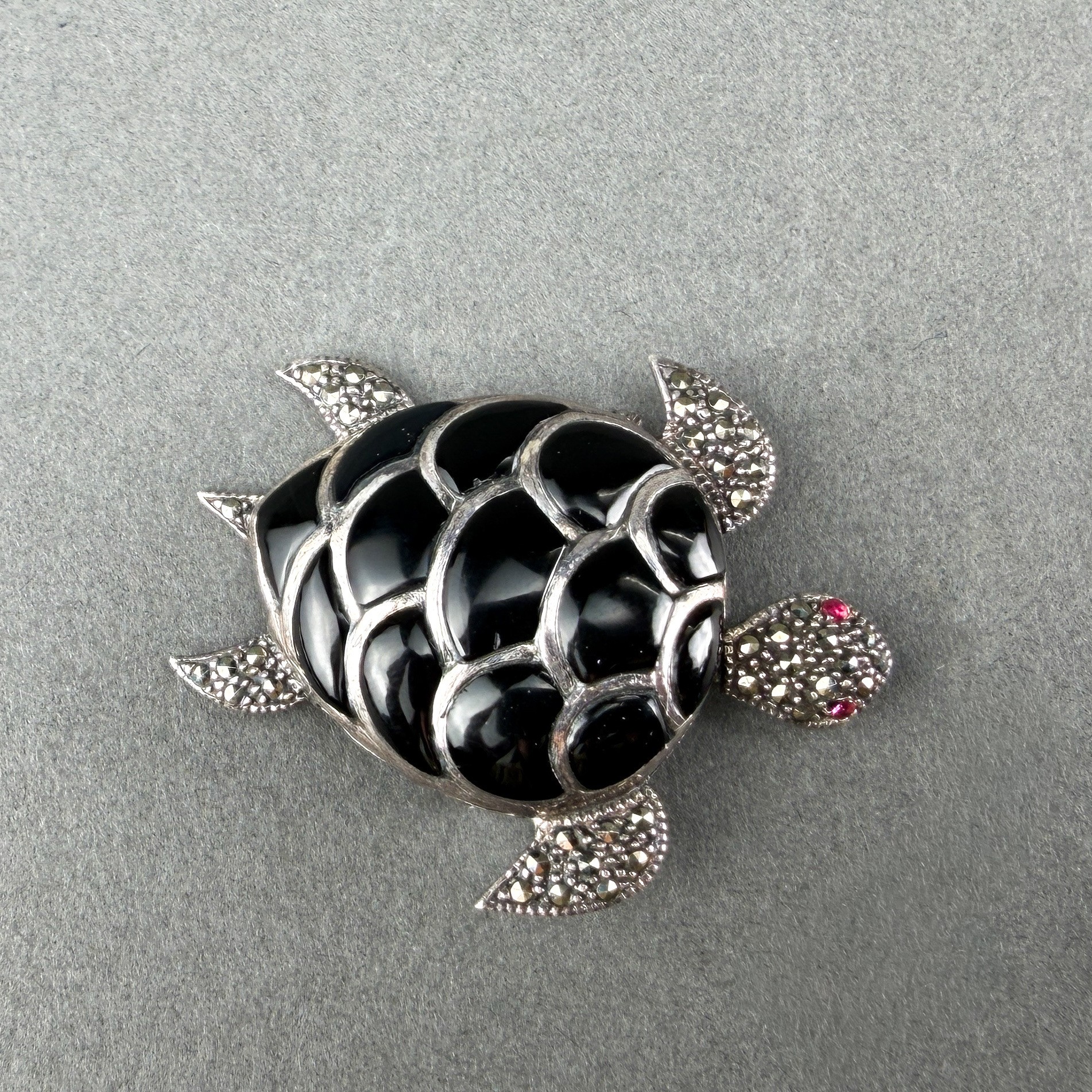 Dynamic necklace pendant ins sterlign silver, onyx and marcasite