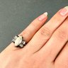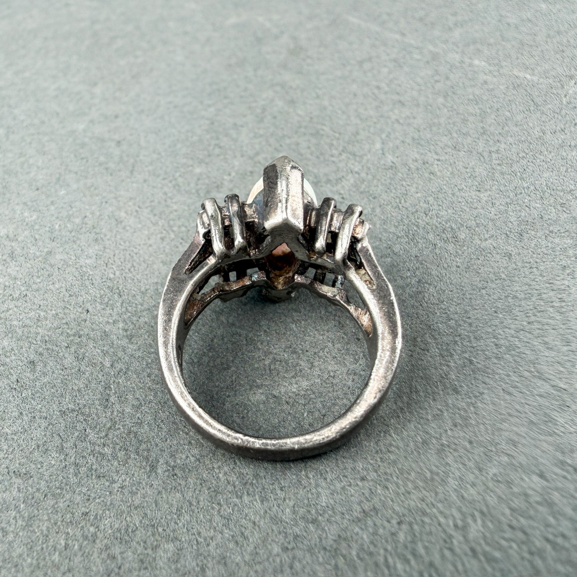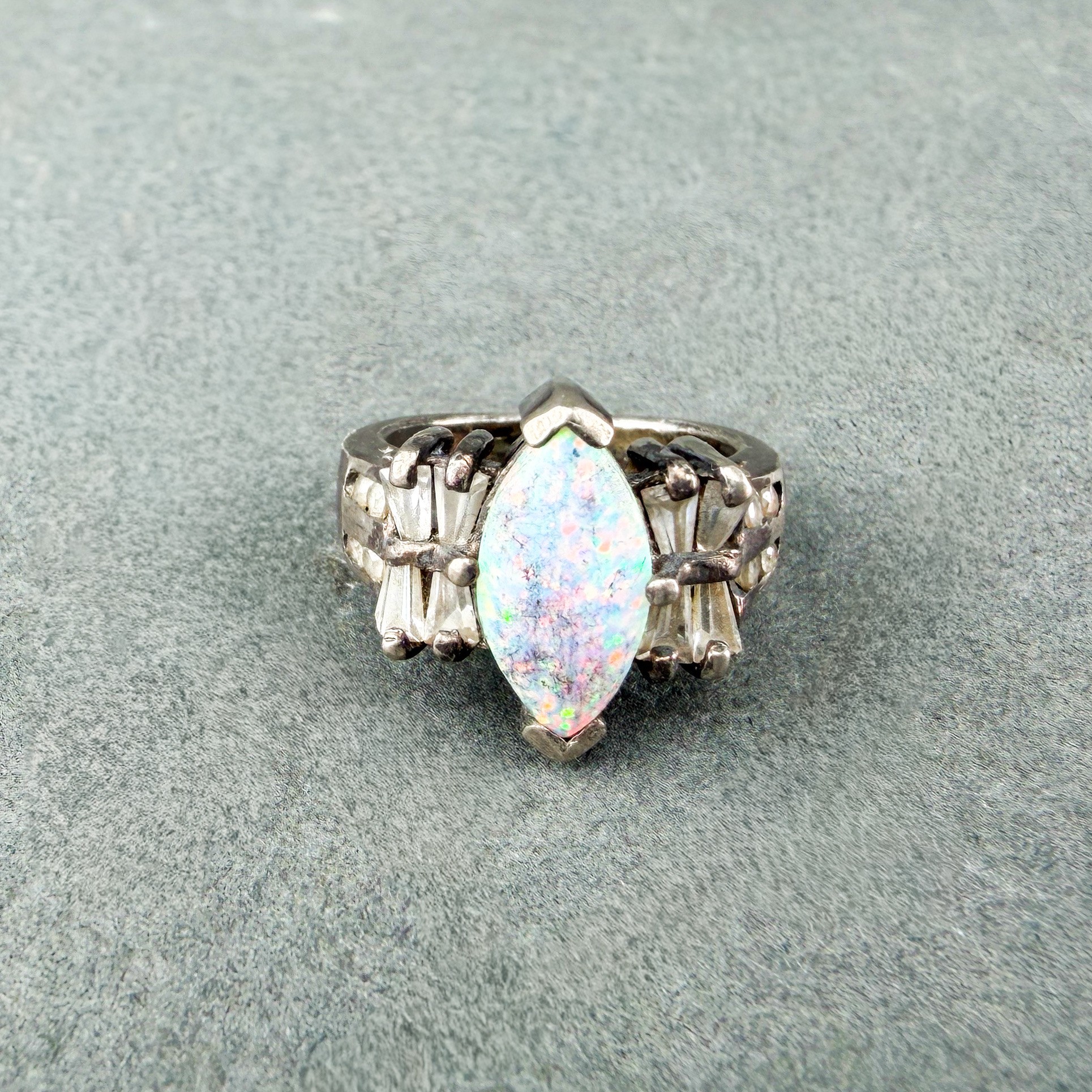 Opal, Rhinestone and sterling silver ring is a size 5 1/2