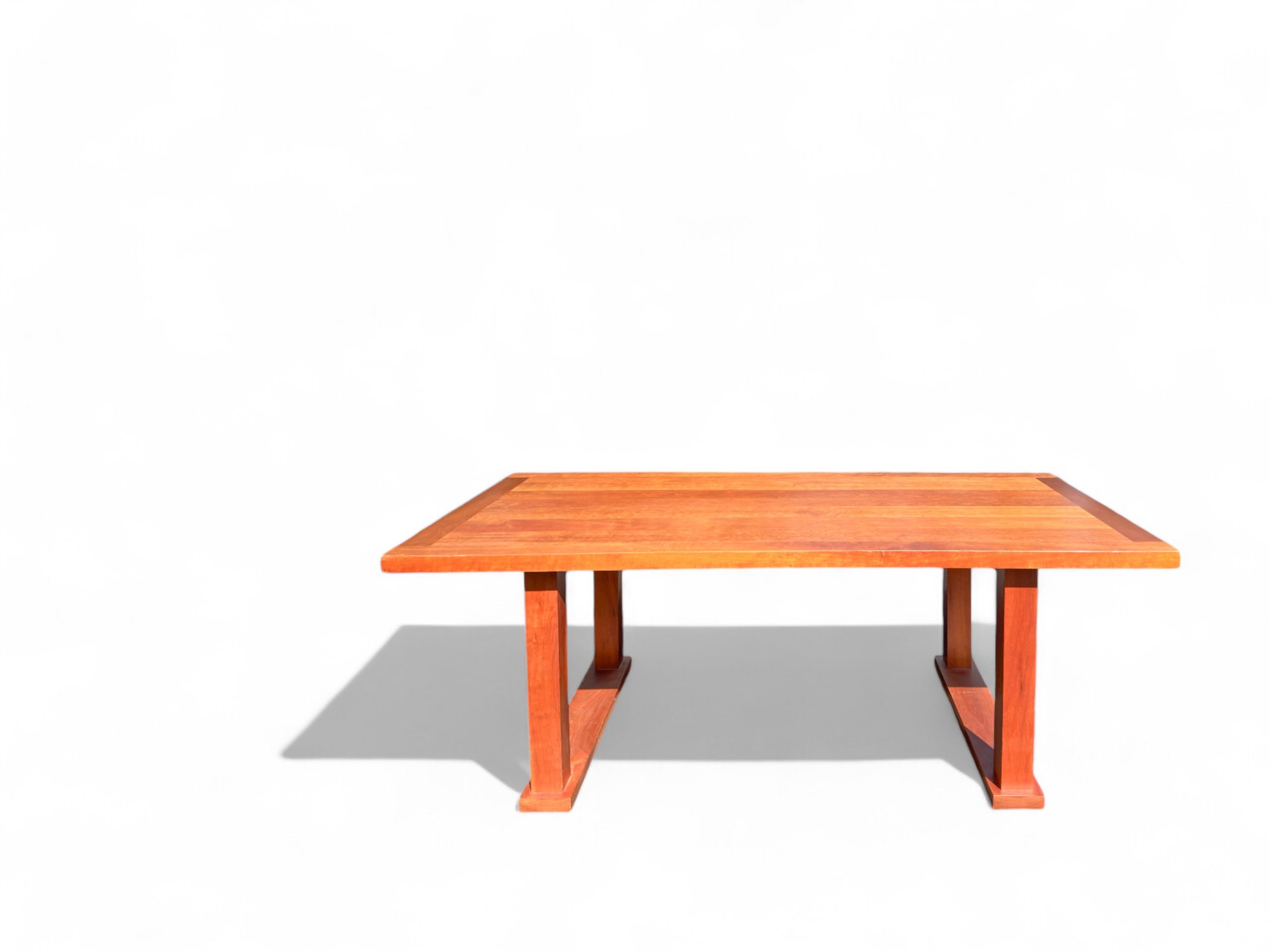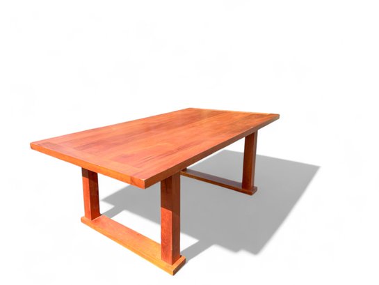 Arts And Crafts Dining Table in Cherry wood with Double Pedestal Base.