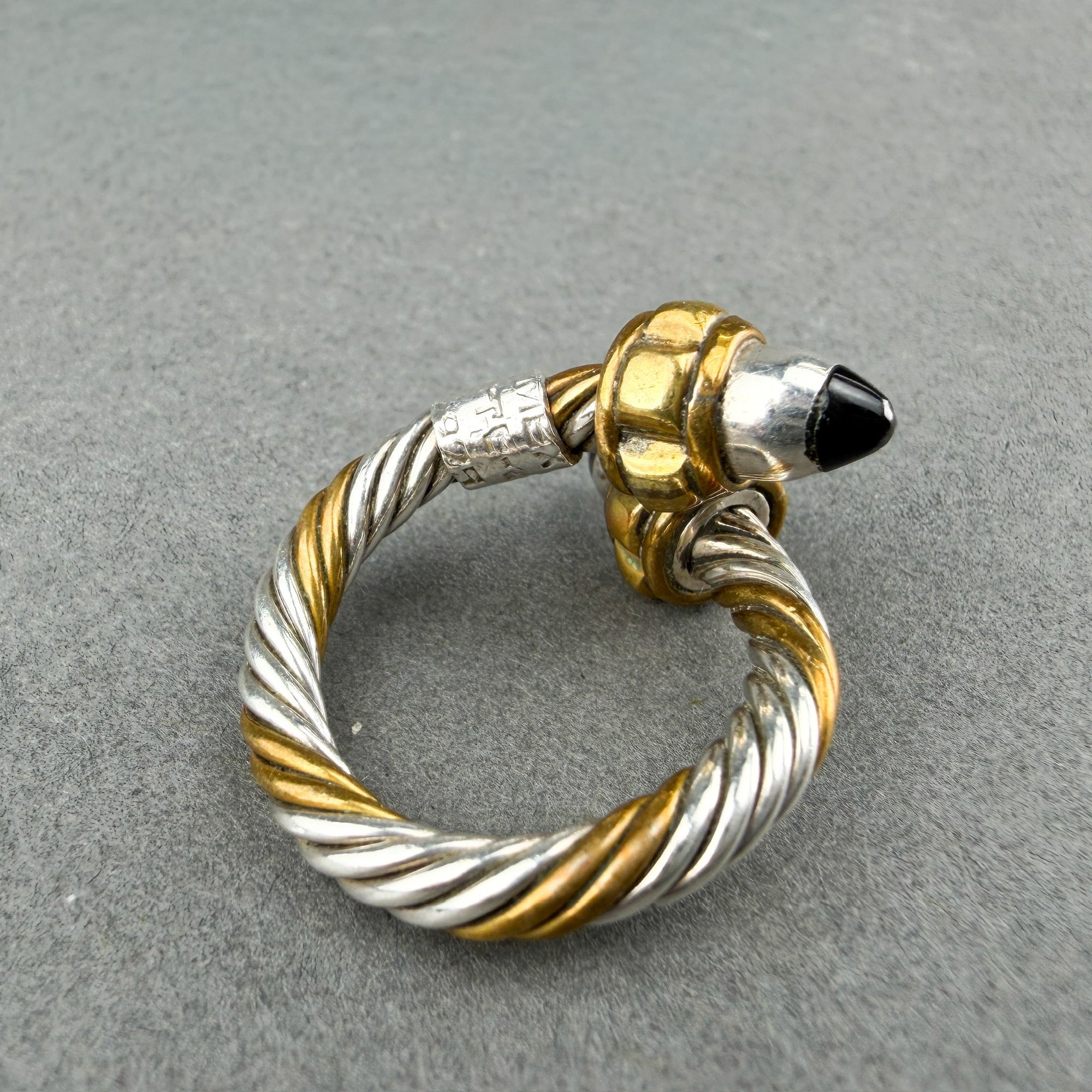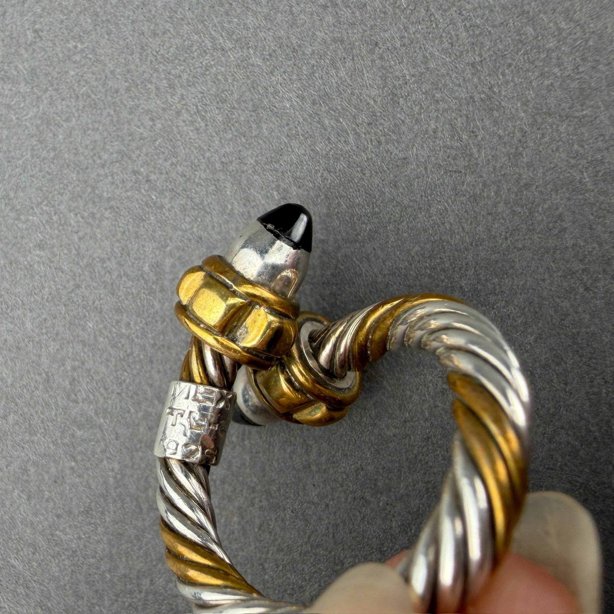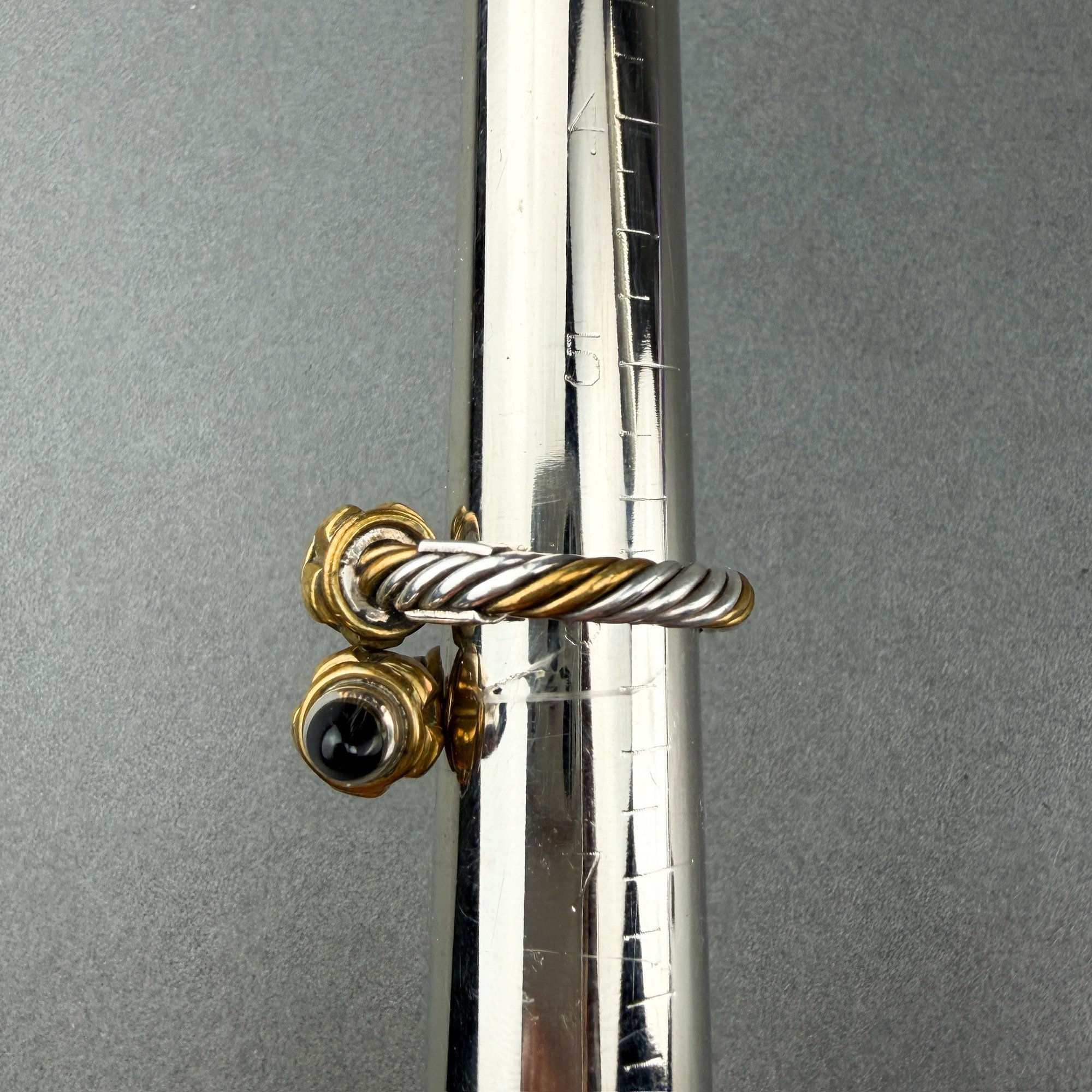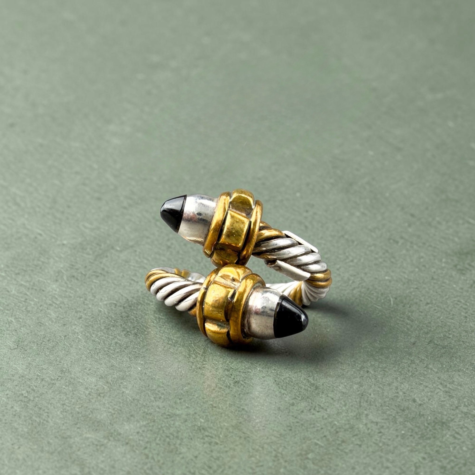 David Yurman Style sterling and brass twisted Cable wrap ring with onyx tips.