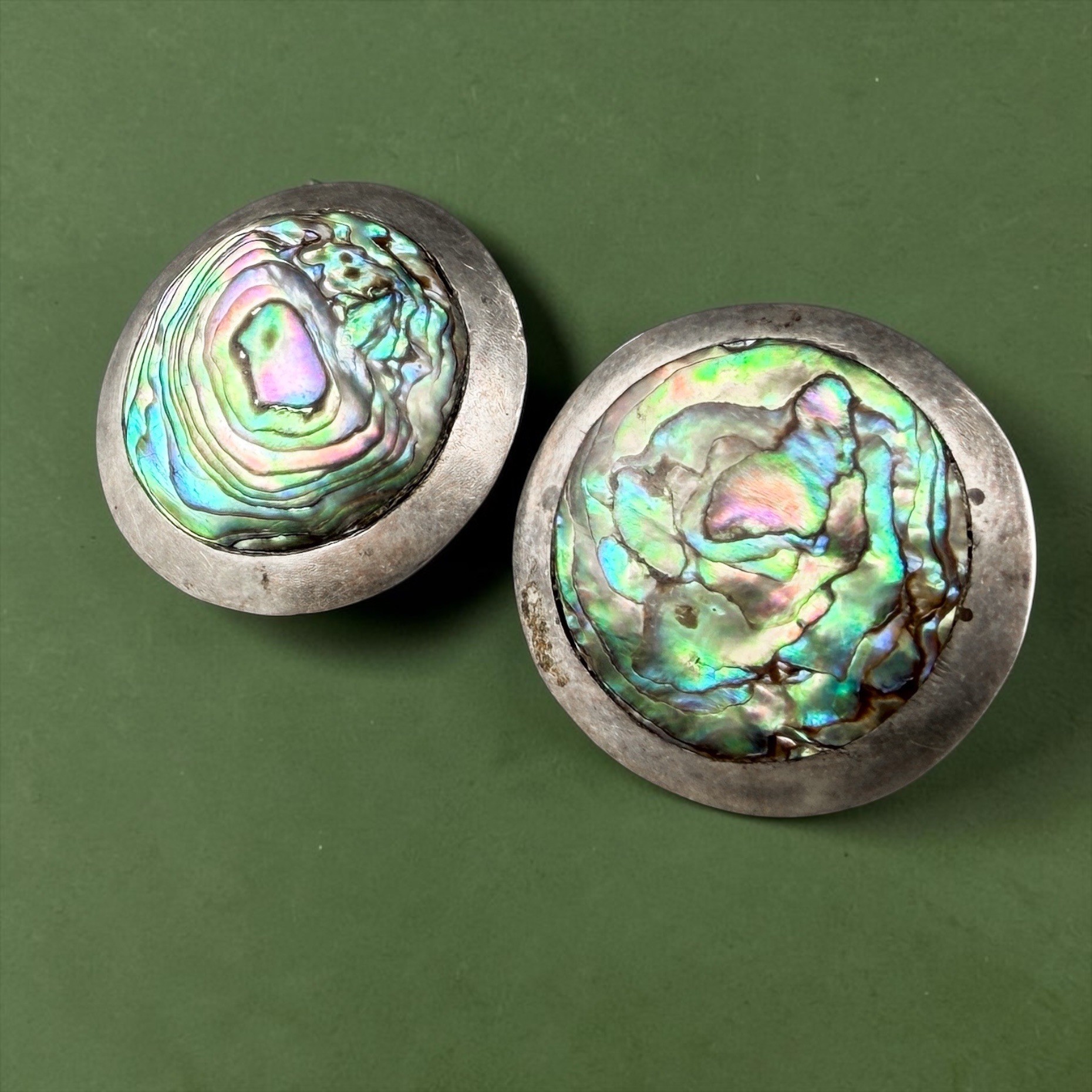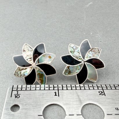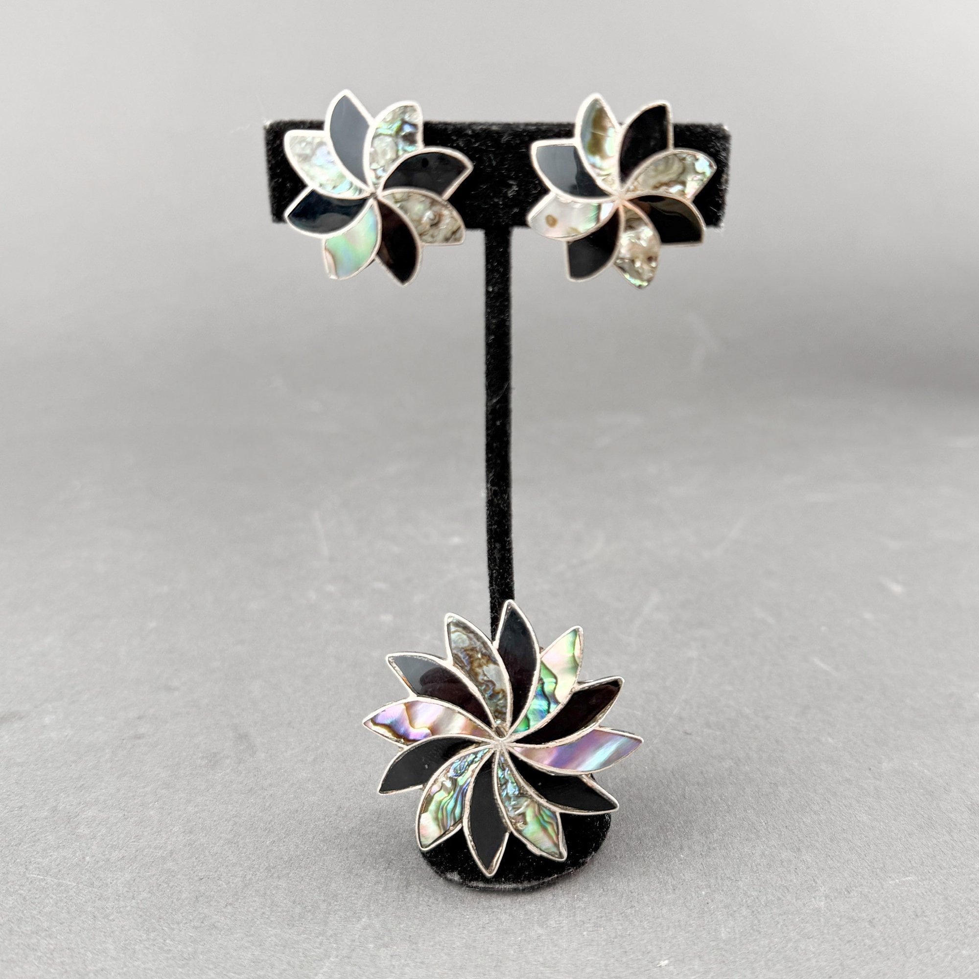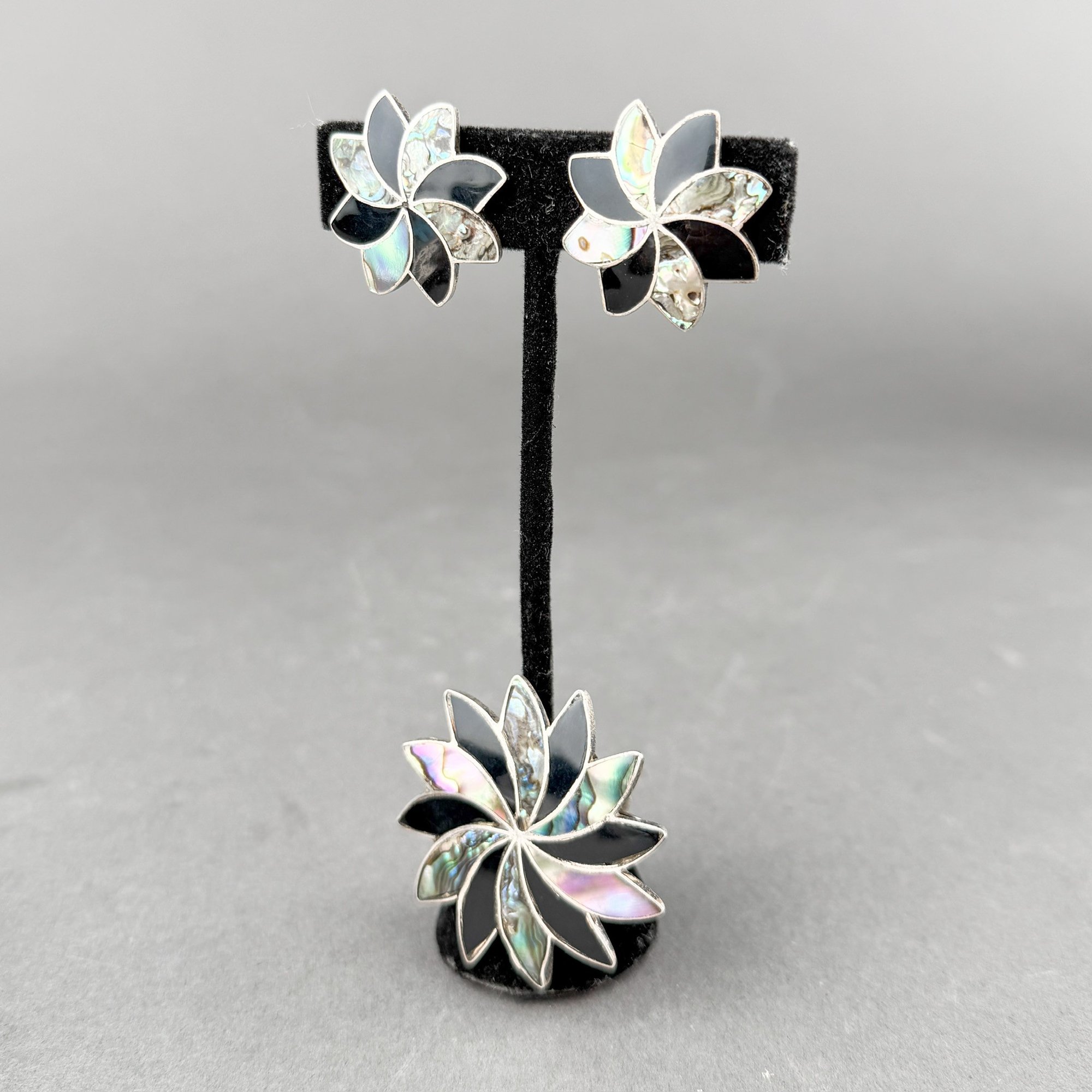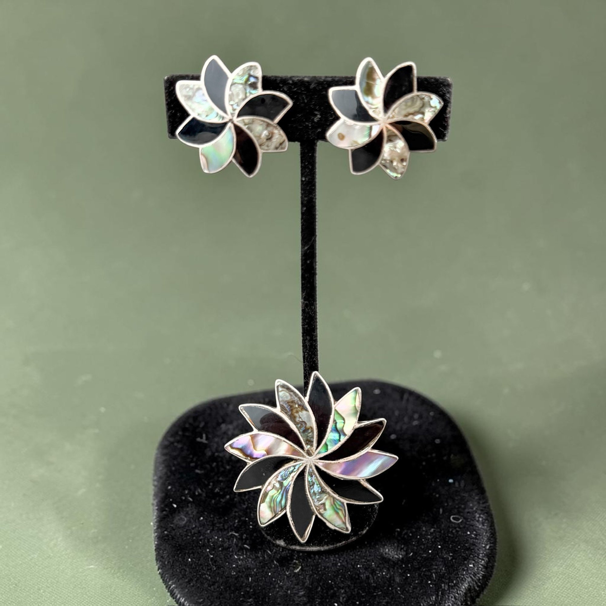 Taxco Mexico Sterling Silver And Albalone Earrings And Brooch