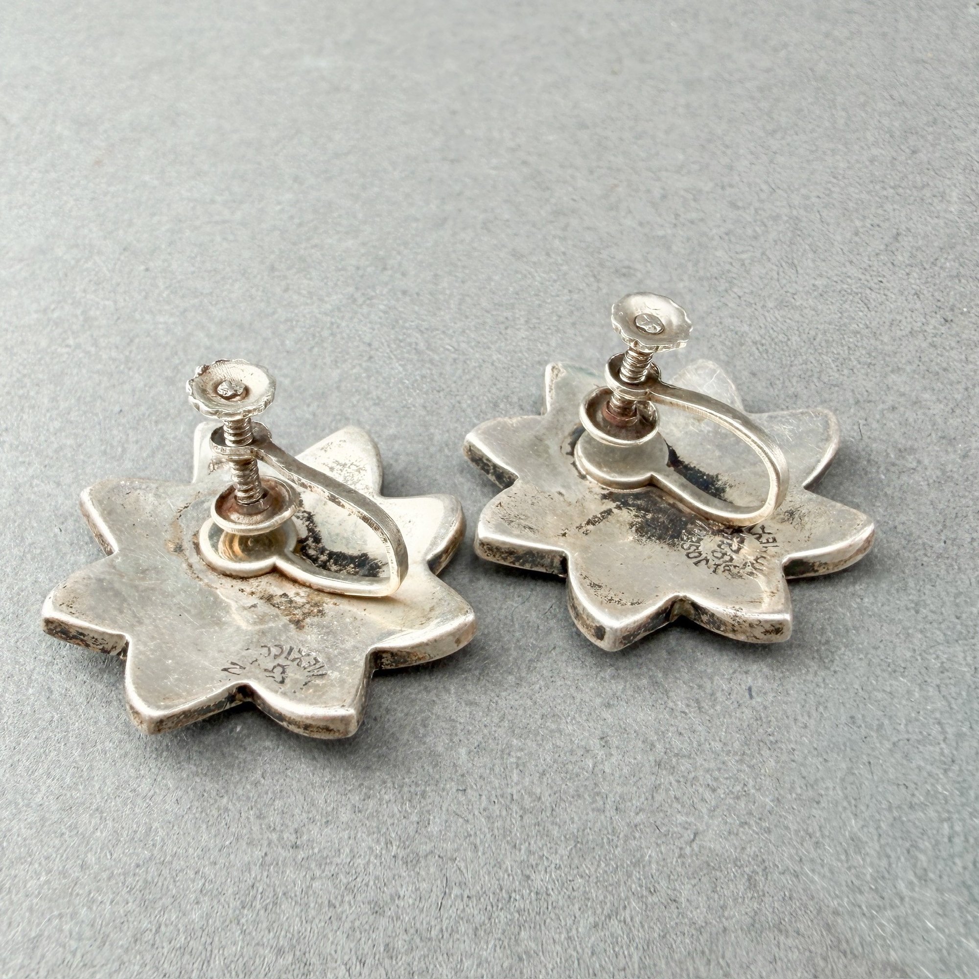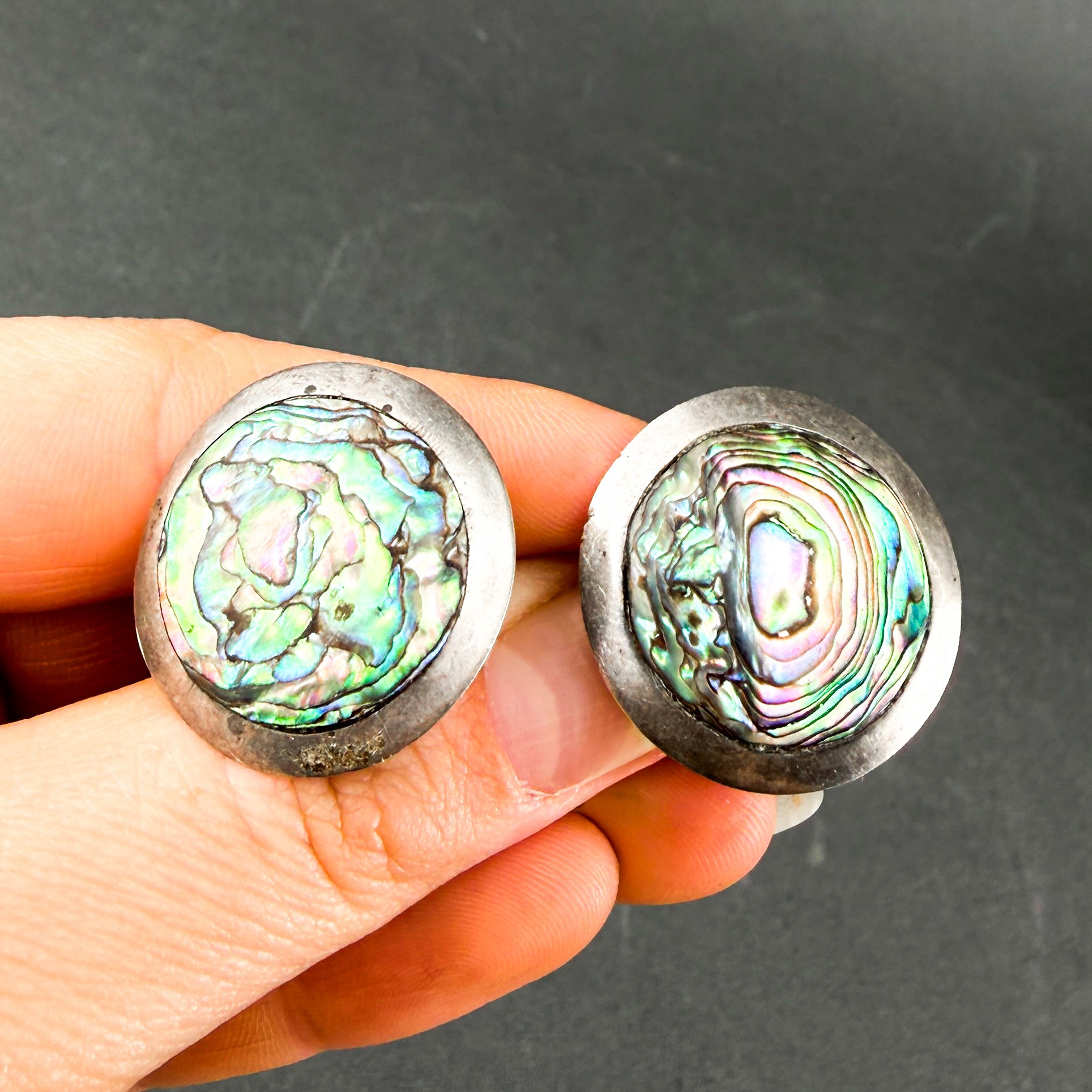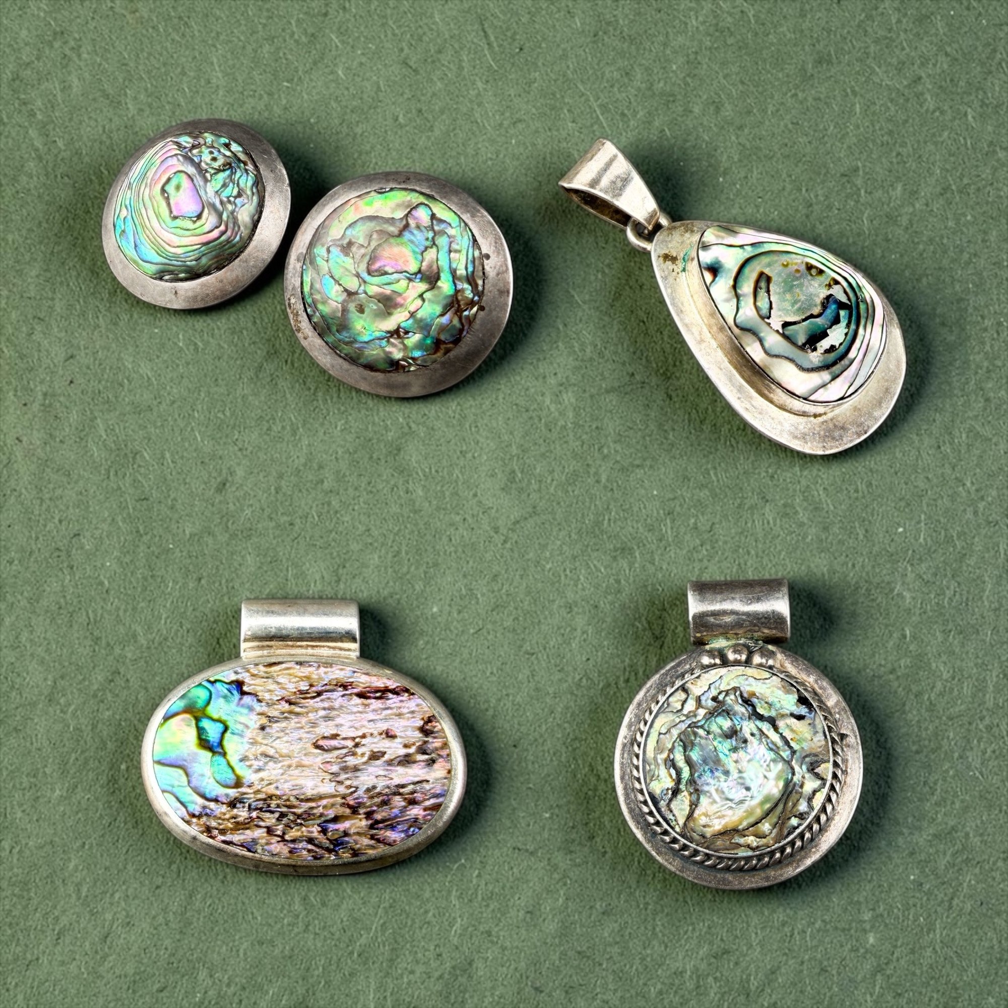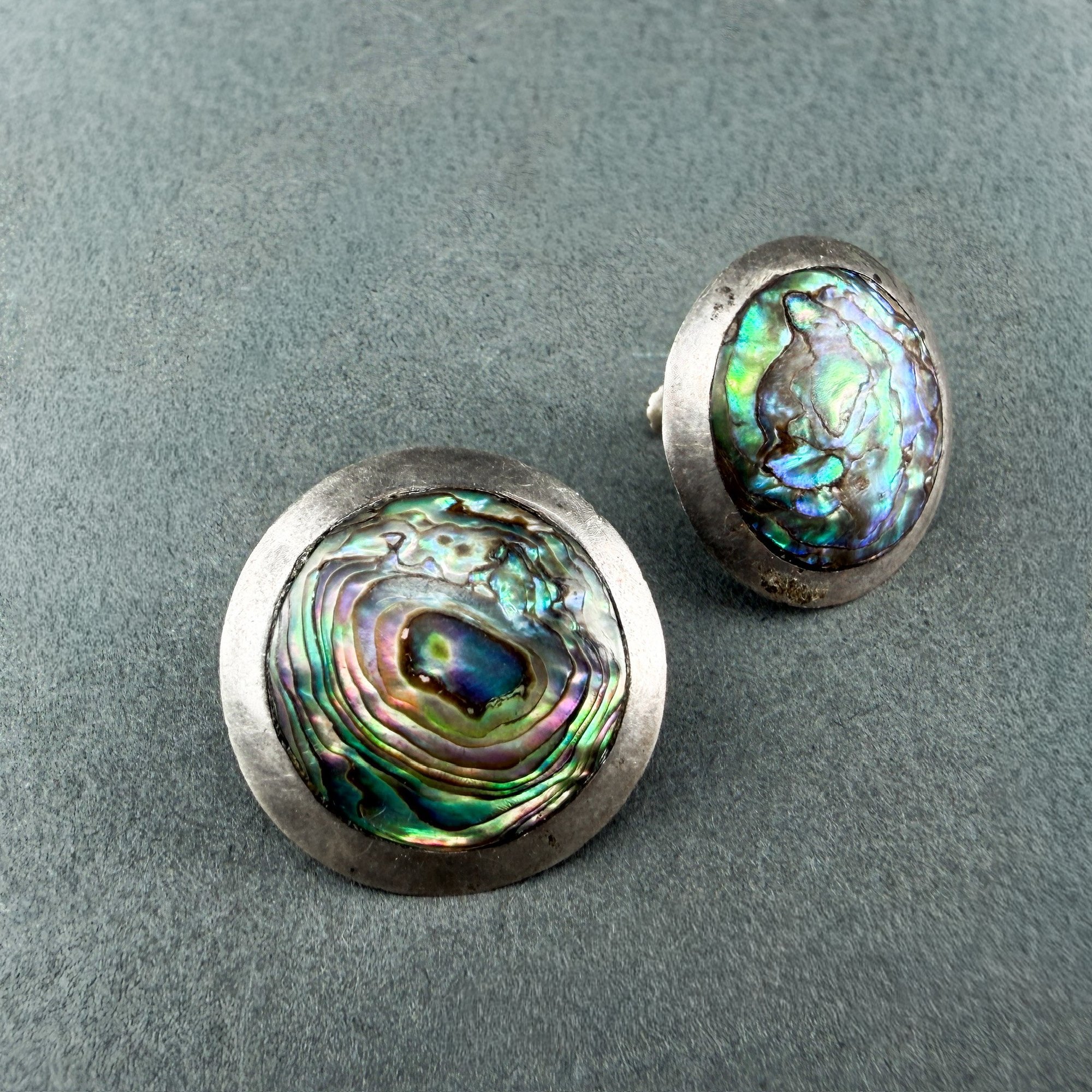 Taxco Mexico Sterling Silver And Albalone Earrings And Brooch