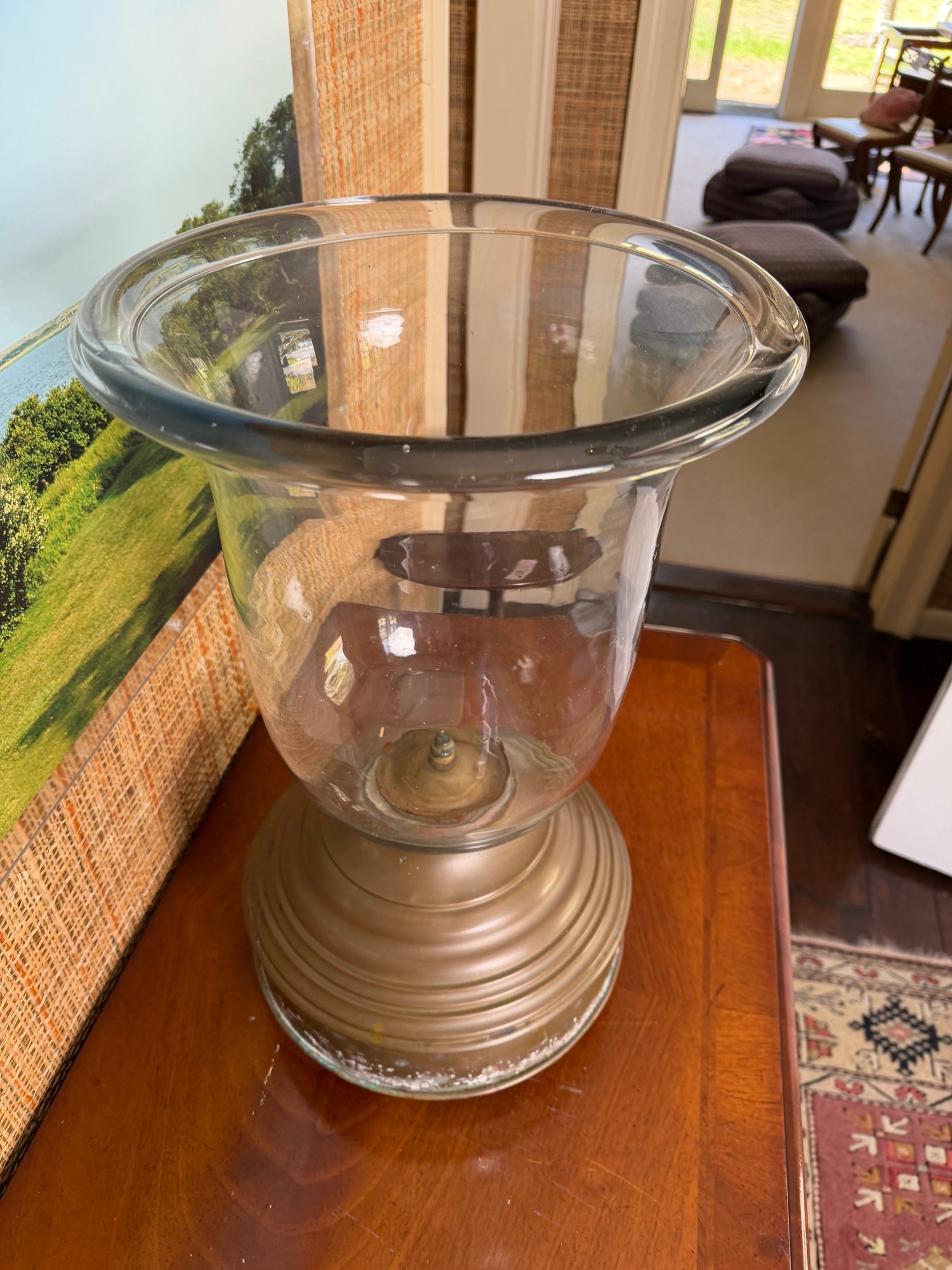 INTERESTING BELL-FORM GLASS FONT On BRASS STAND