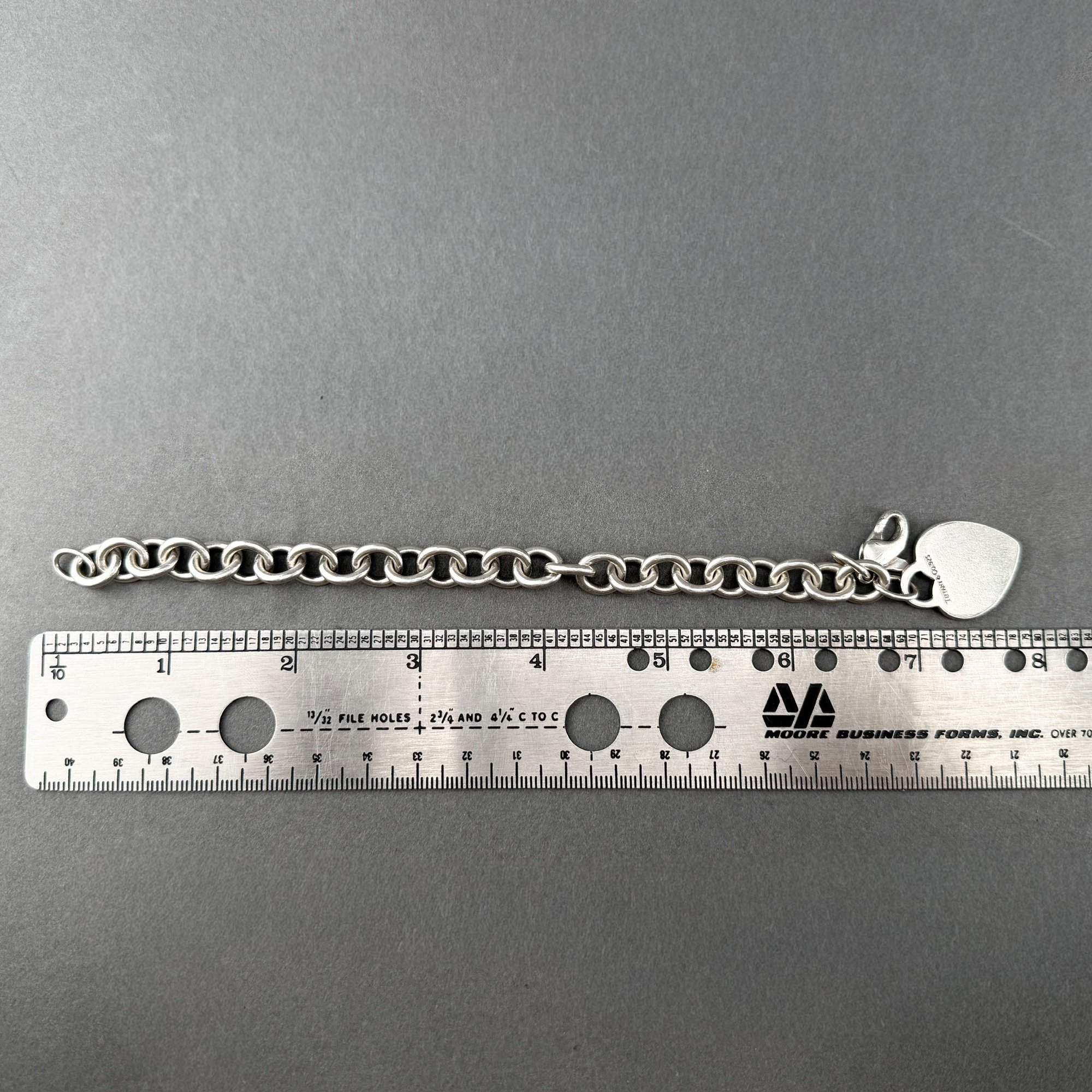 Classic Tiffany and co Sterling silver chain link bracelet with heart charm.