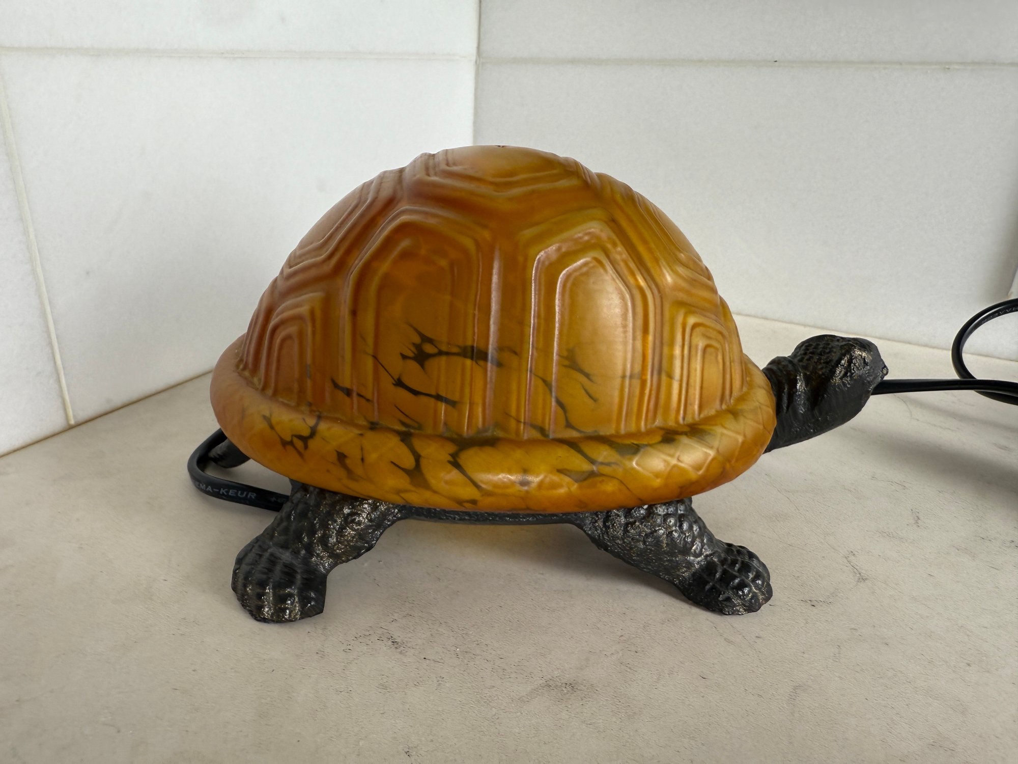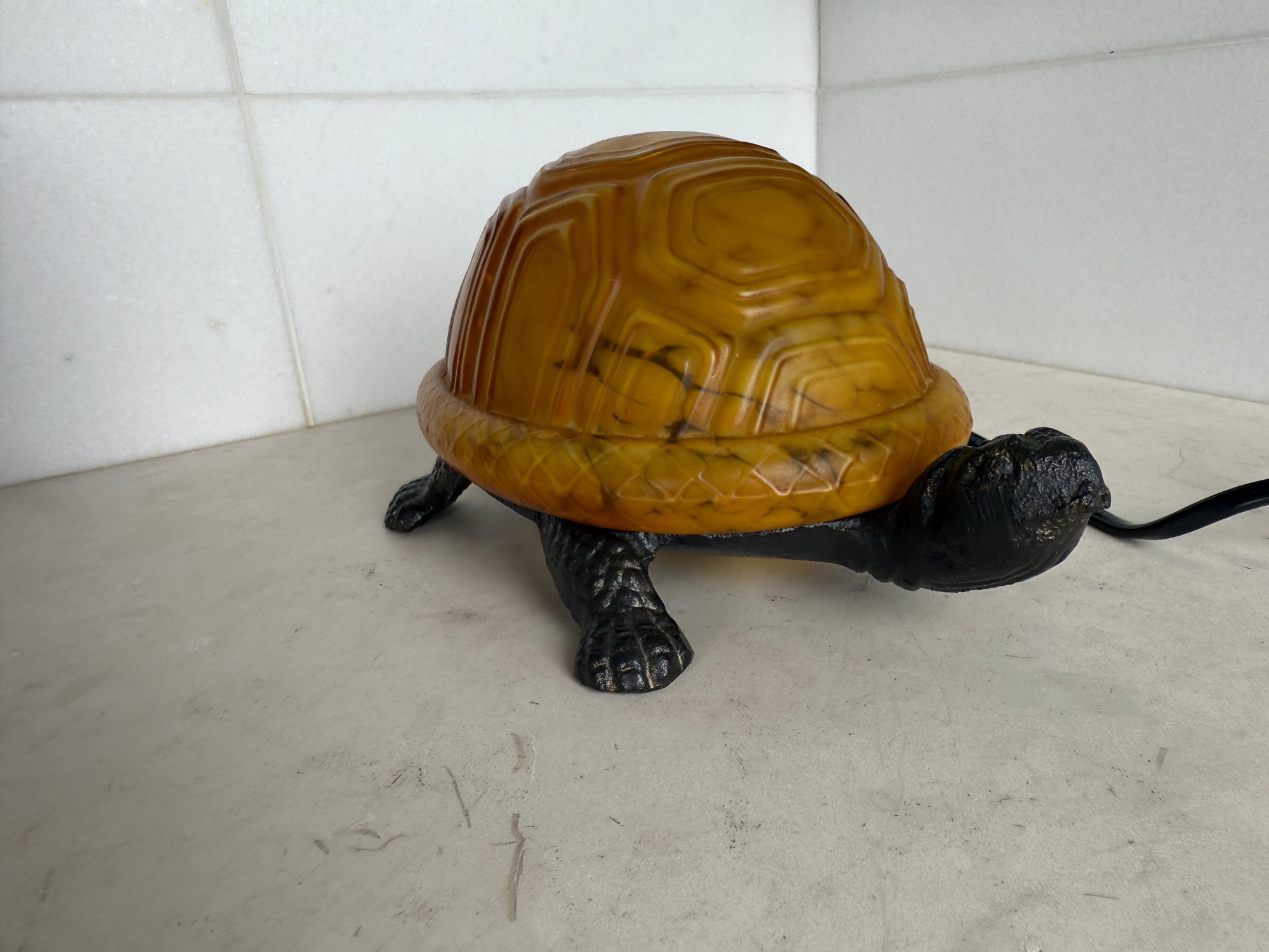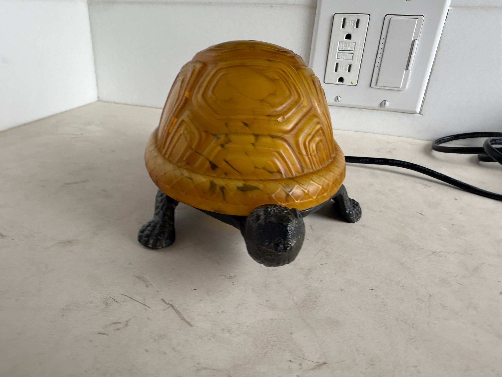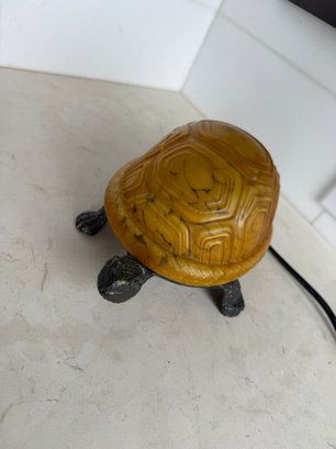 Tiffany Style Turtle Lamp With Amber Glass Top